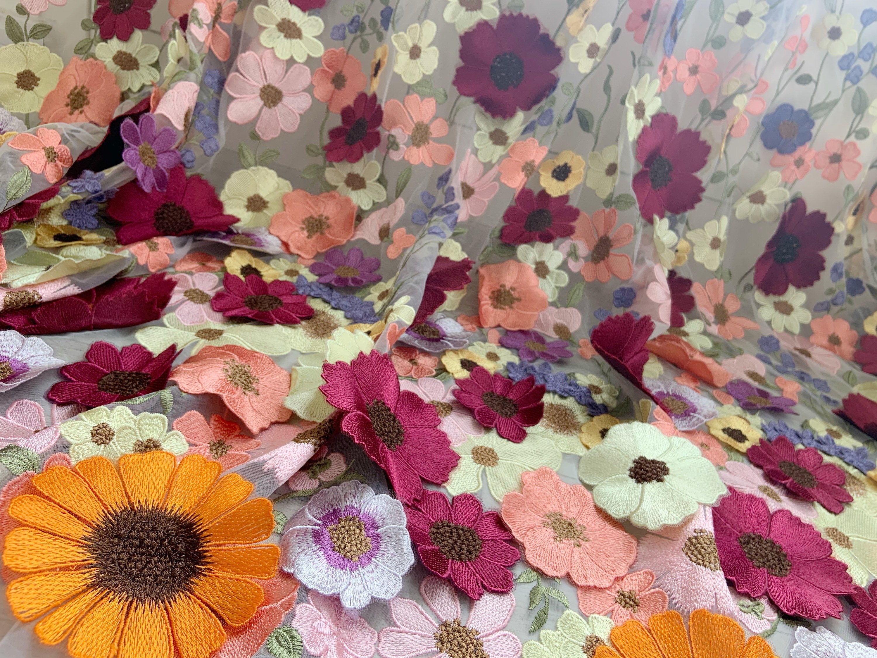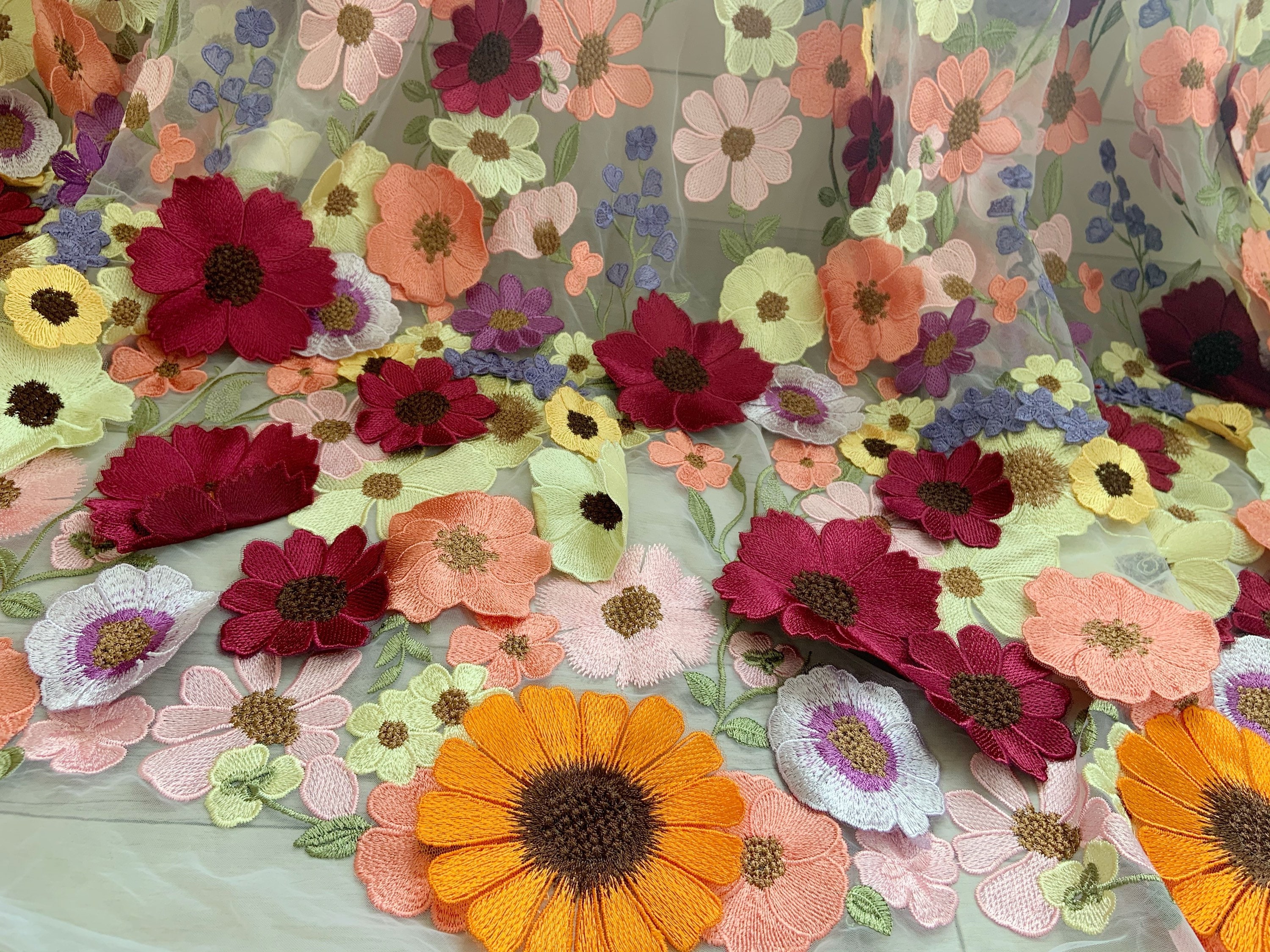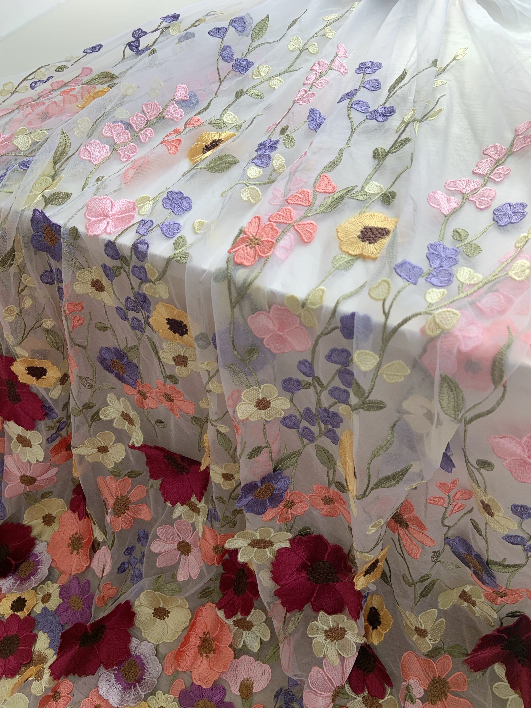 Lace fabric, Embroidered tulle lace fabric, vintage lace fabric, antique bridal lace, home decors