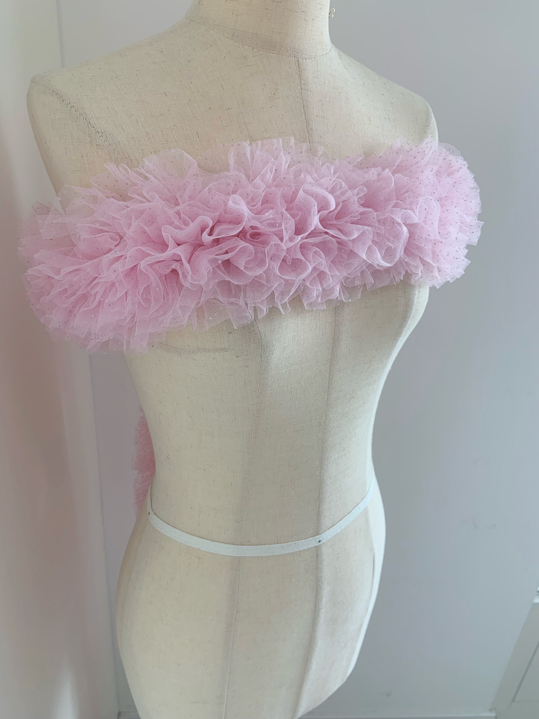 Extra Dense ruffled trim for tutu dress, soft frill trim for cake dress, pleated mesh trim