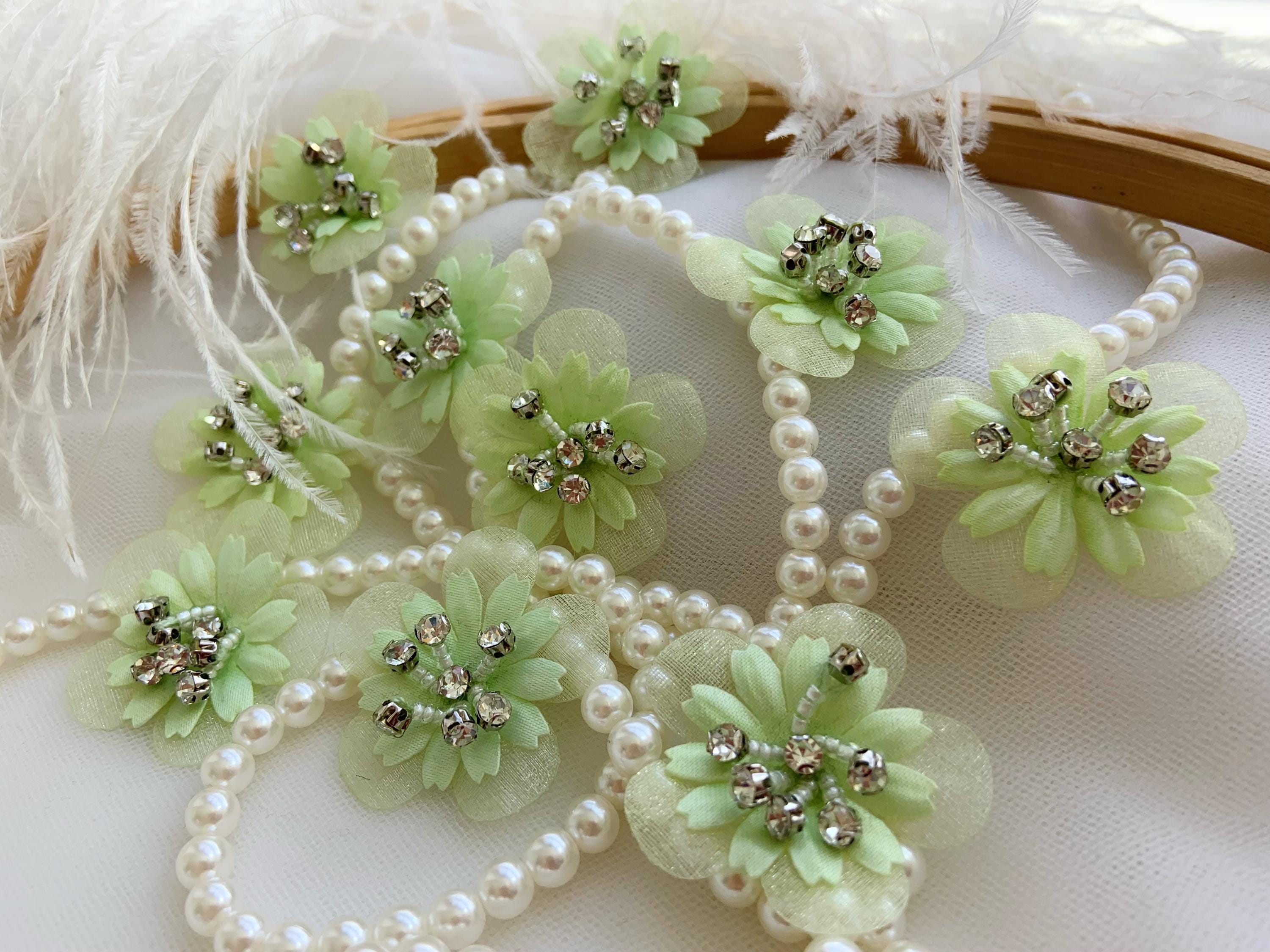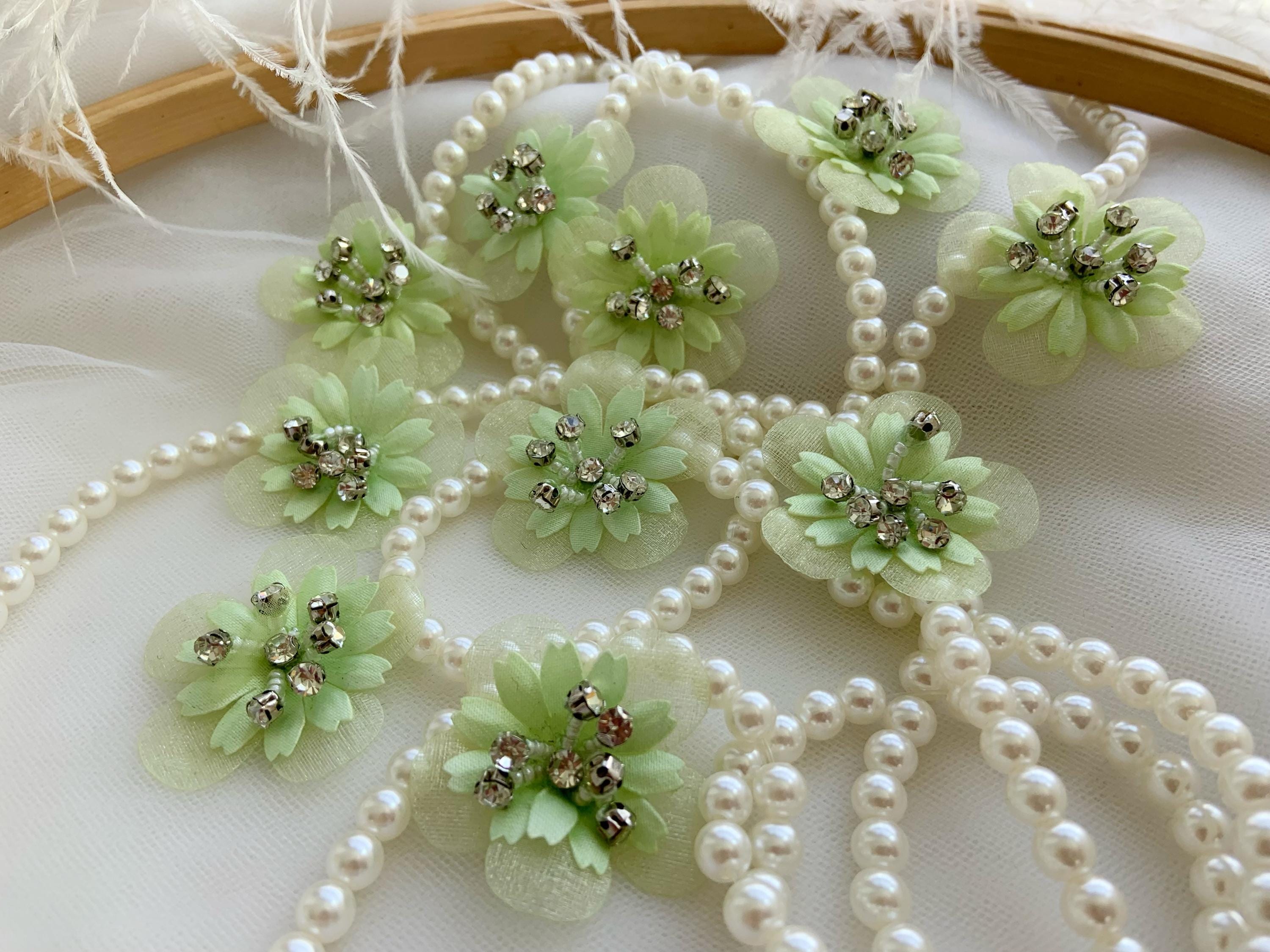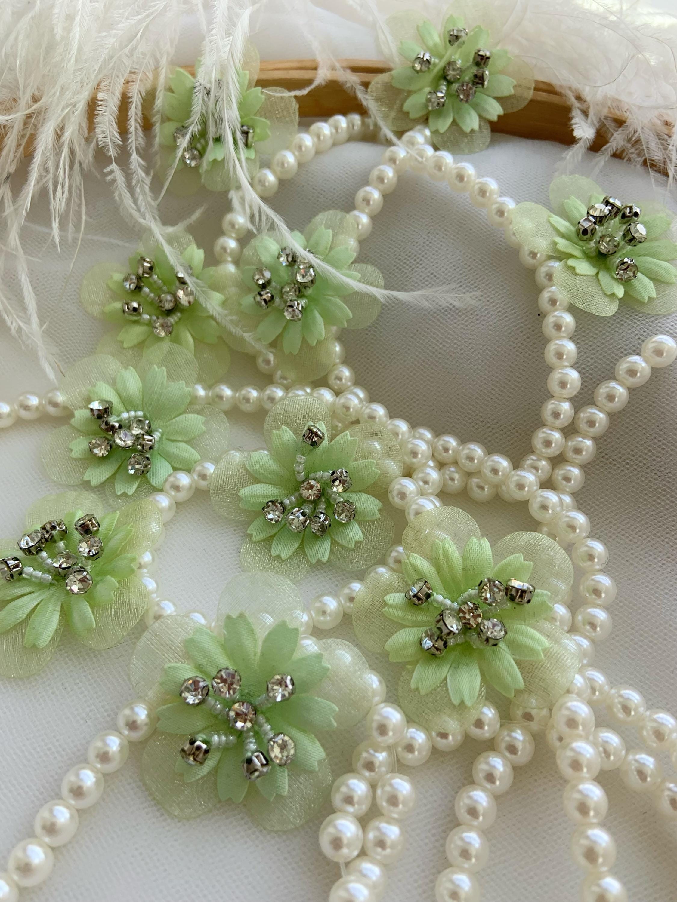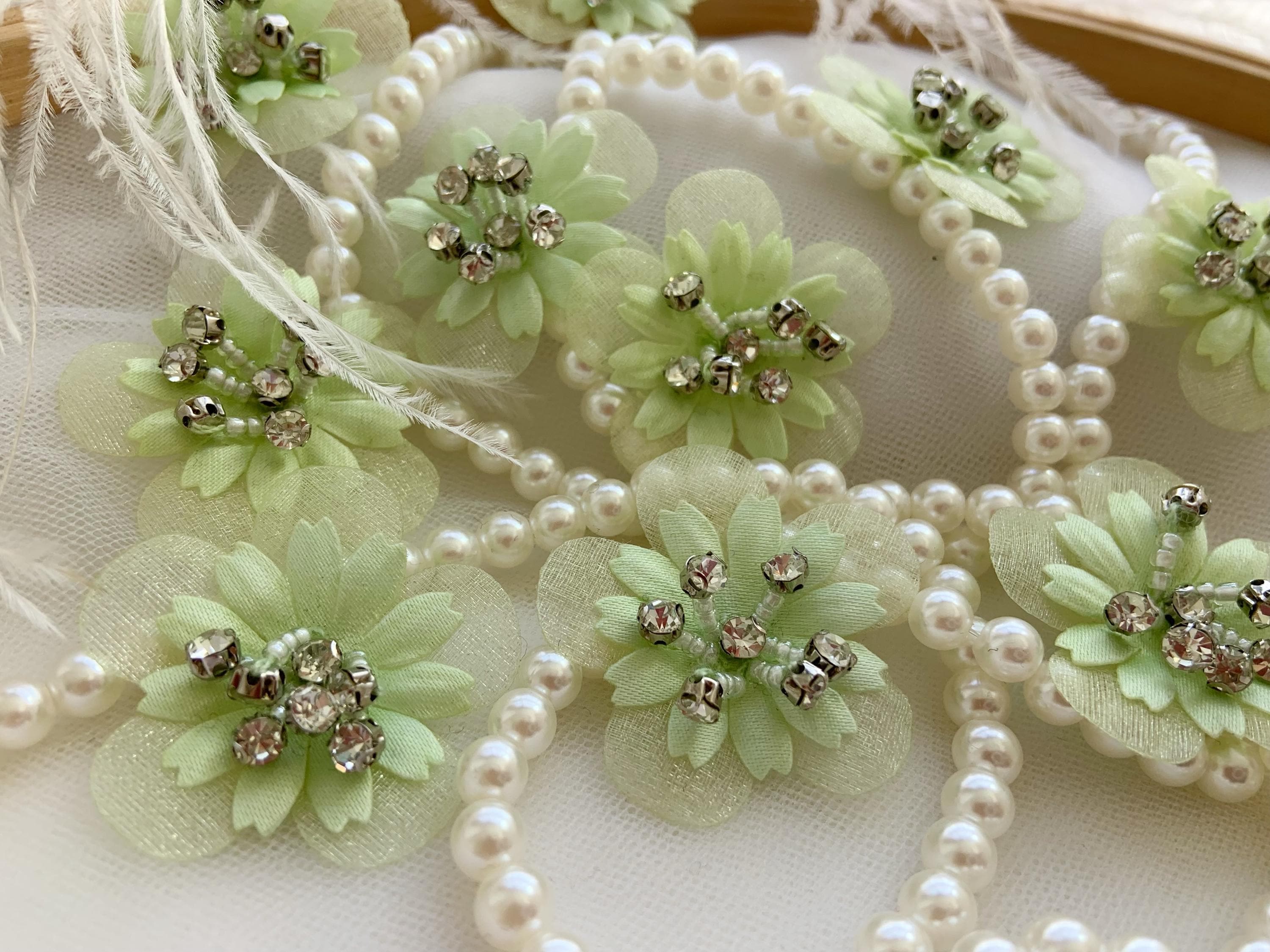 5pcs tan organza flowers applique, handcrafted flowers patch for garment alteration