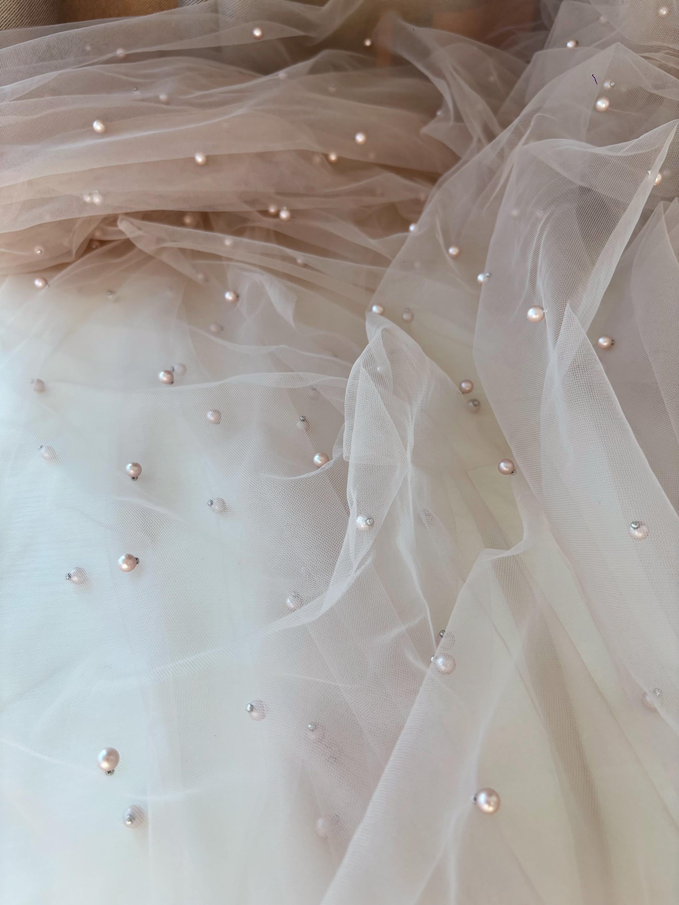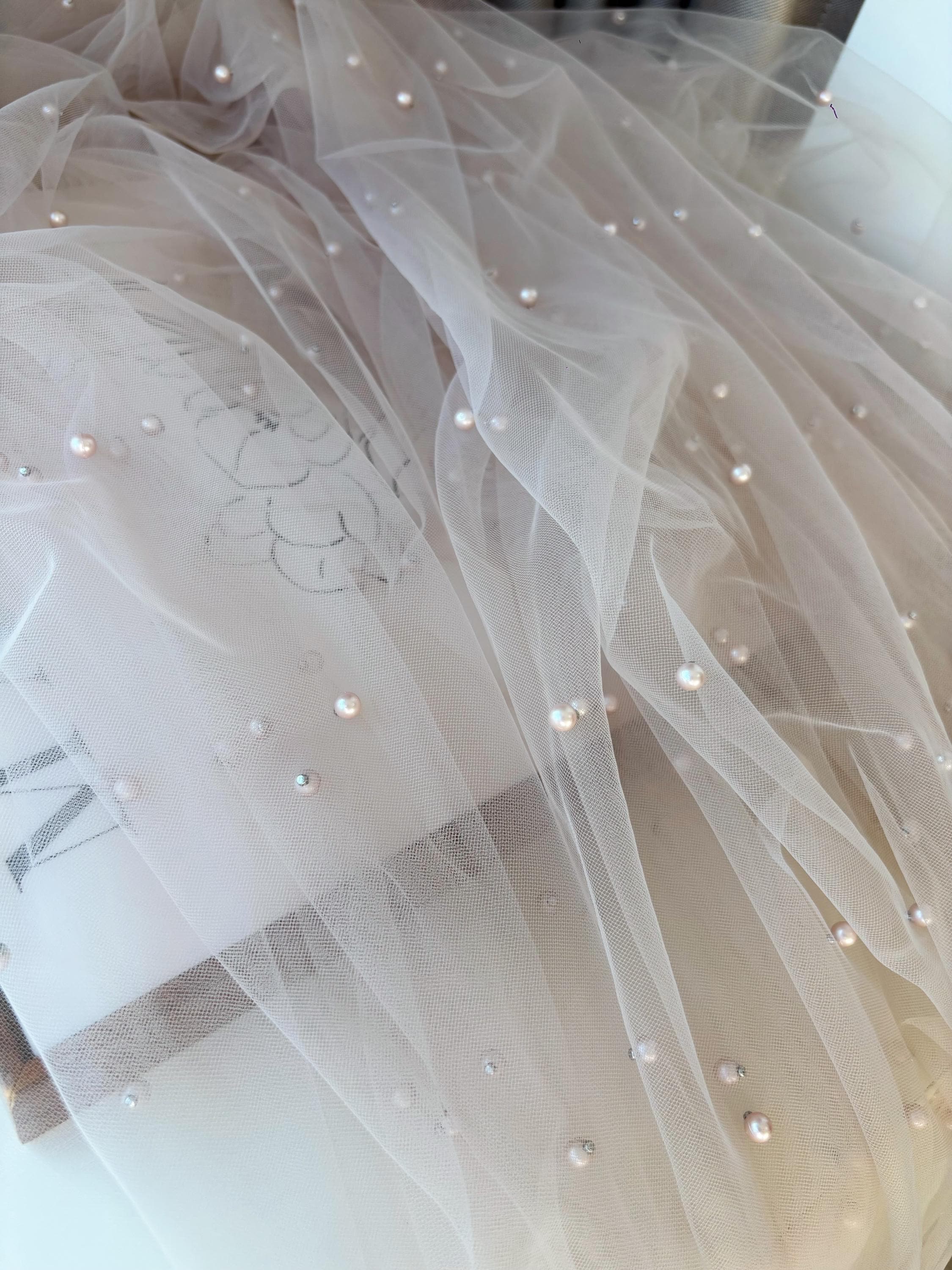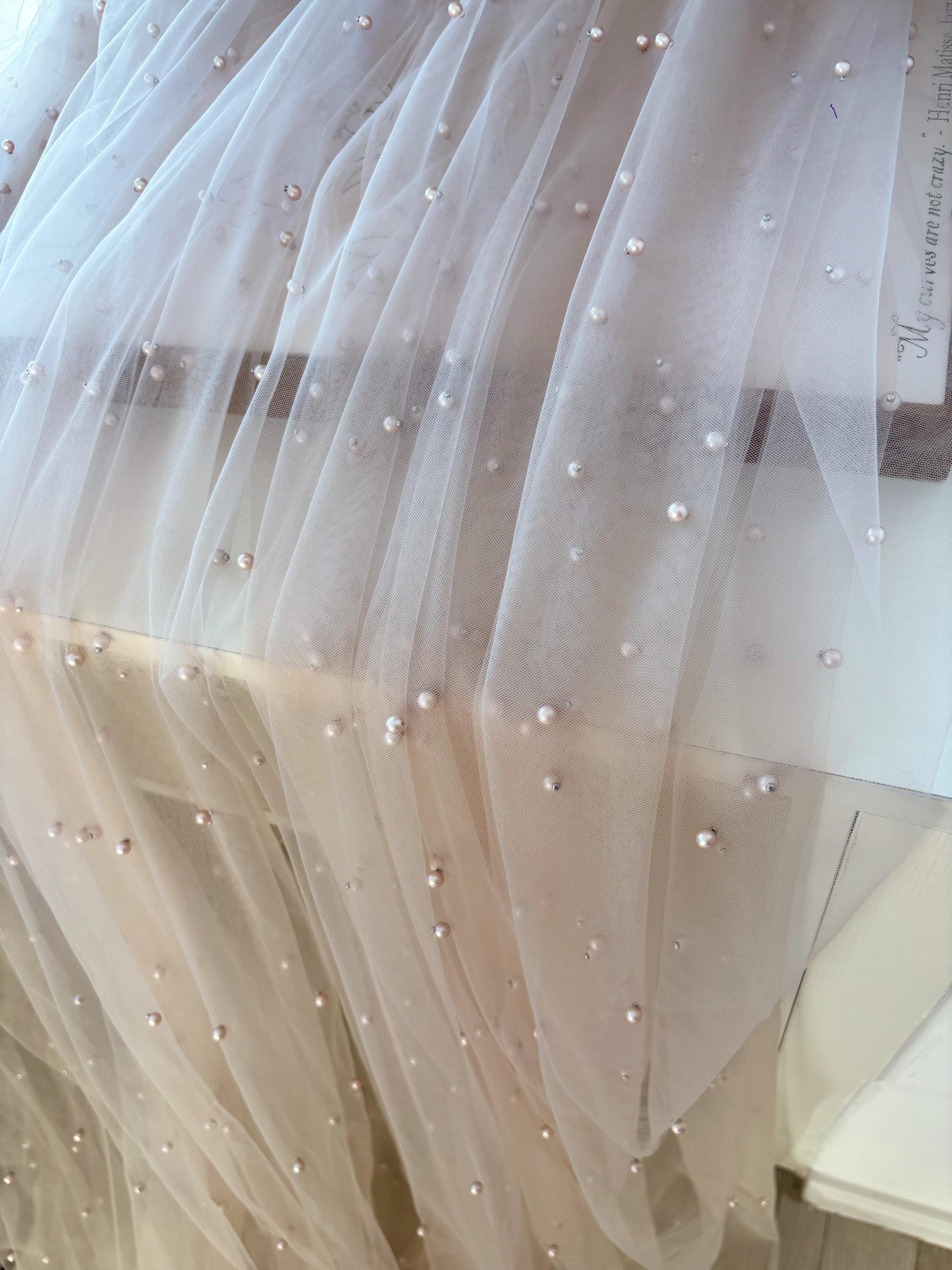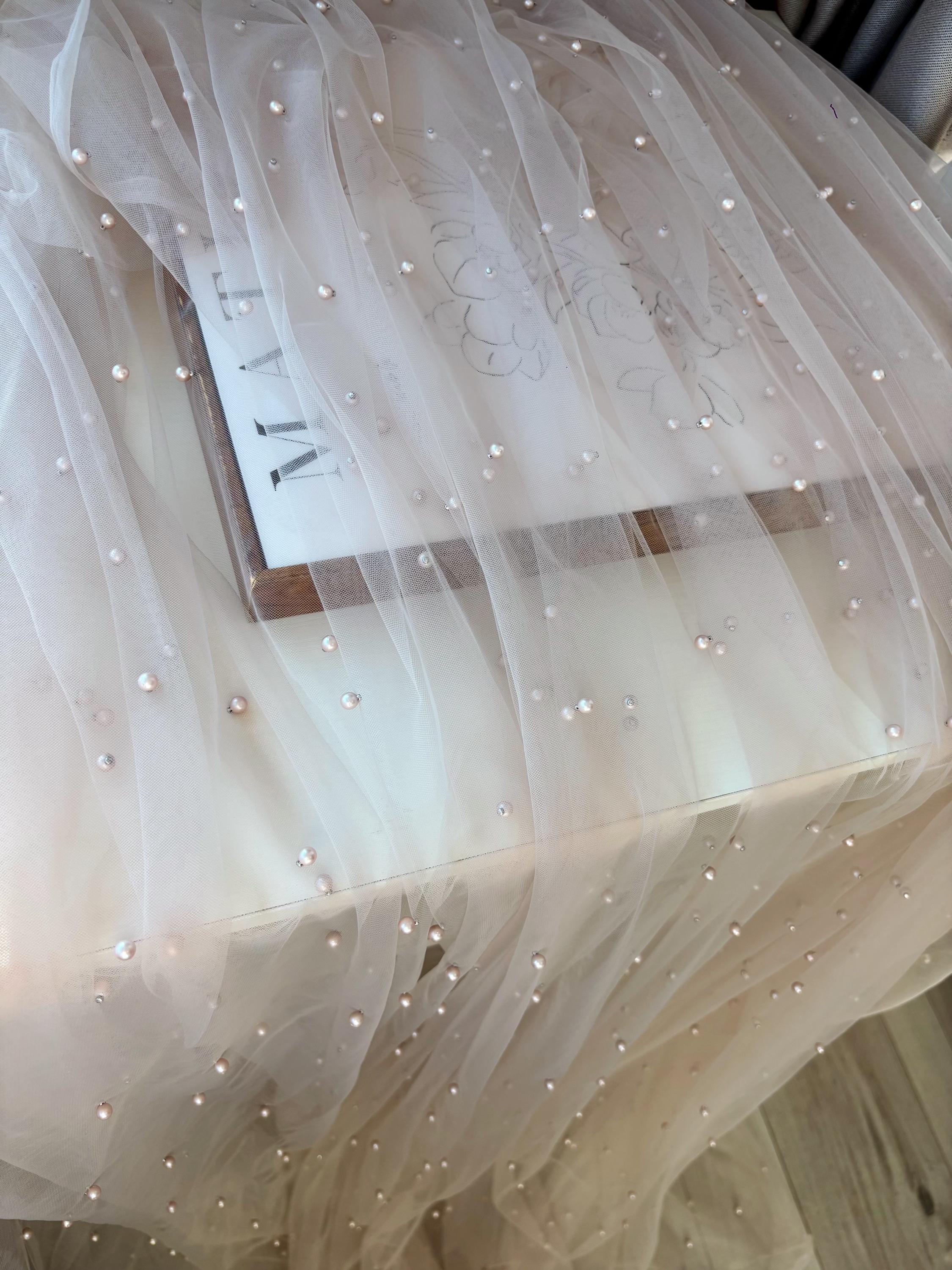 Tornado blue pearl bead tulle fabric, tulle fabric with pearls, wedding birthday prop backdrop