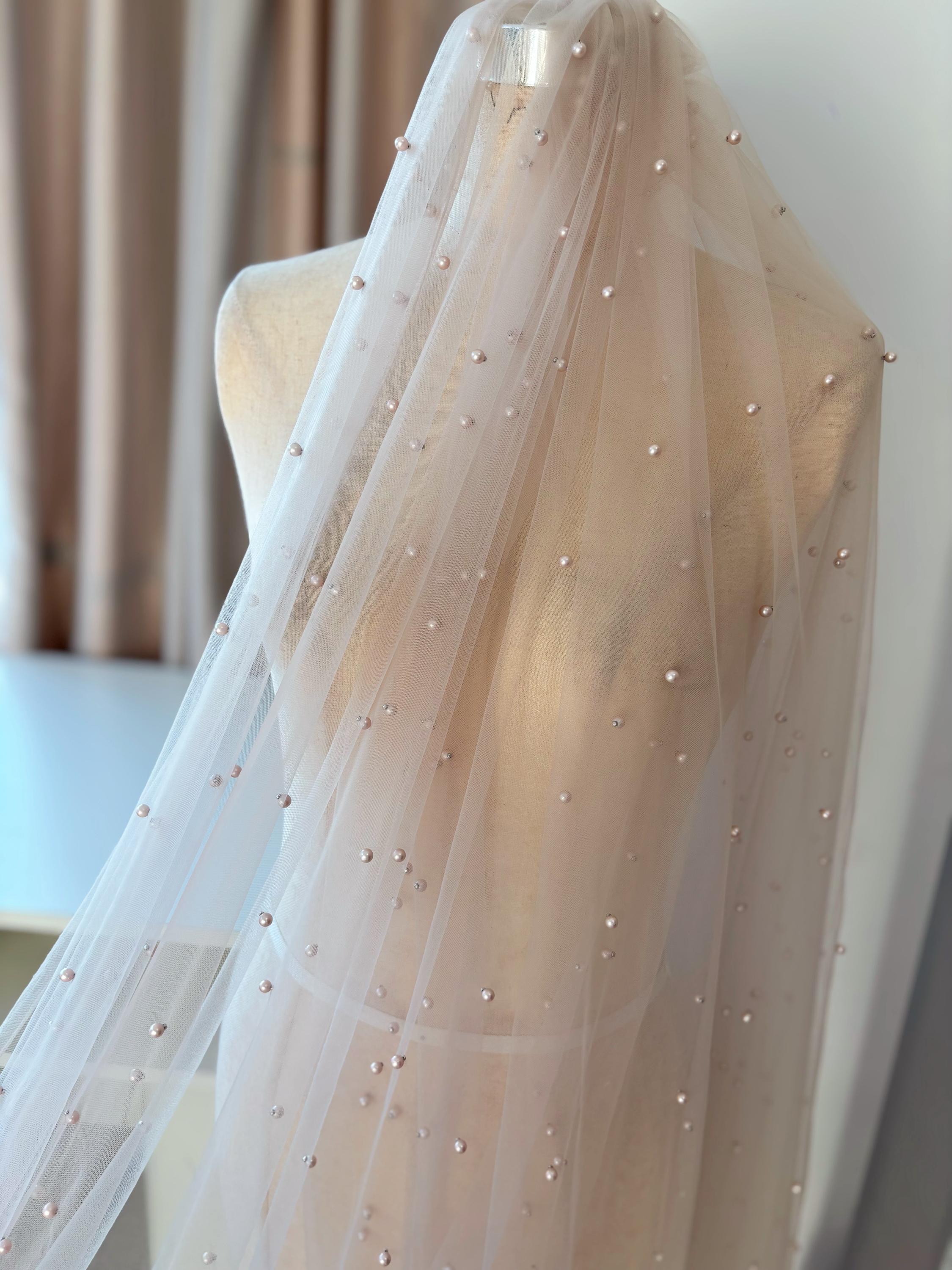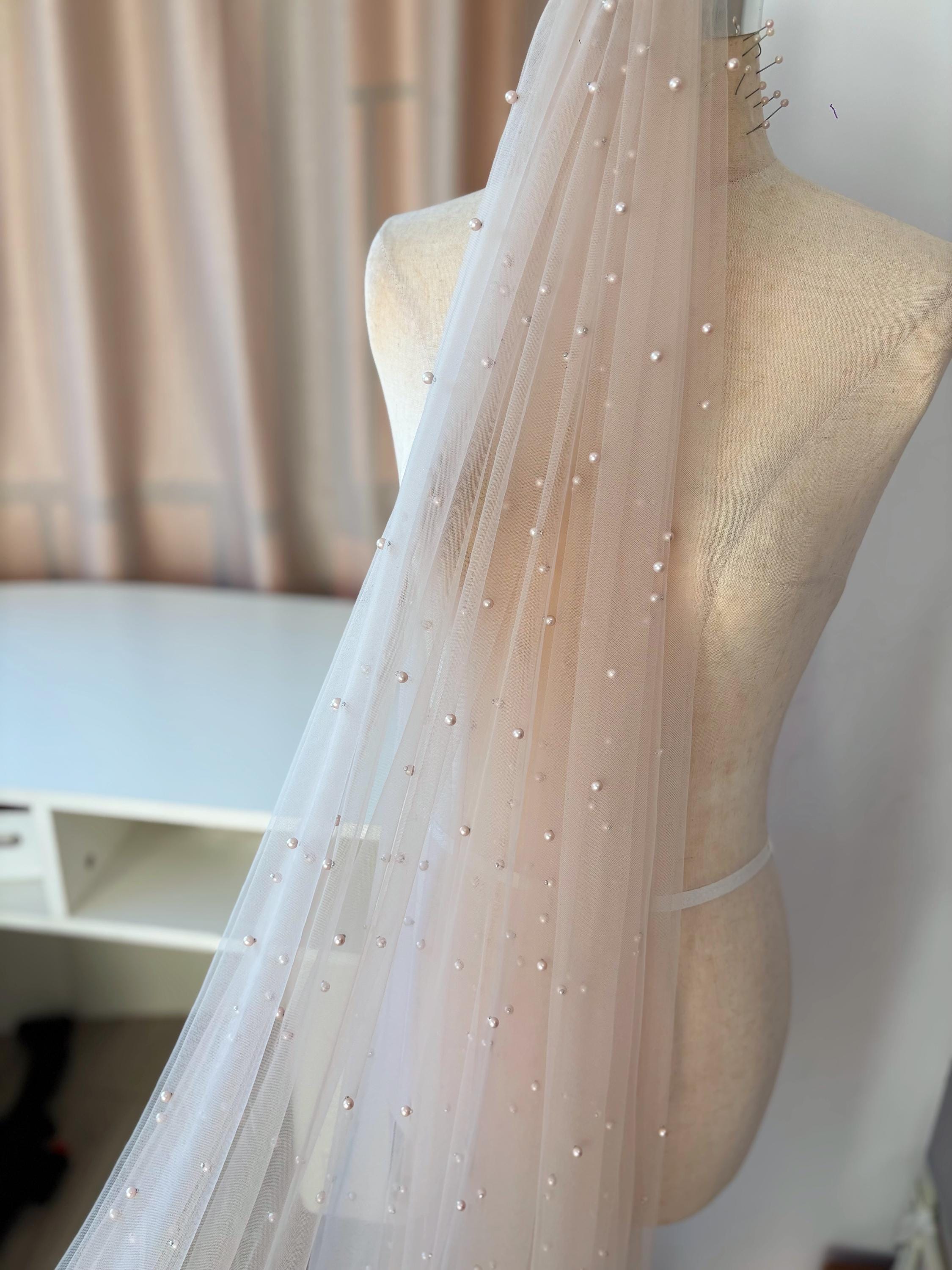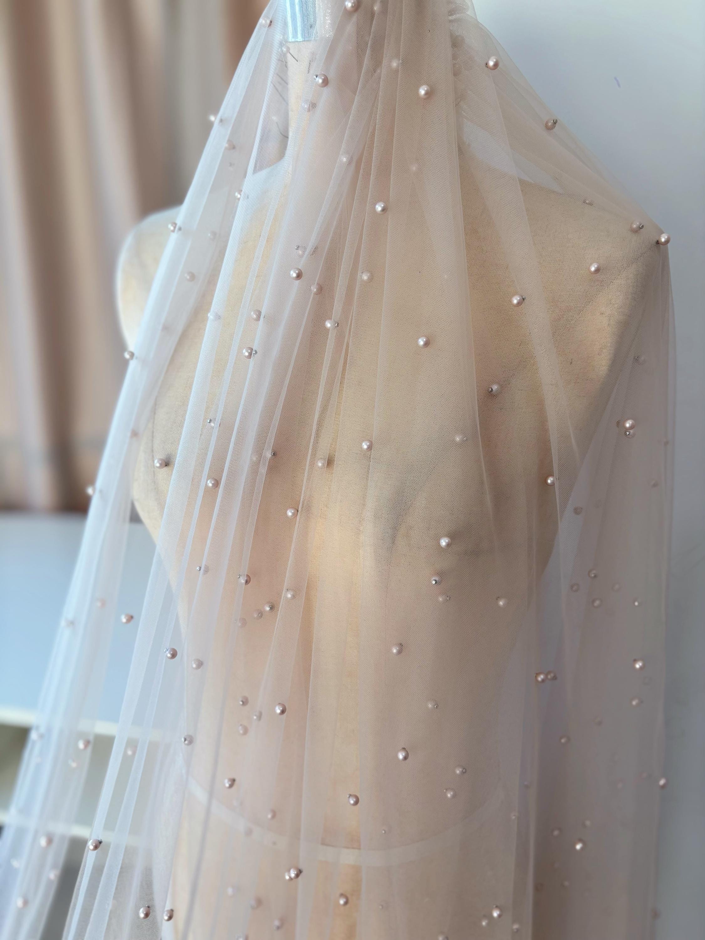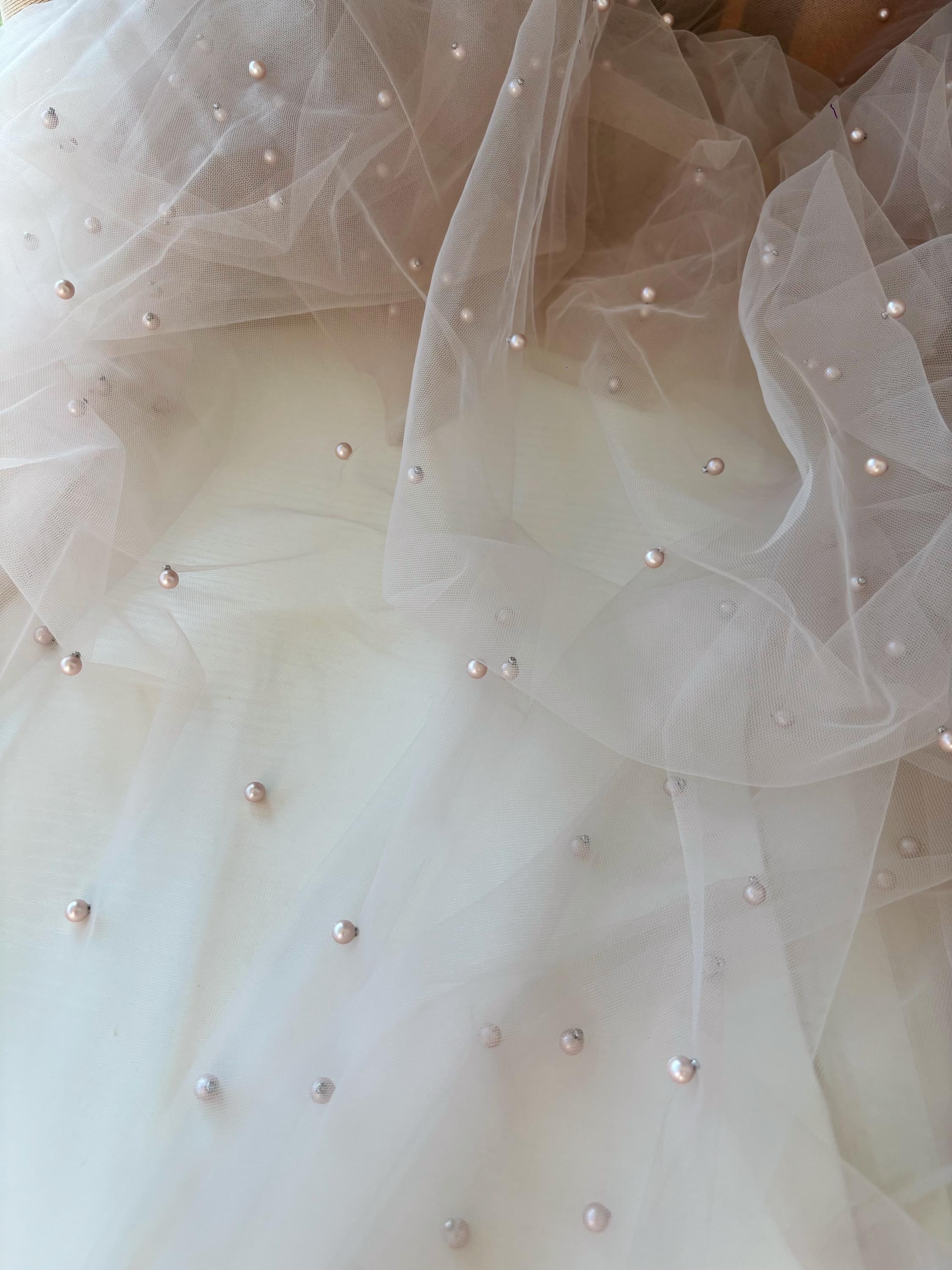 Tornado blue pearl bead tulle fabric, tulle fabric with pearls, wedding birthday prop backdrop