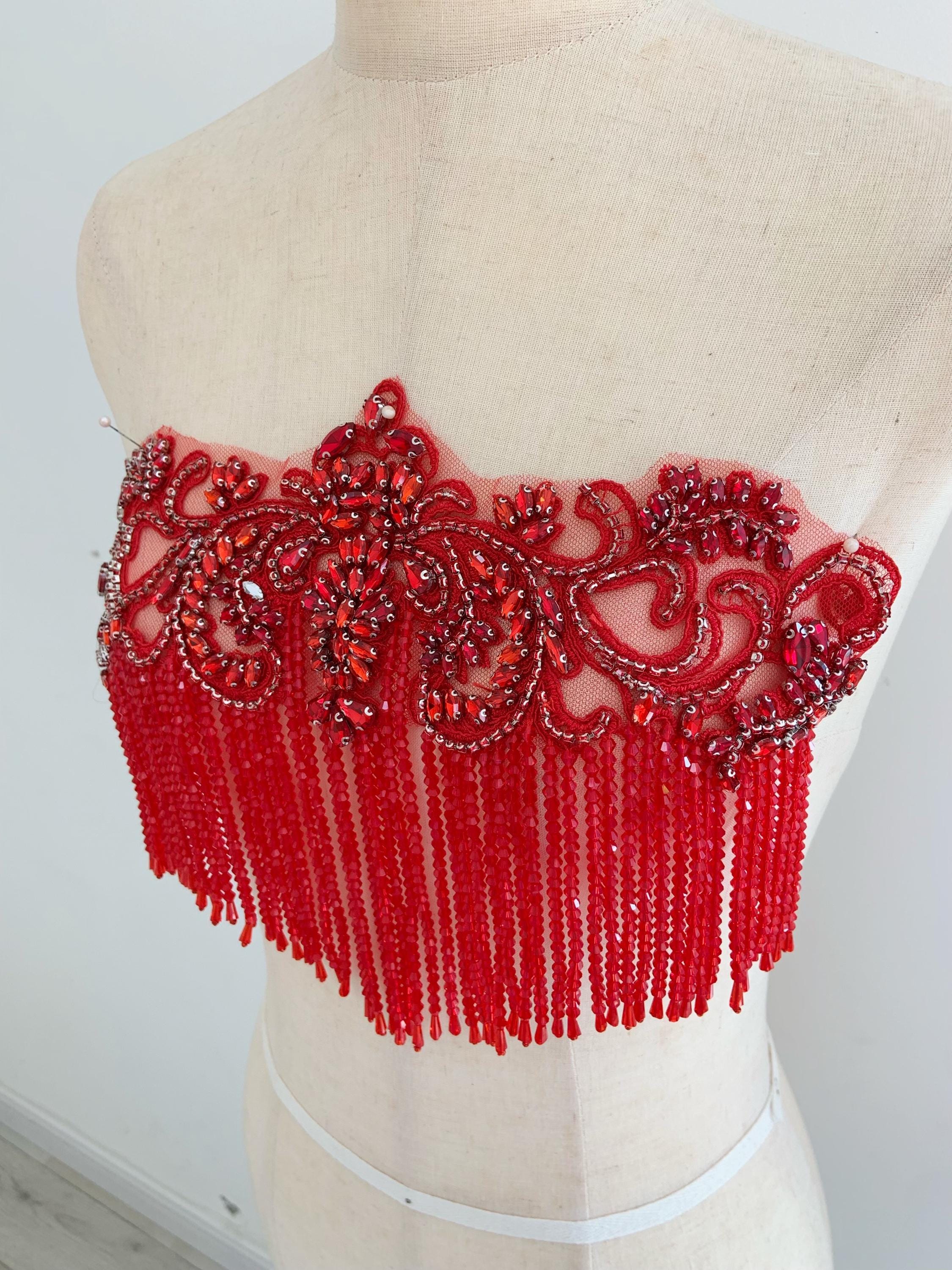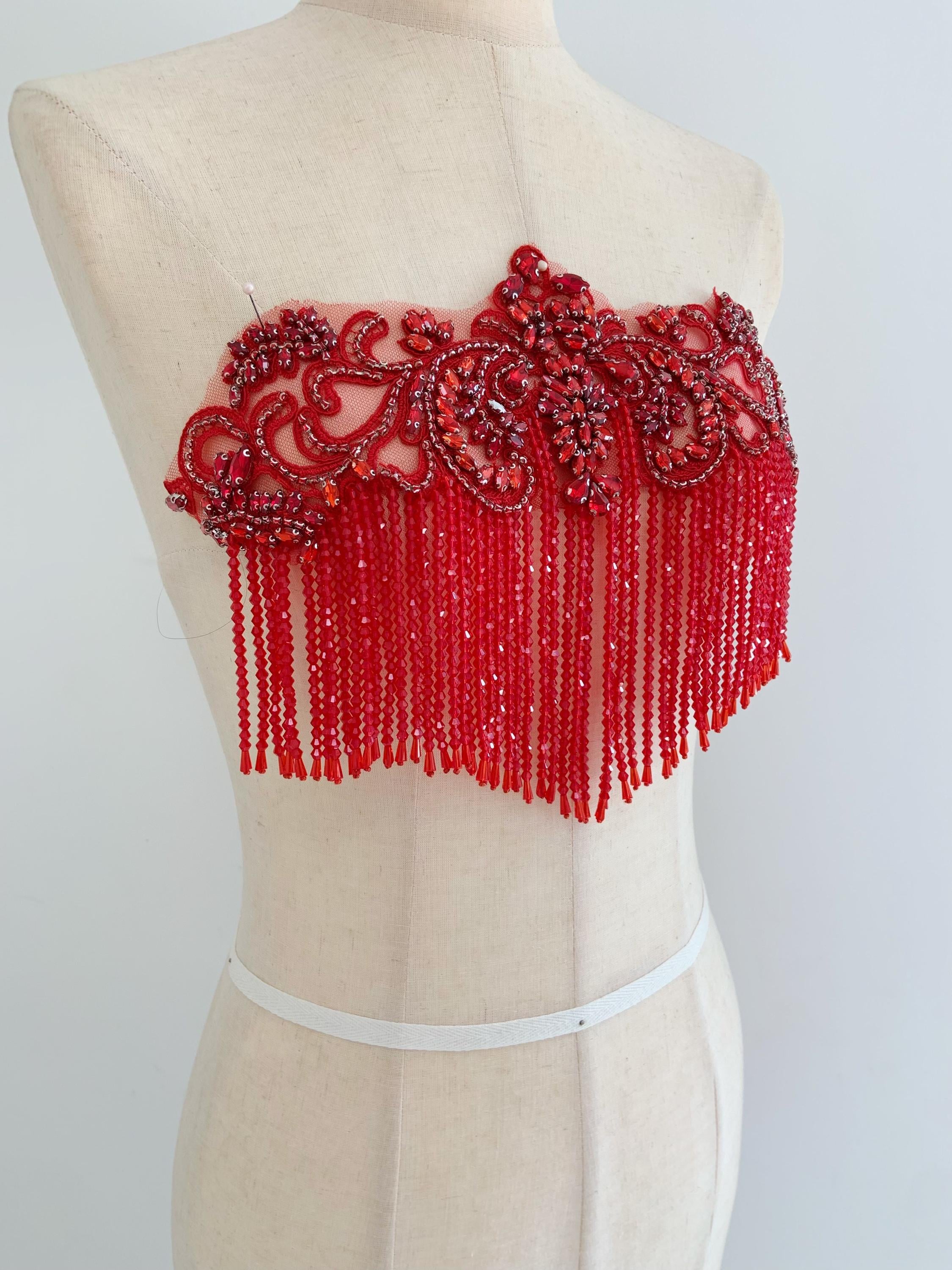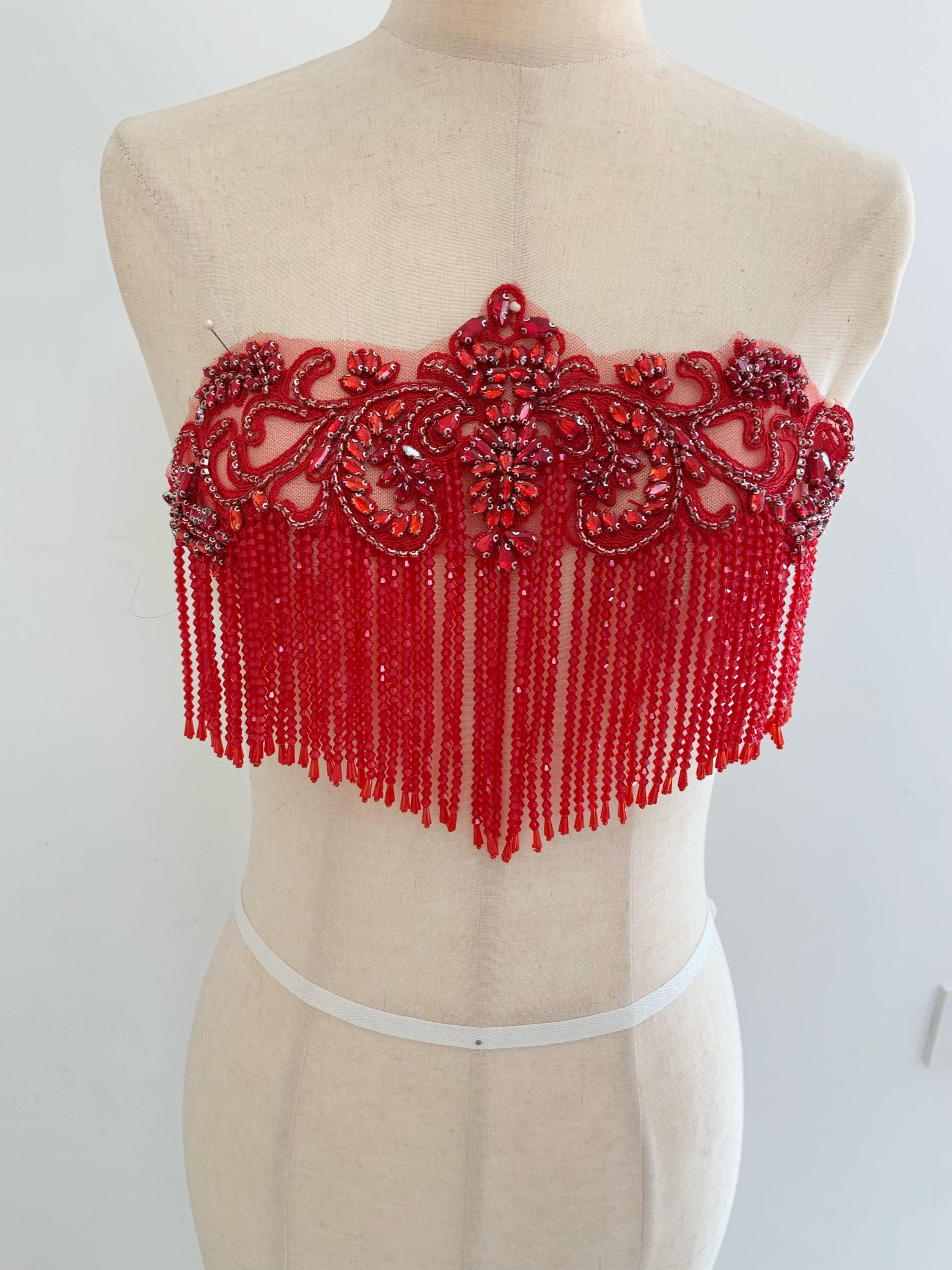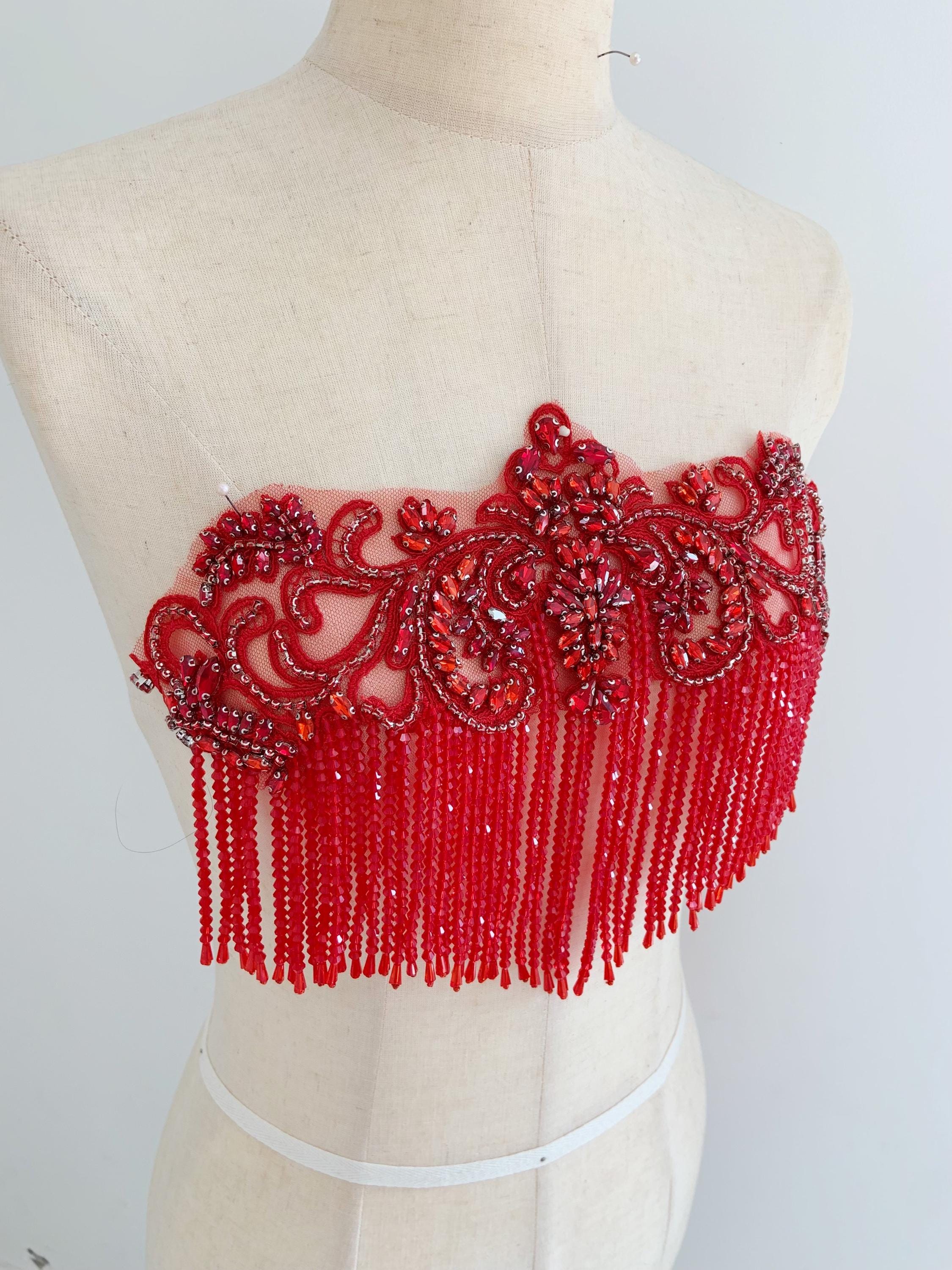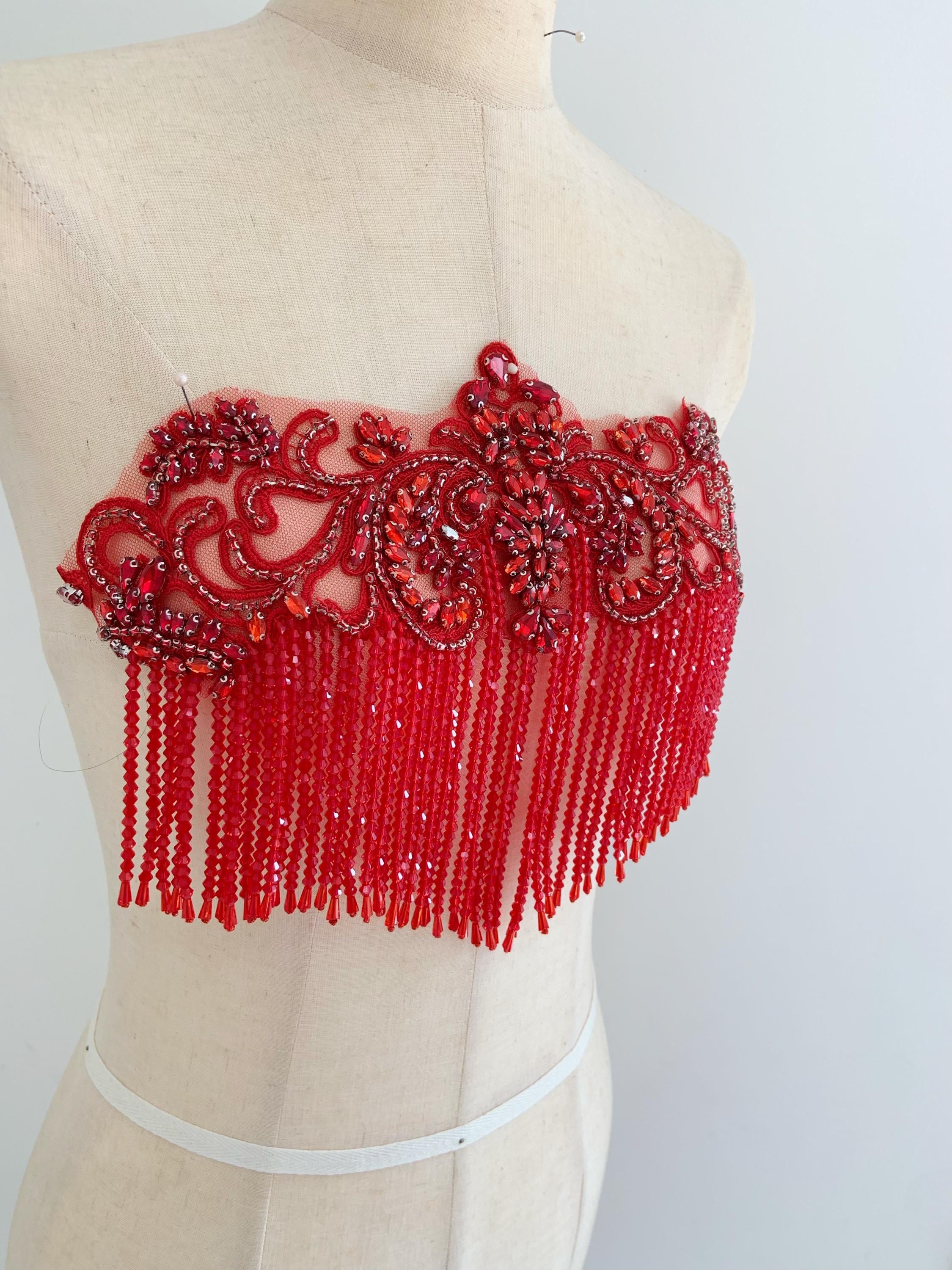 This Rhinestone bead applique is all handcrafted, the sparking bead fringe is made of quality glass, very sparking when you swing it, suit for party dress, couture, dance costume, headpiece, epaulets