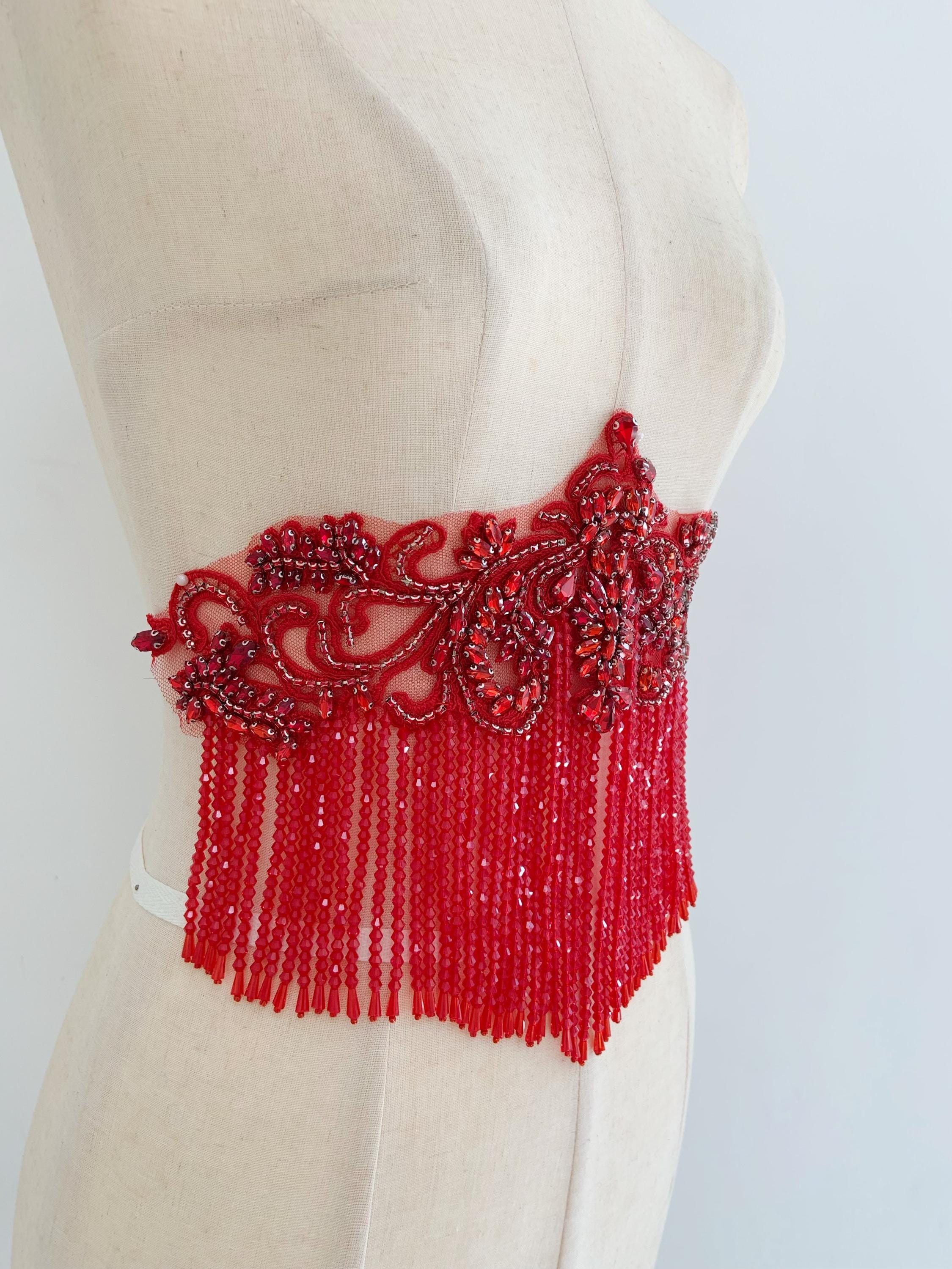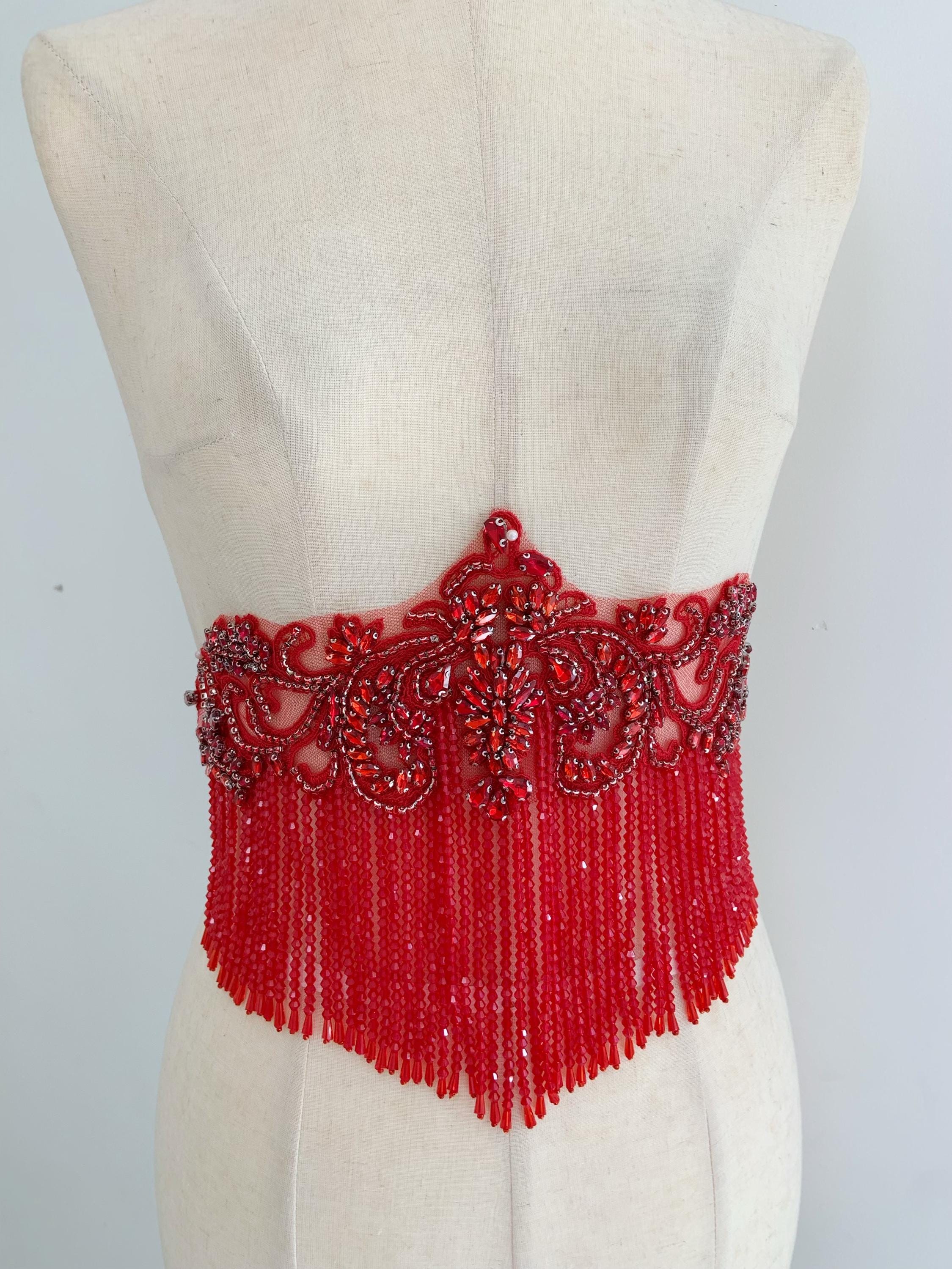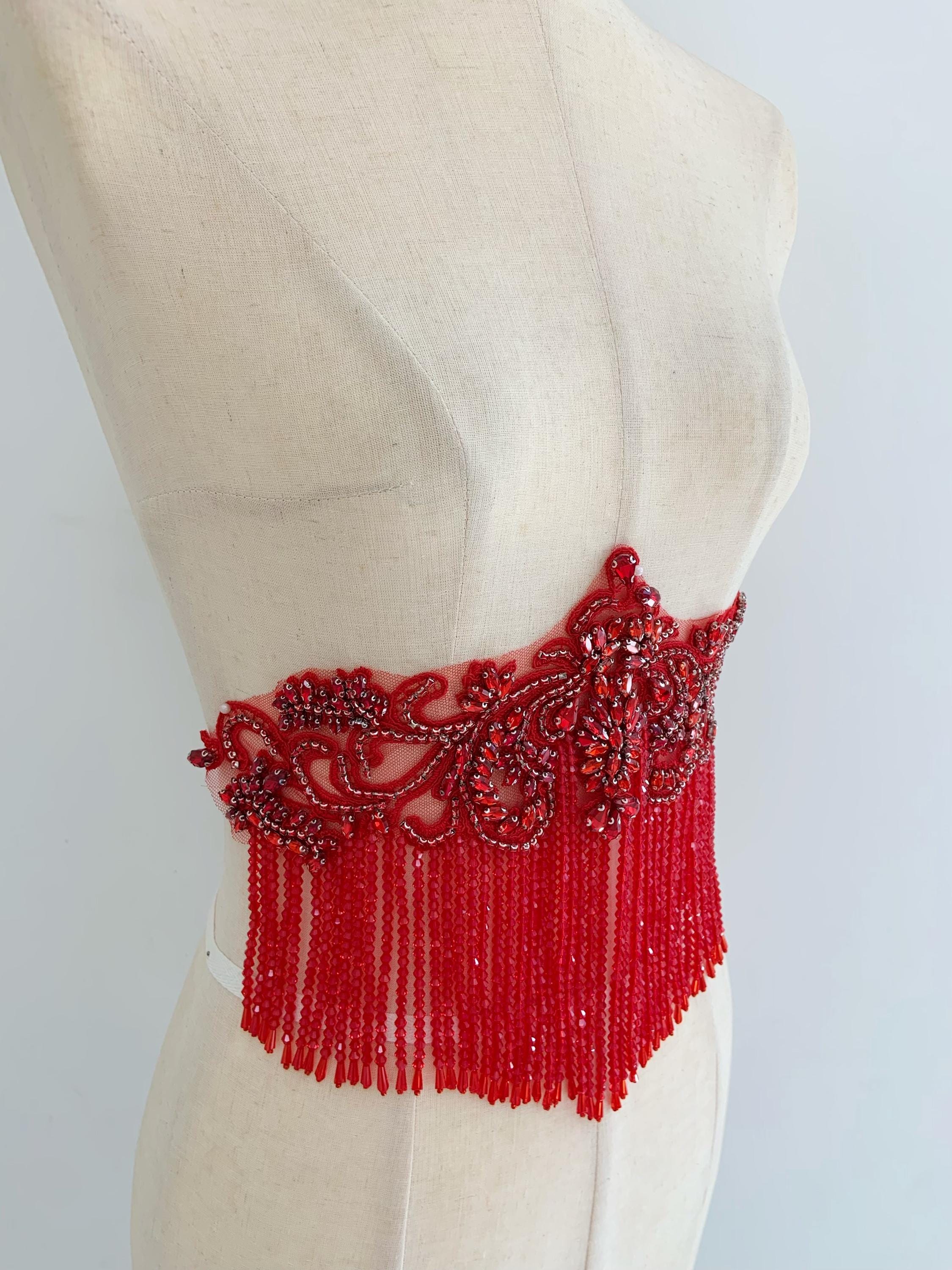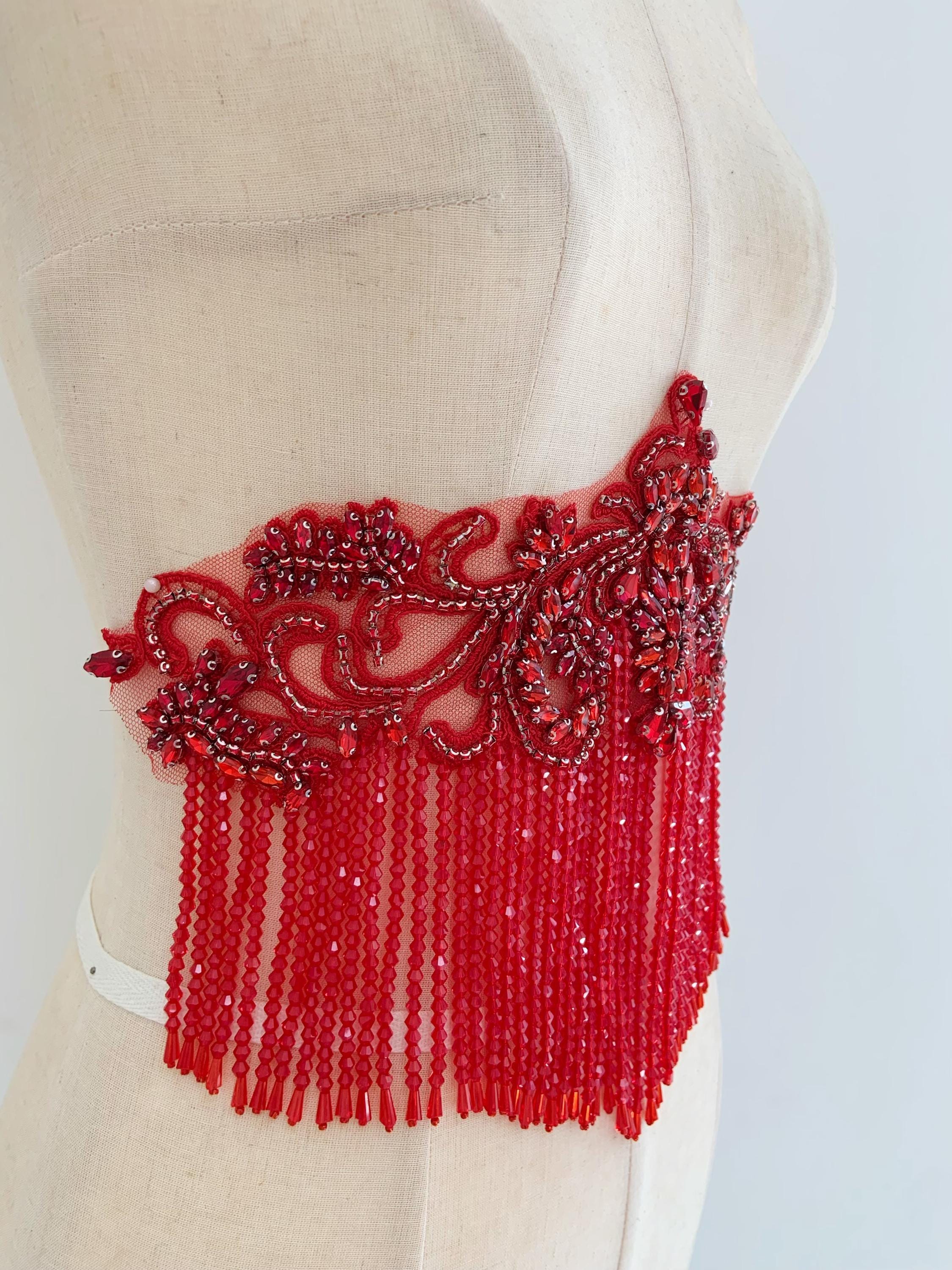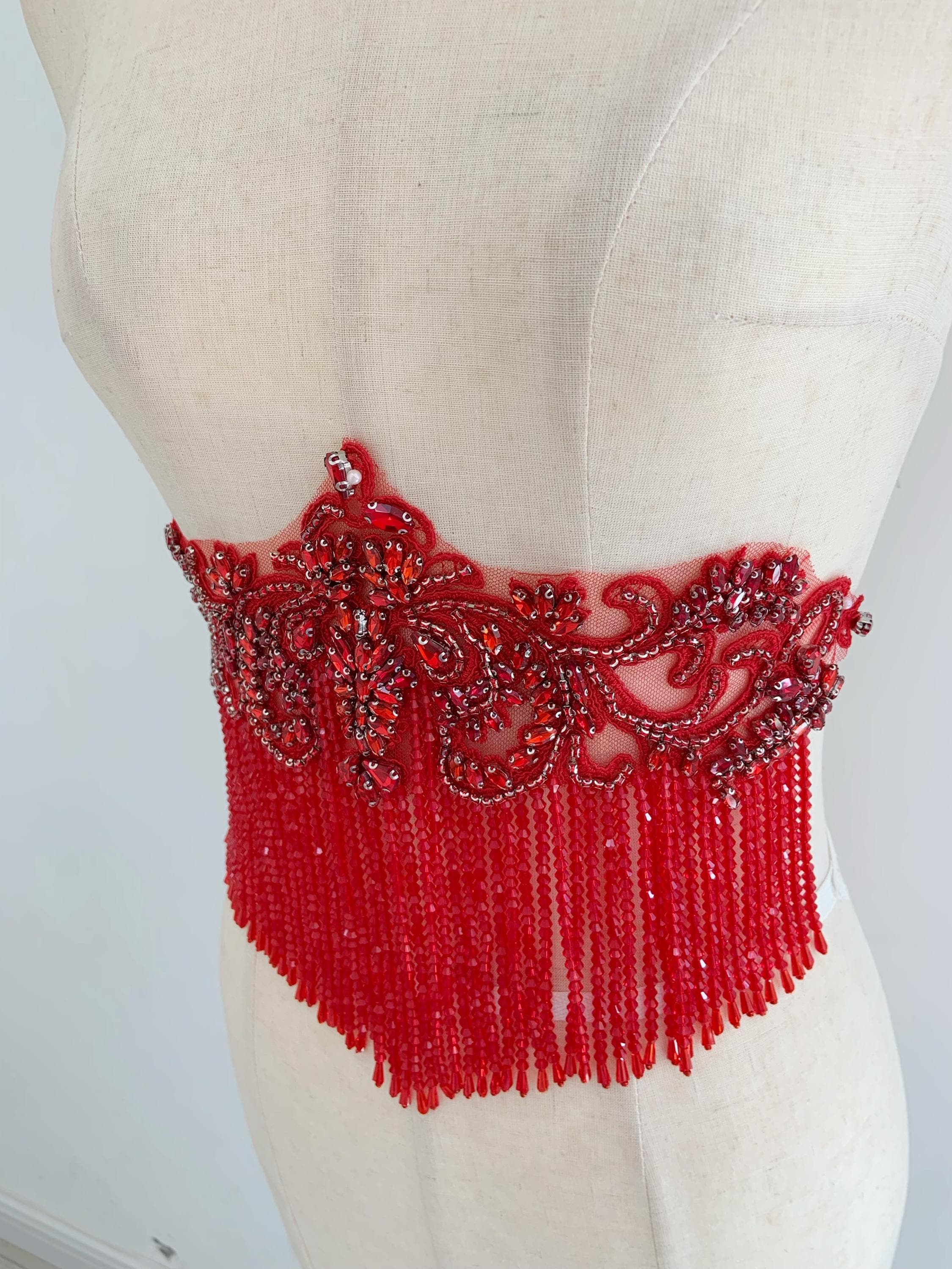 This Rhinestone bead applique is all handcrafted, the sparking bead fringe is made of quality glass, very sparking when you swing it, suit for party dress, couture, dance costume, headpiece, epaulets