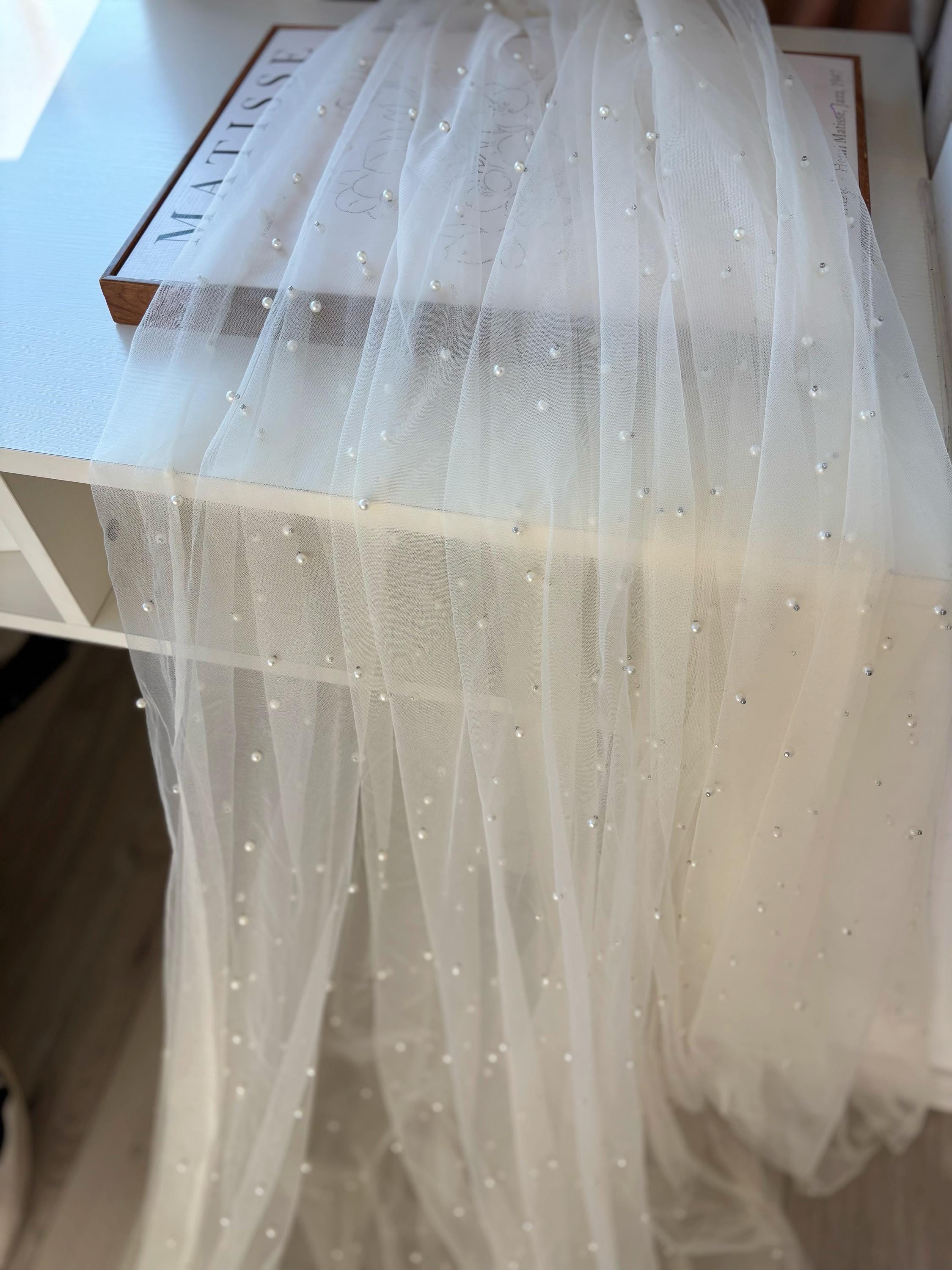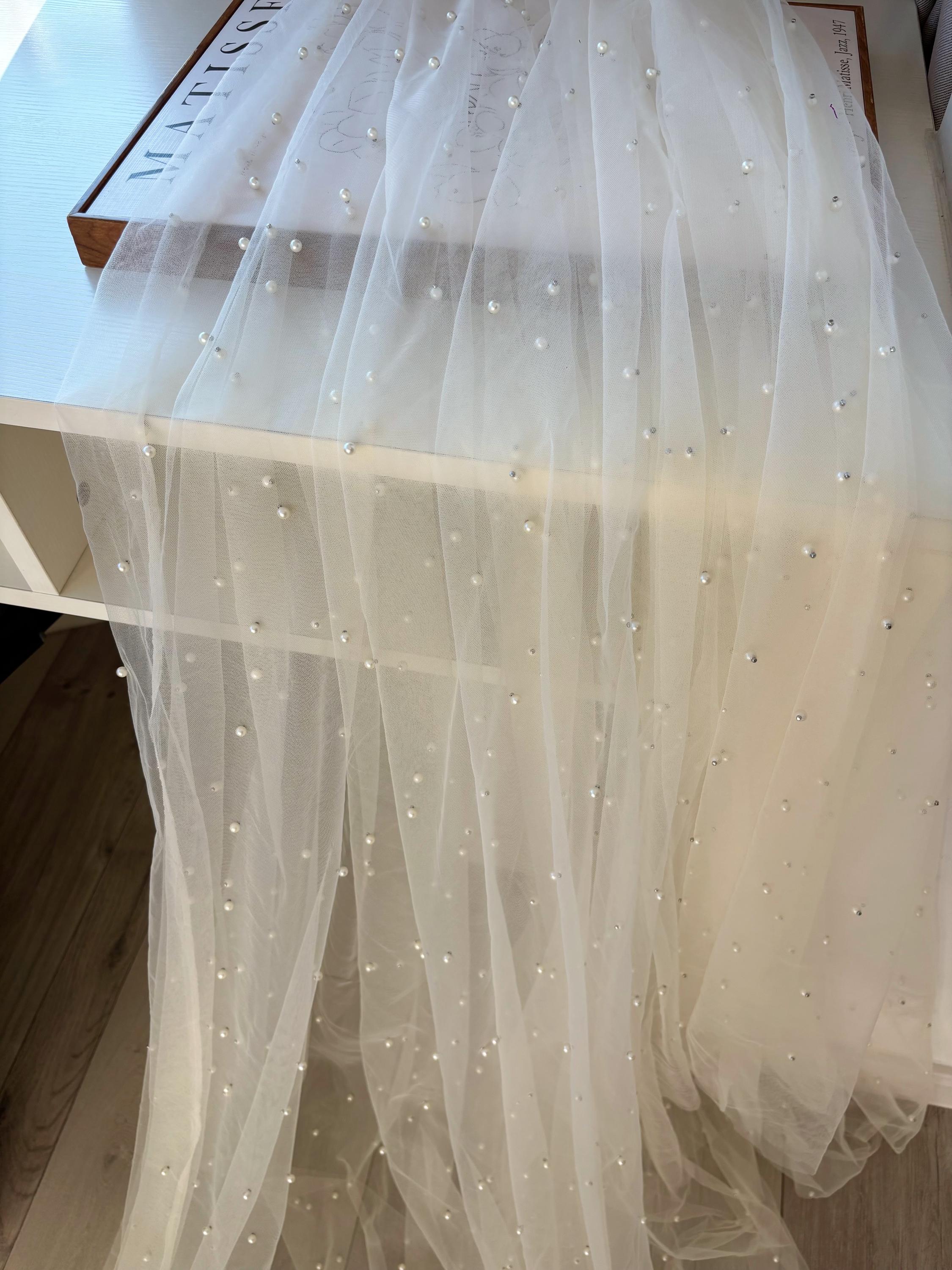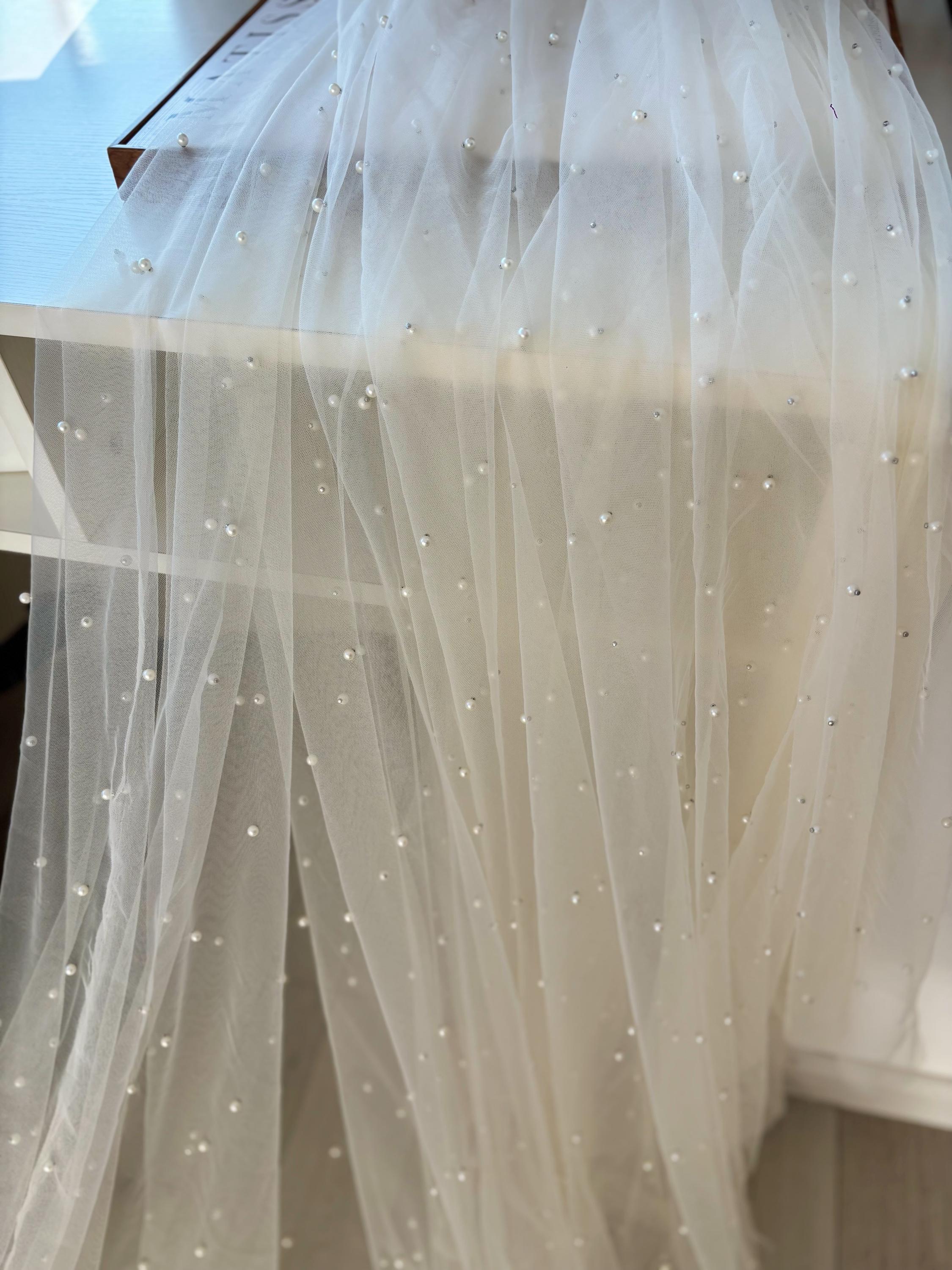 soft purple pearl bead tulle fabric, tulle fabric with pearls, wedding birthday prop backdrop