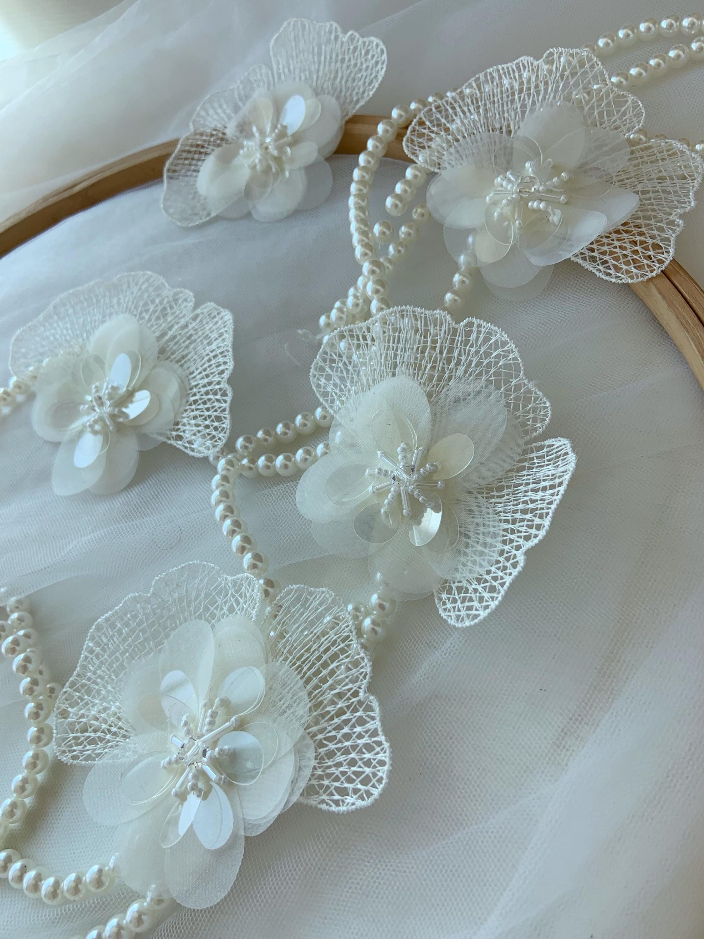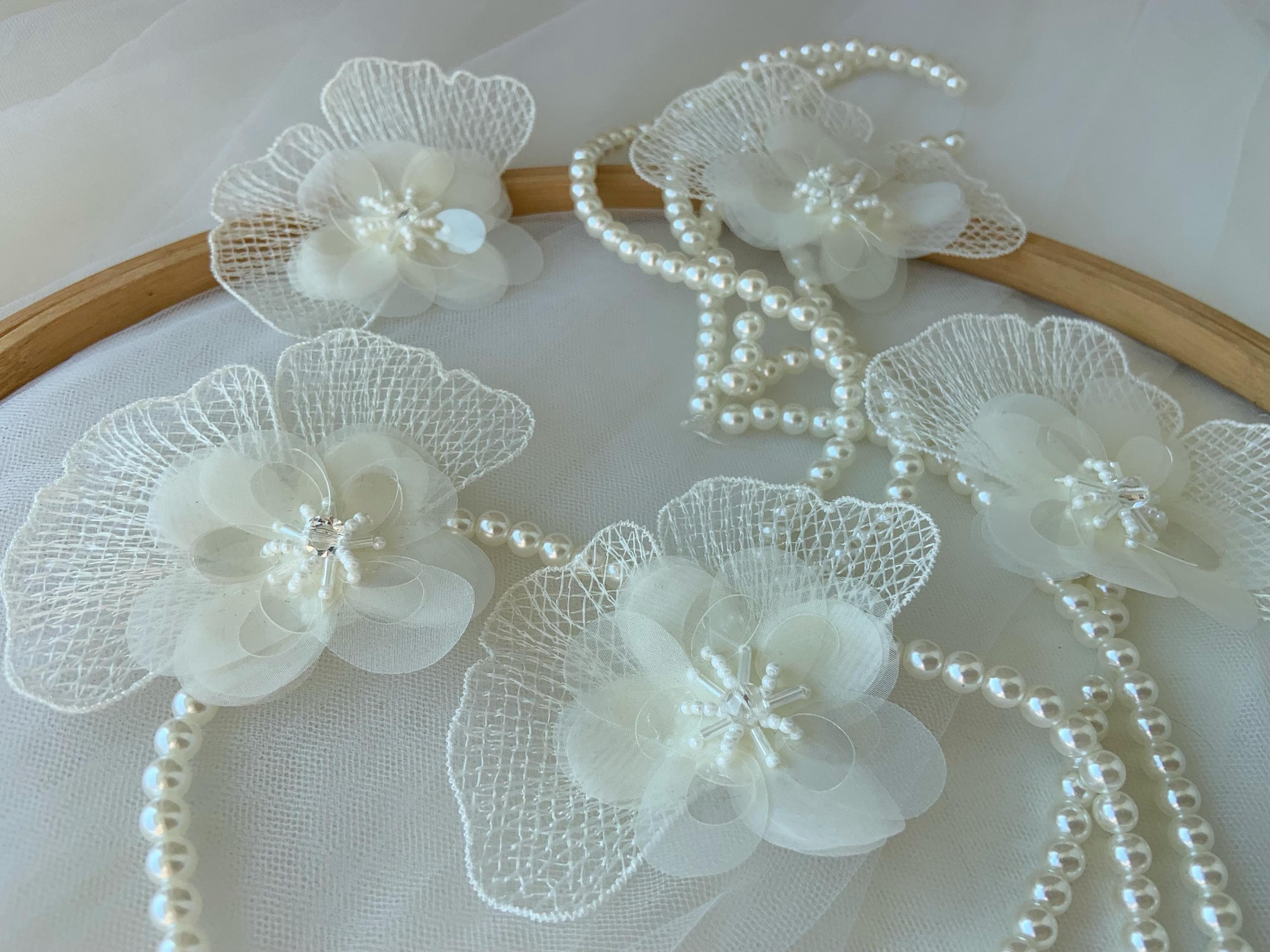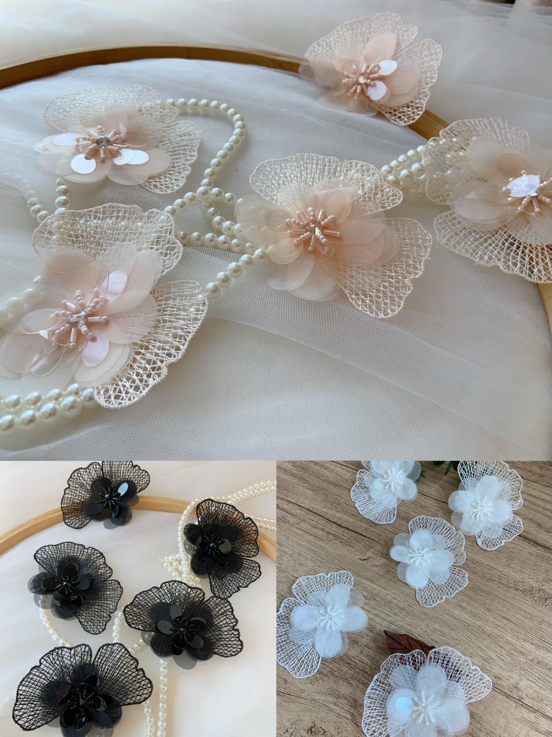 3d florals motif applique, heavy bead organza lace applique with rhinestone