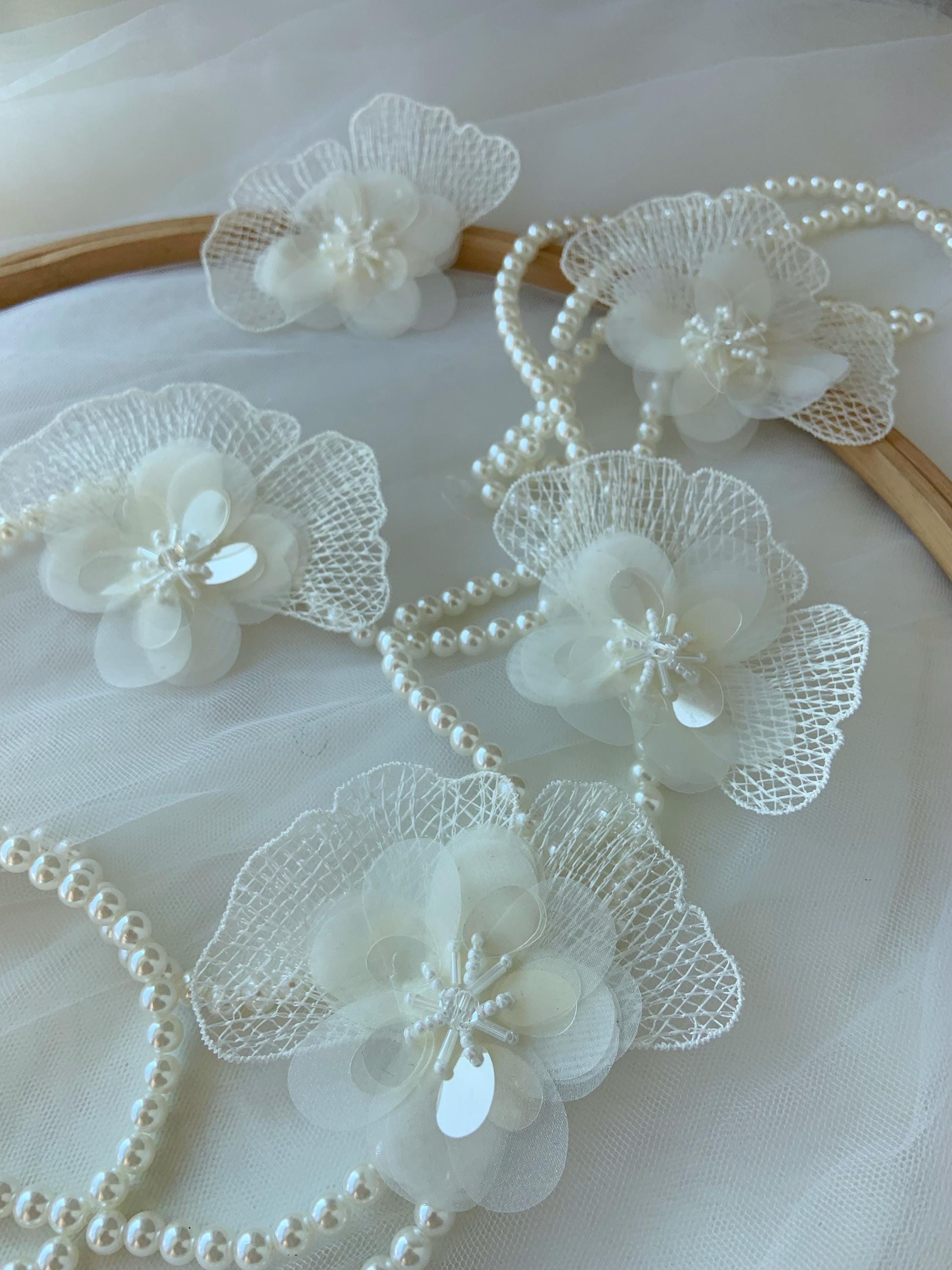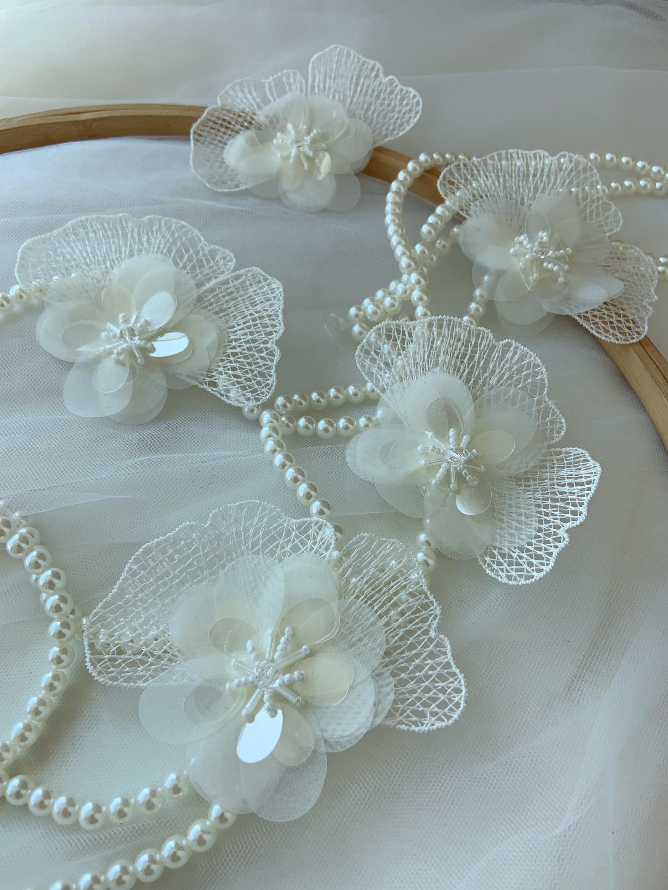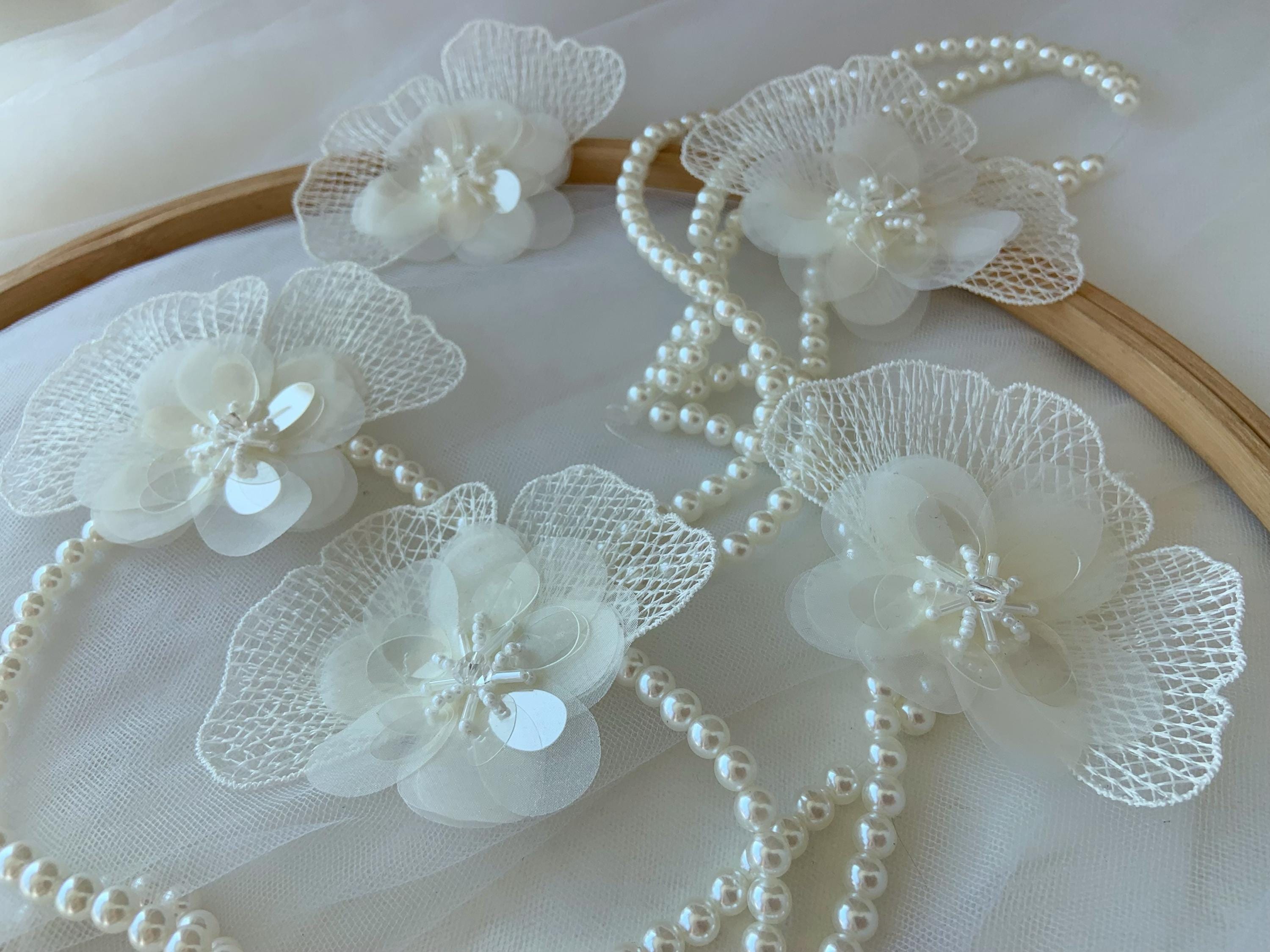 3d florals motif applique, heavy bead organza lace applique with rhinestone