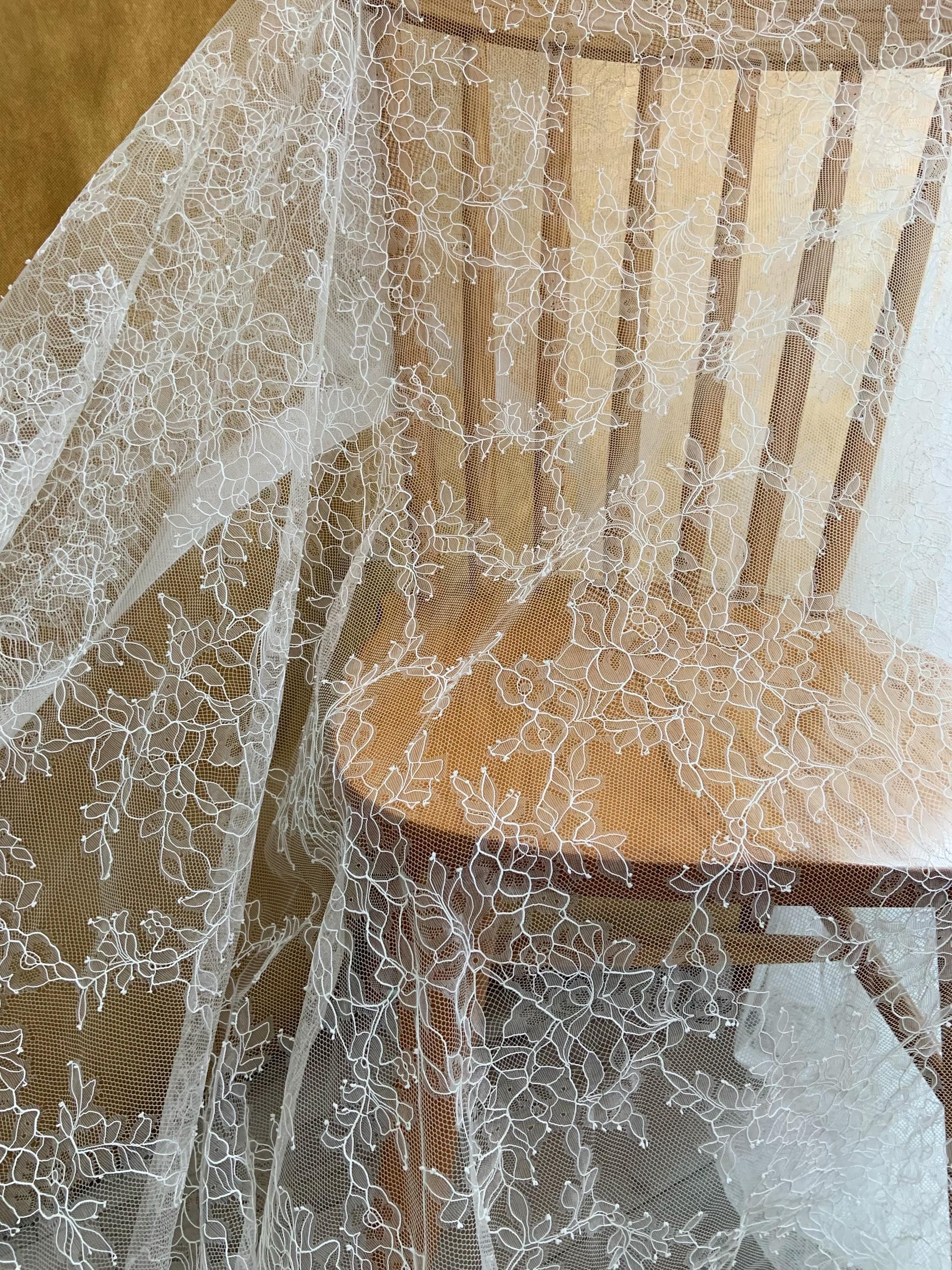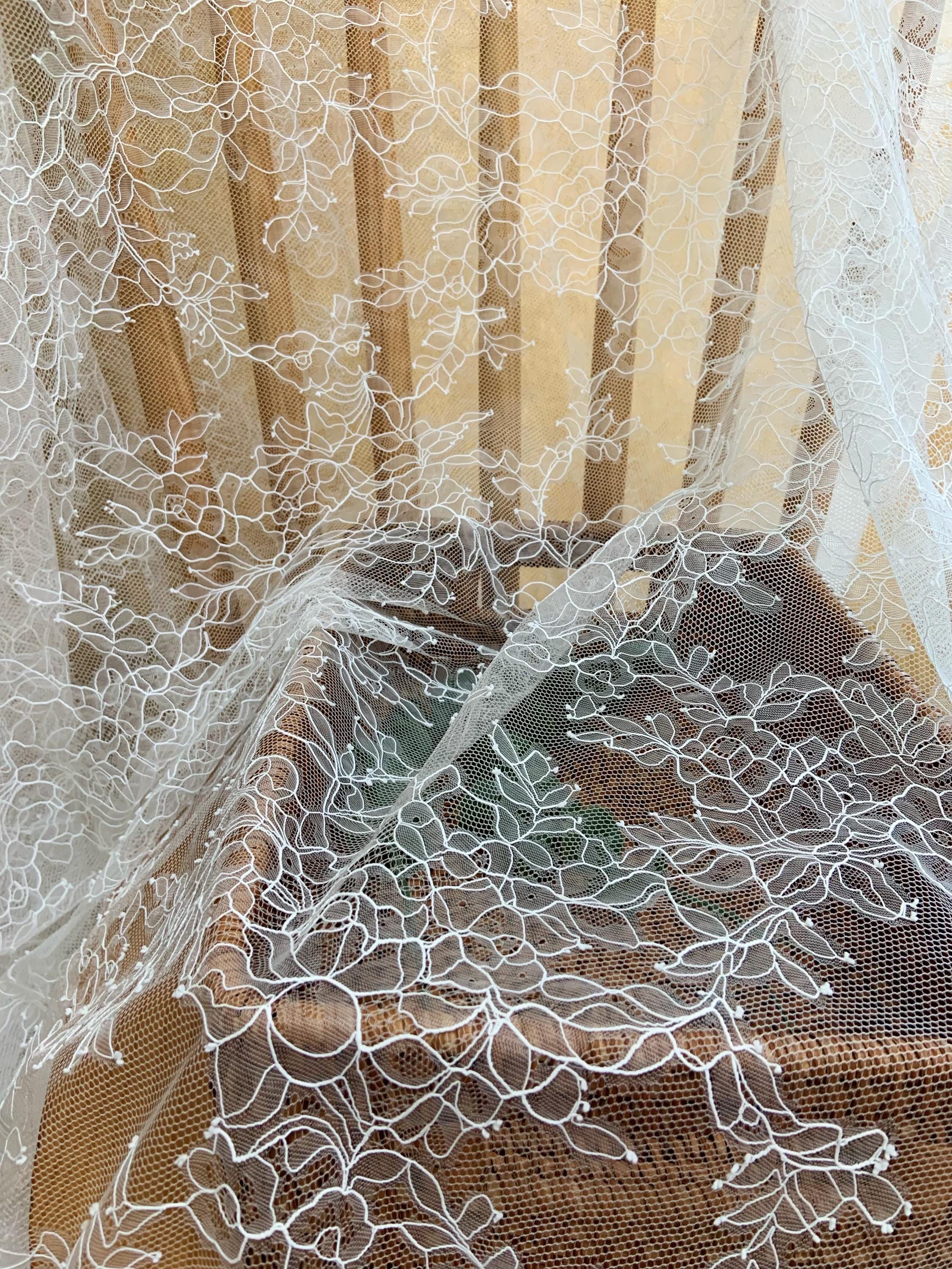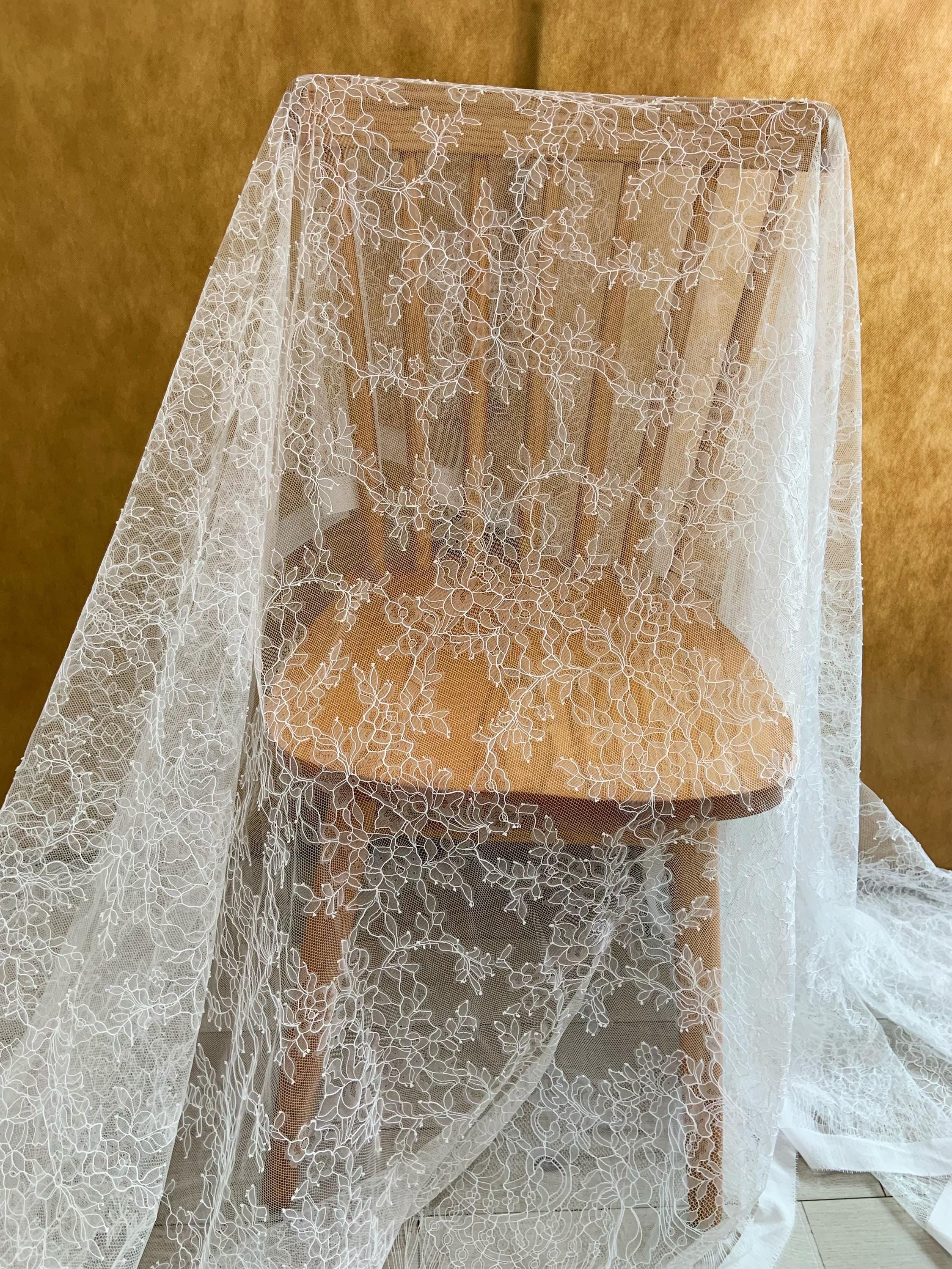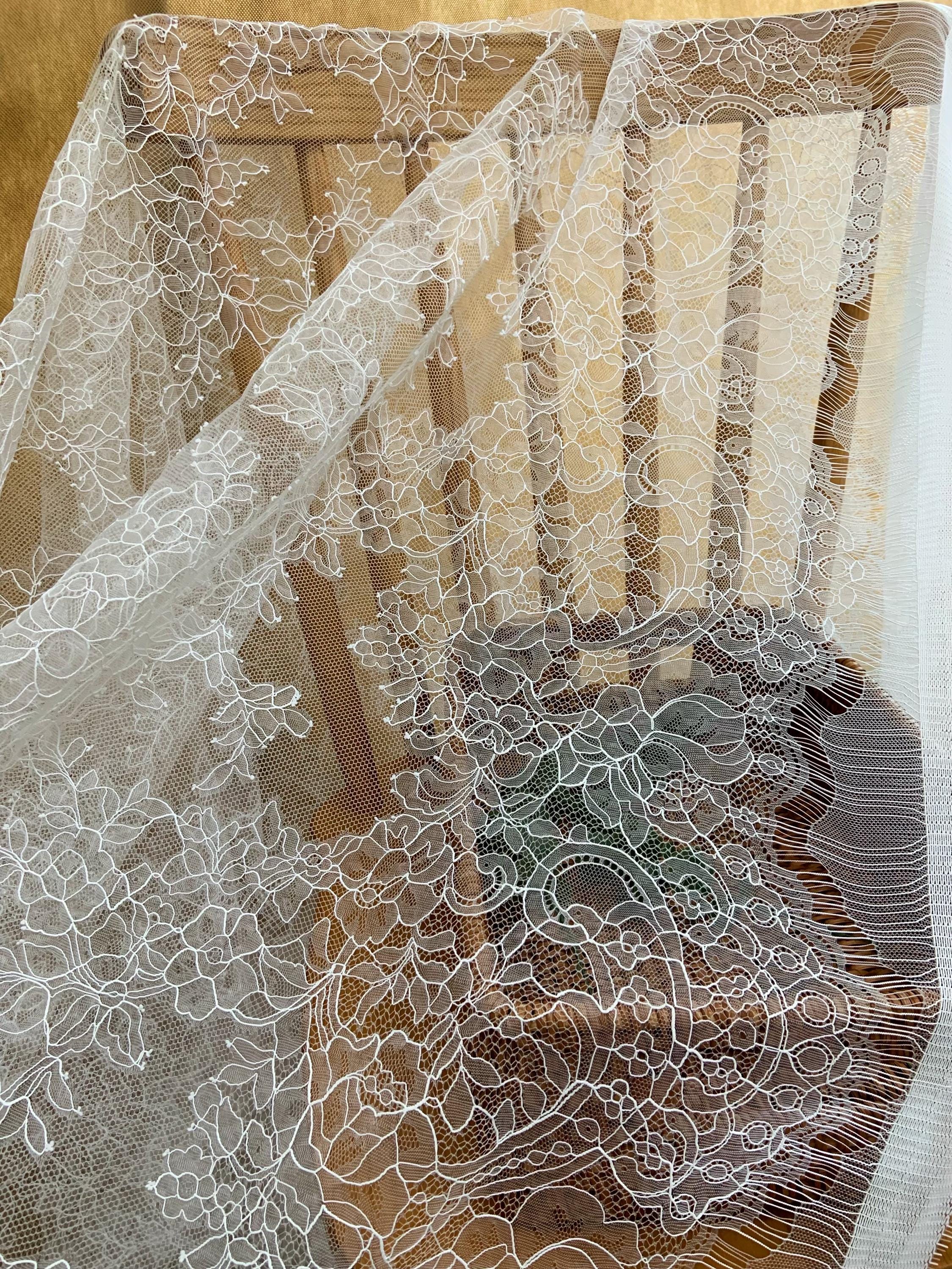 off white Chantilly lace fabric with big flowers for bridal veil, bridal gown, gift for brides