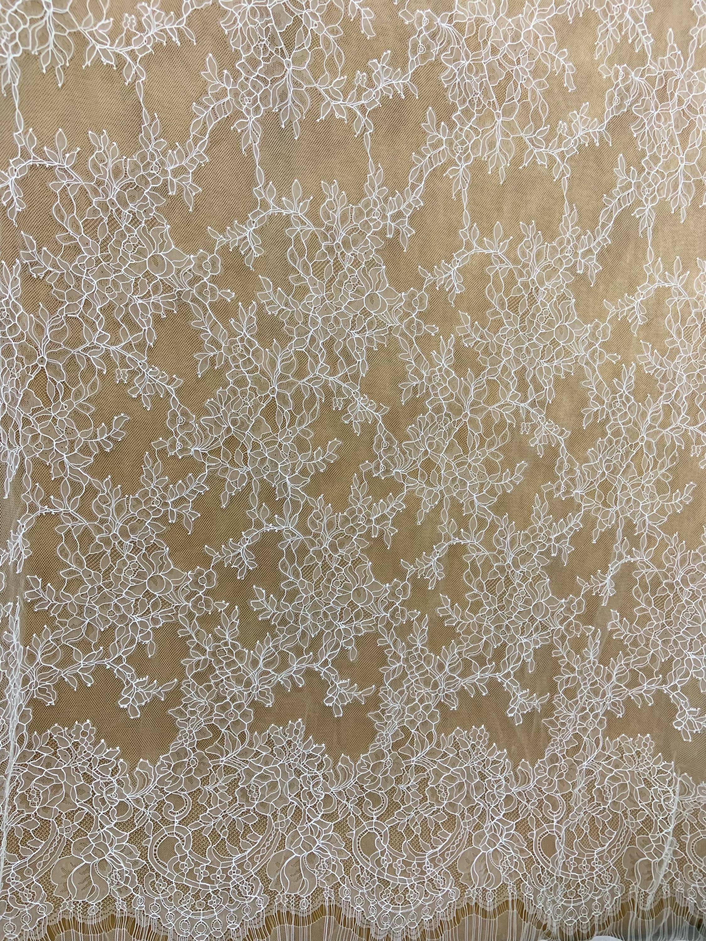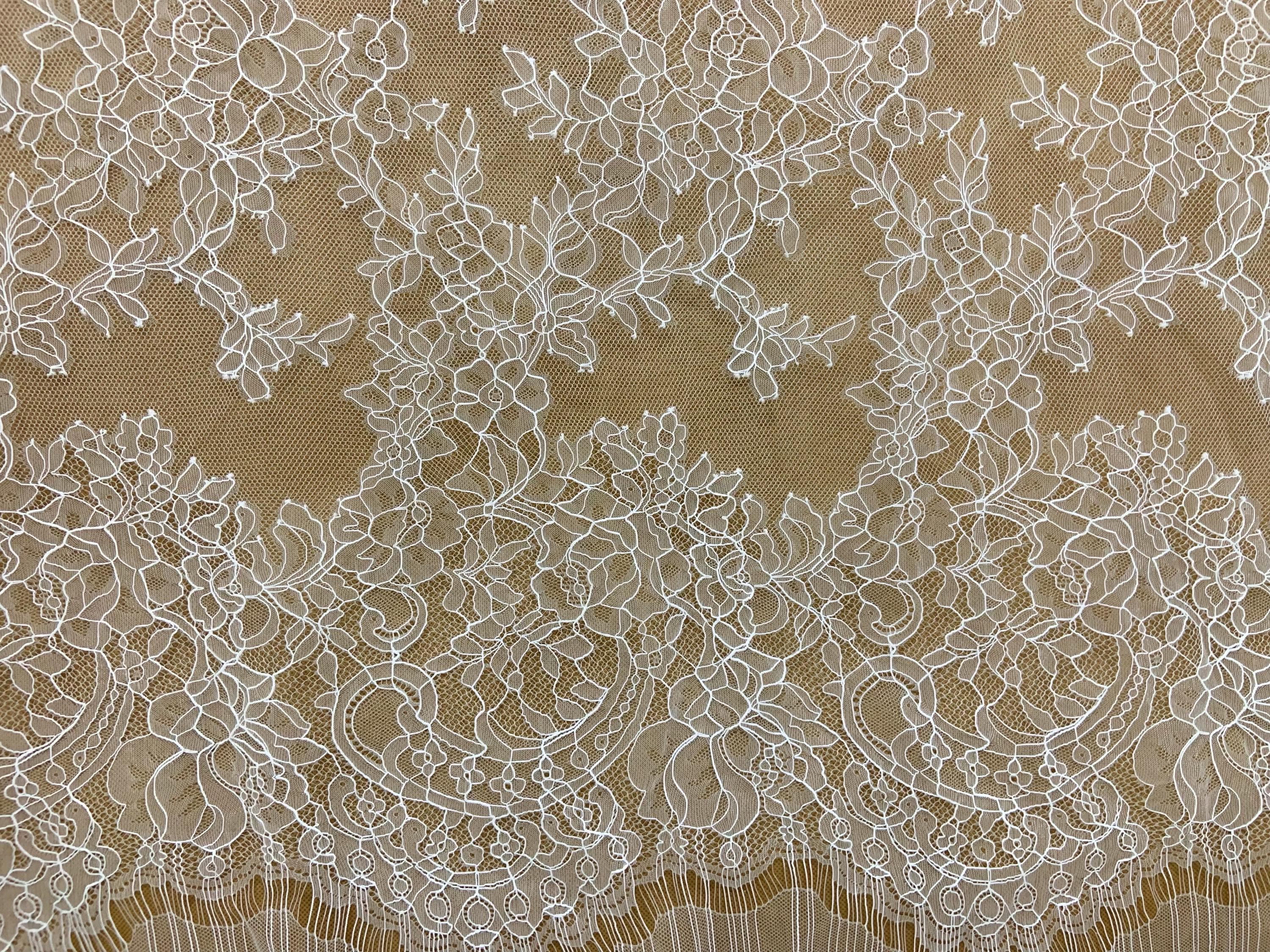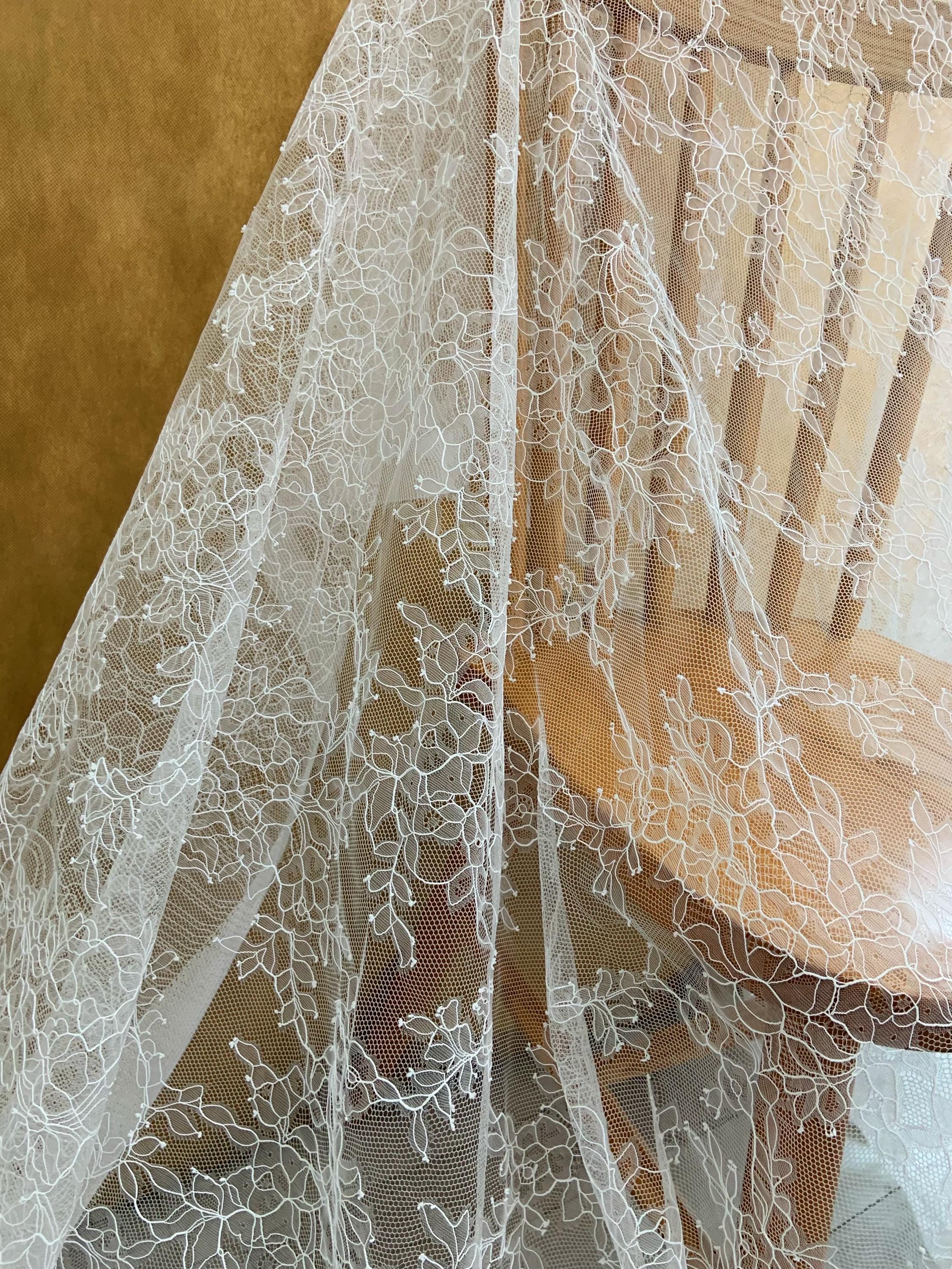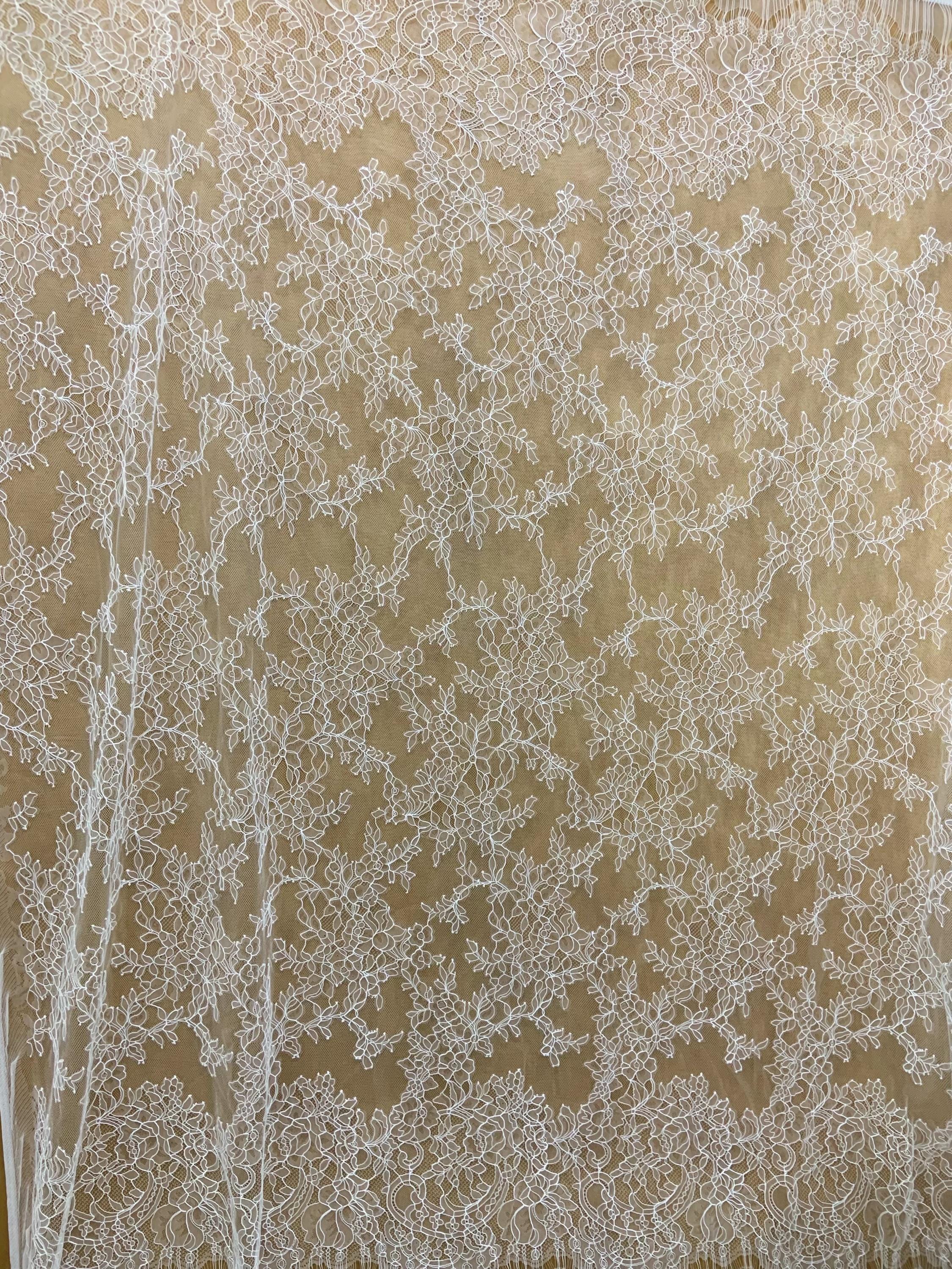 off white Chantilly lace fabric with big flowers for bridal veil, bridal gown, gift for brides