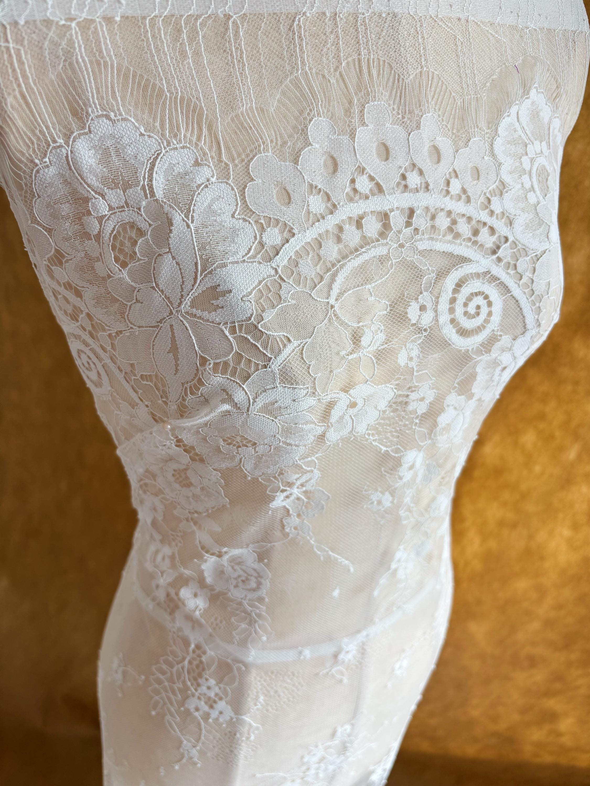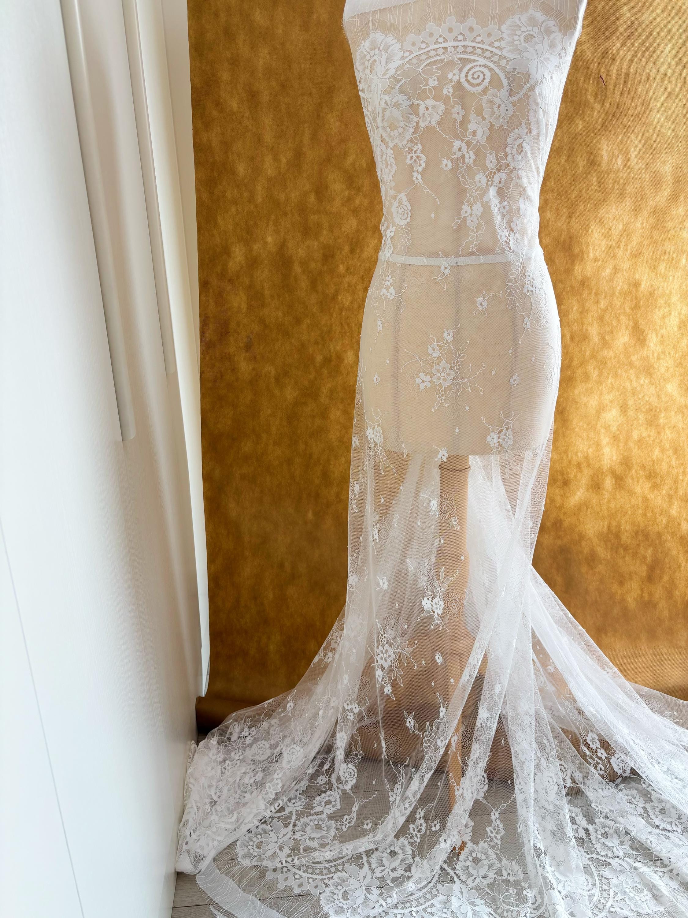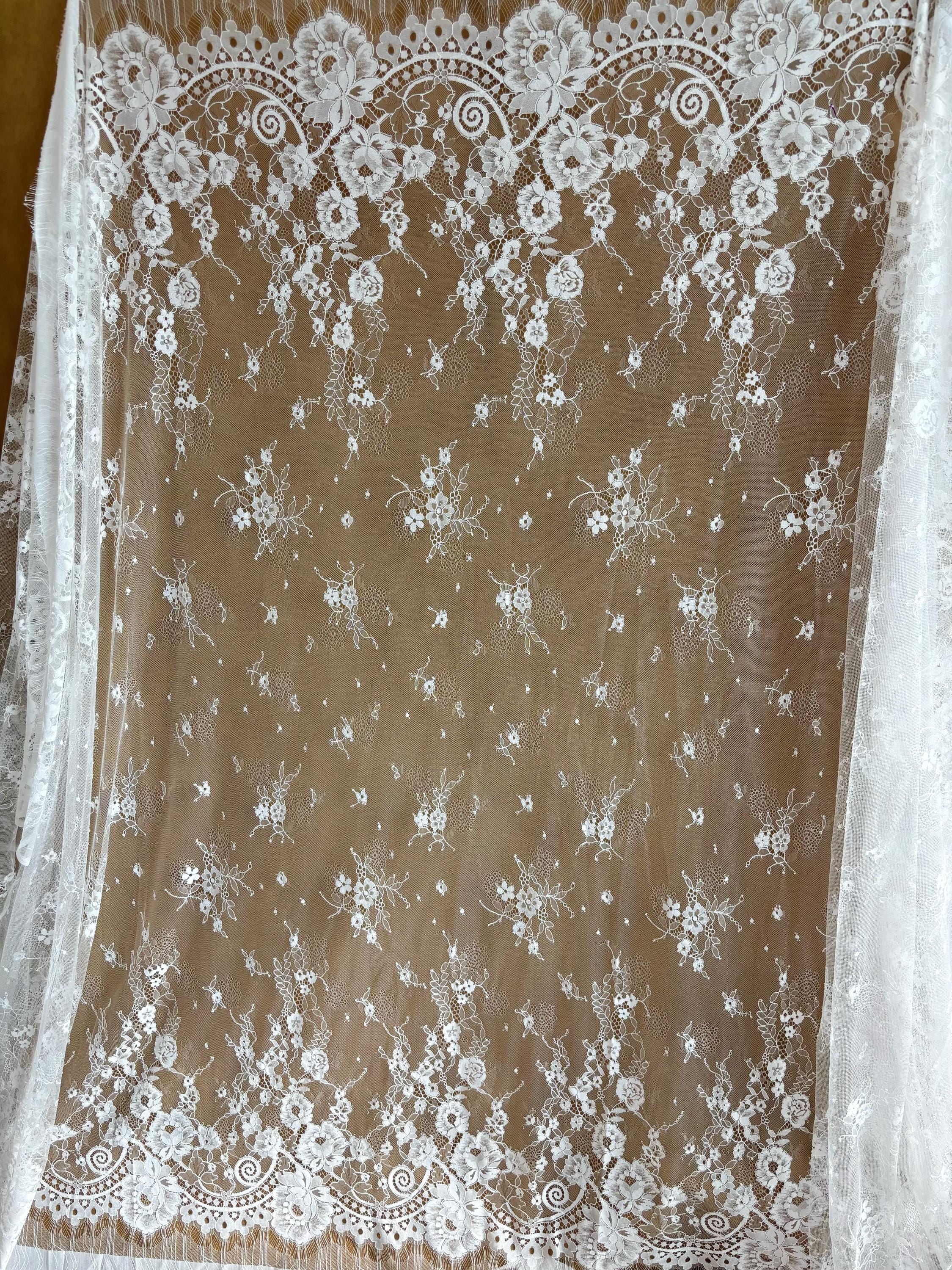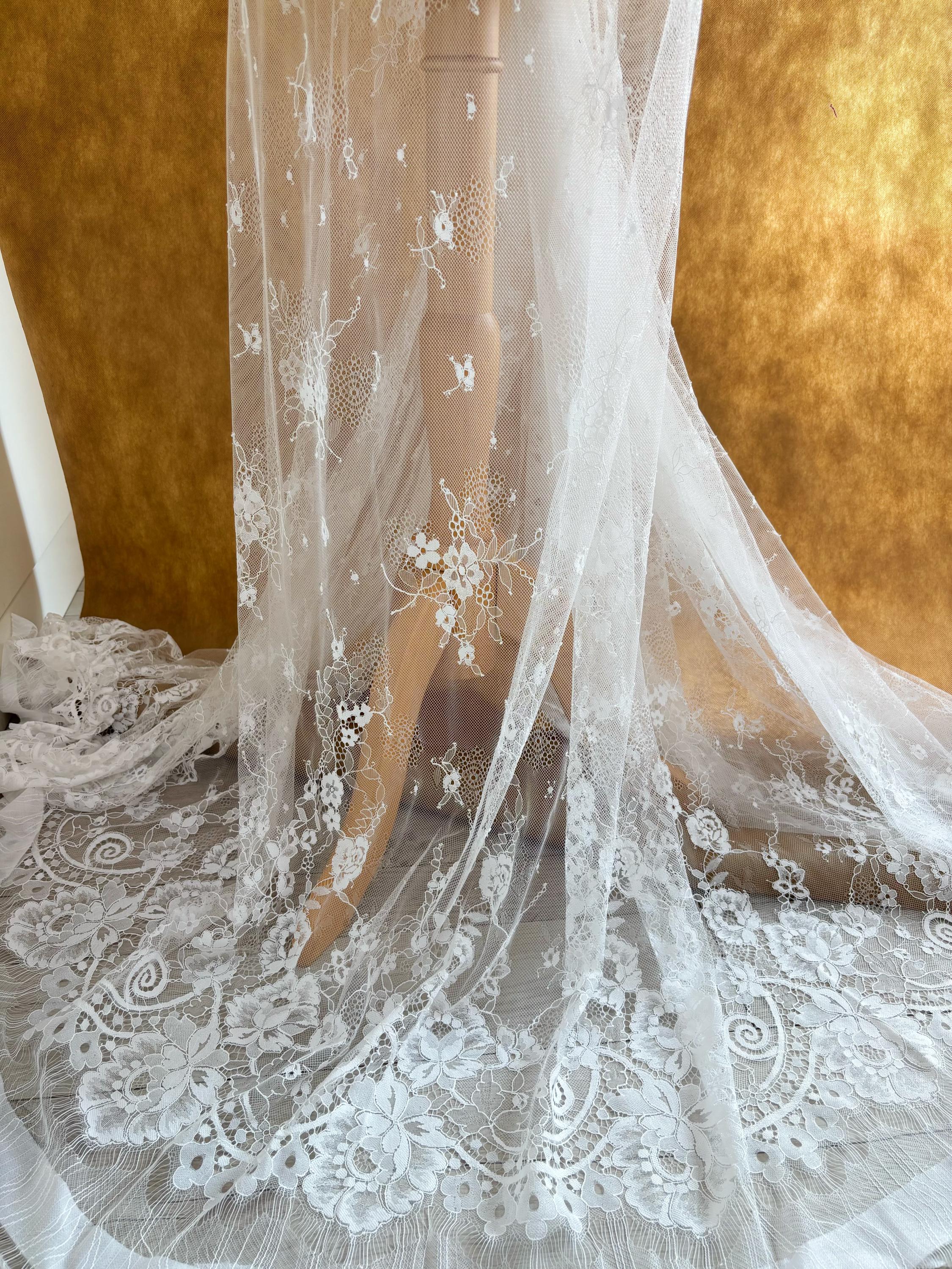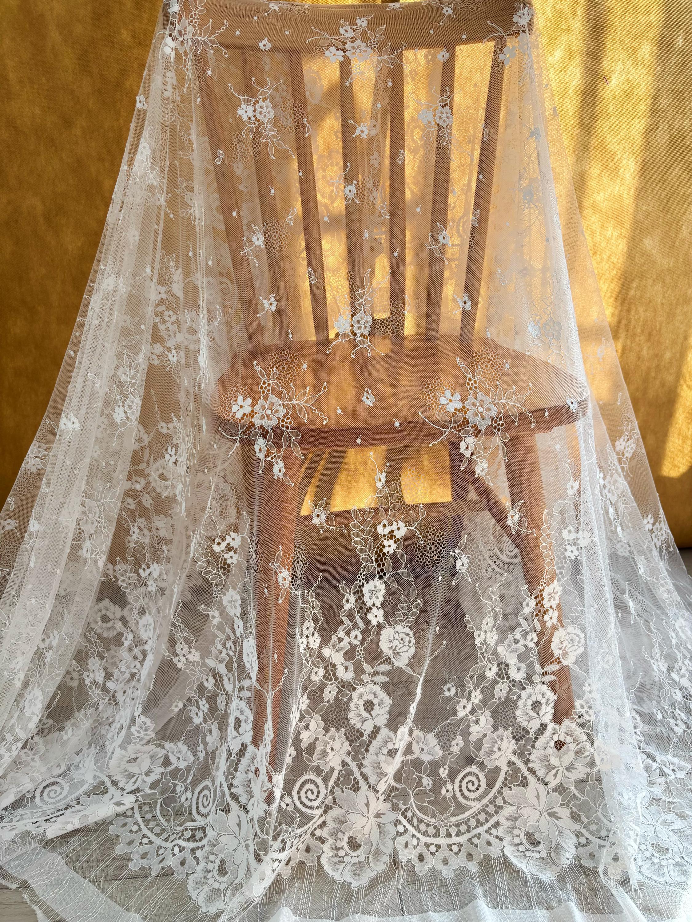 off white Chantilly lace fabric with big flowers for bridal veil, bridal gown, gift for brides