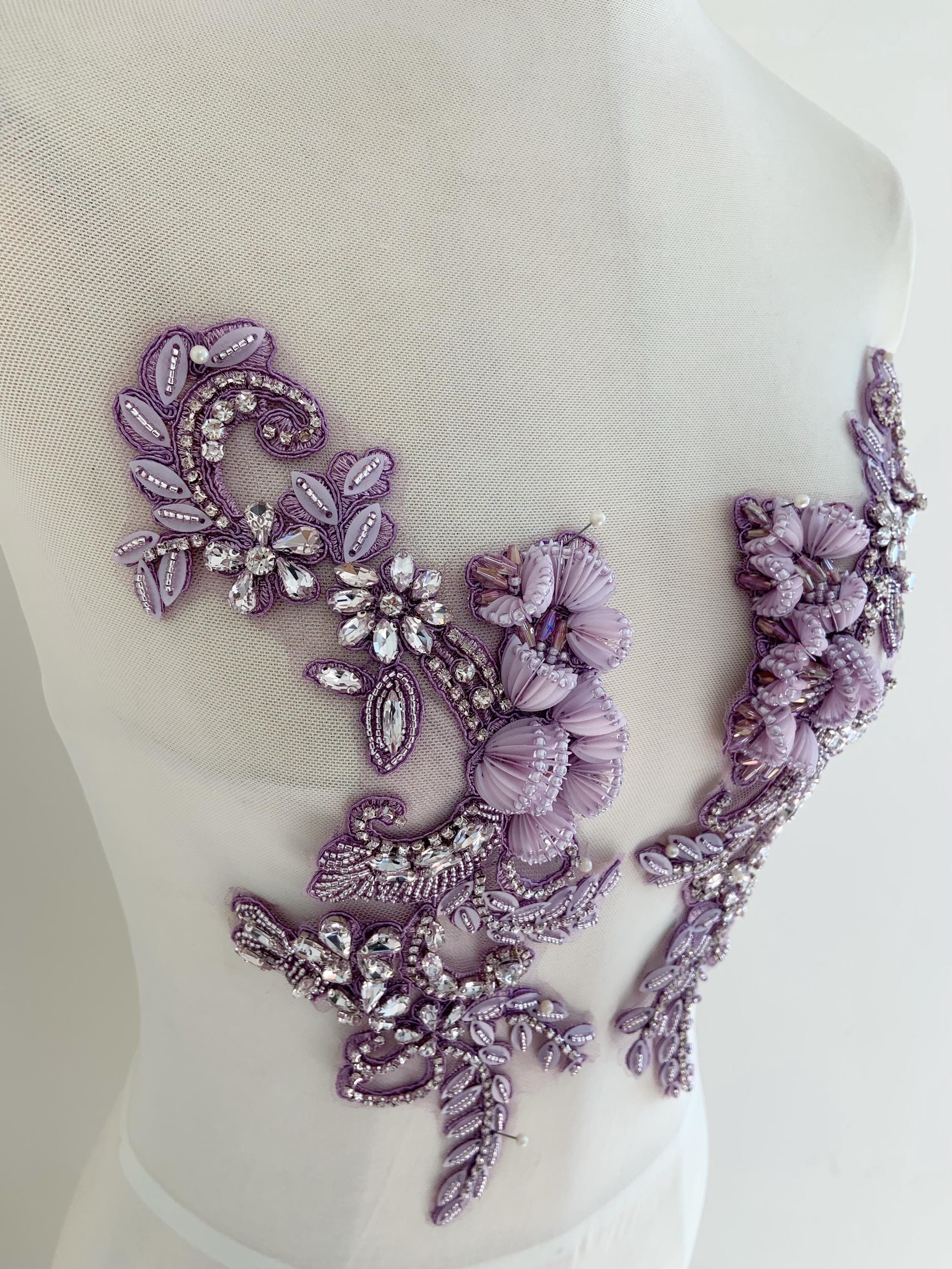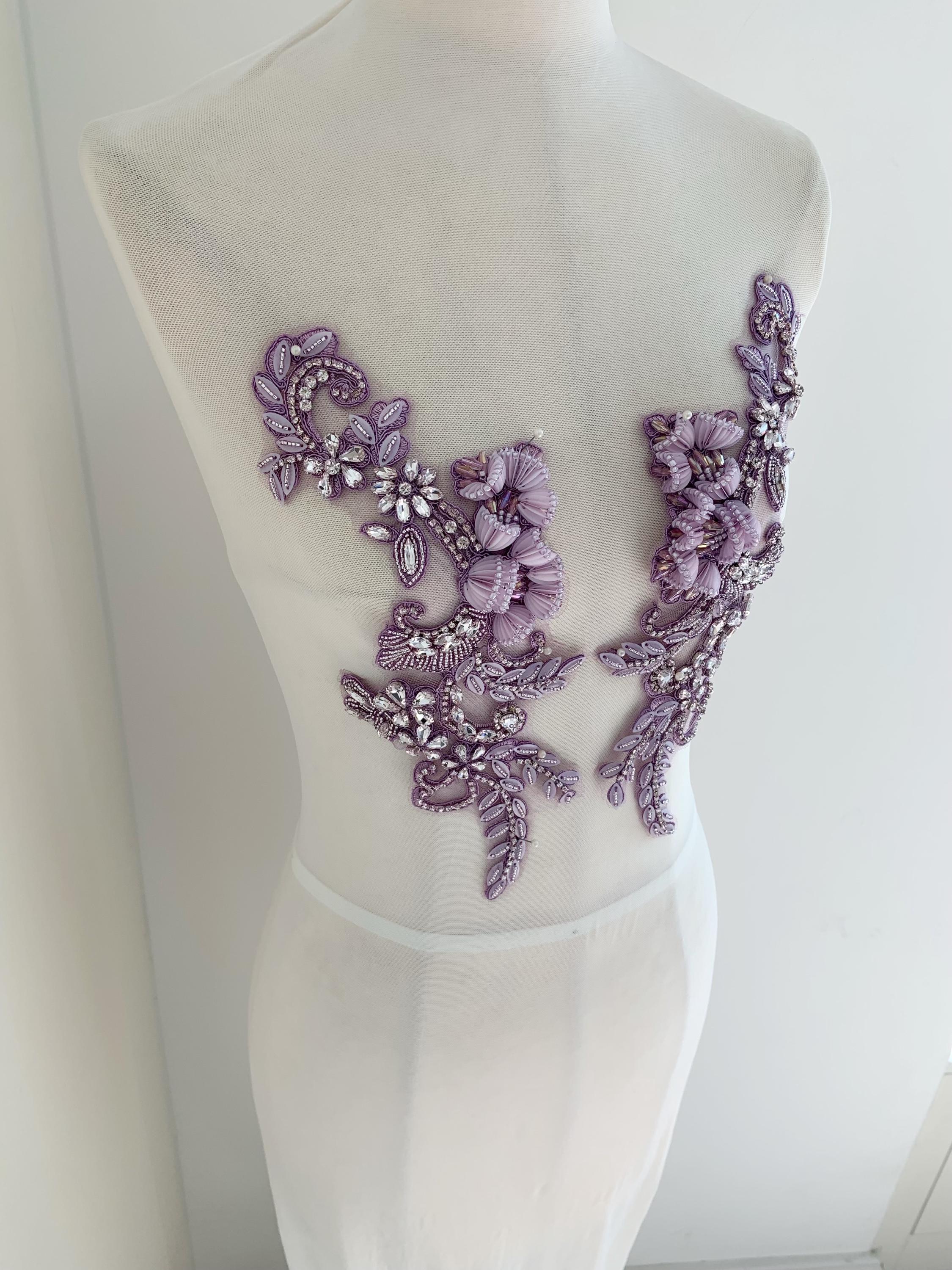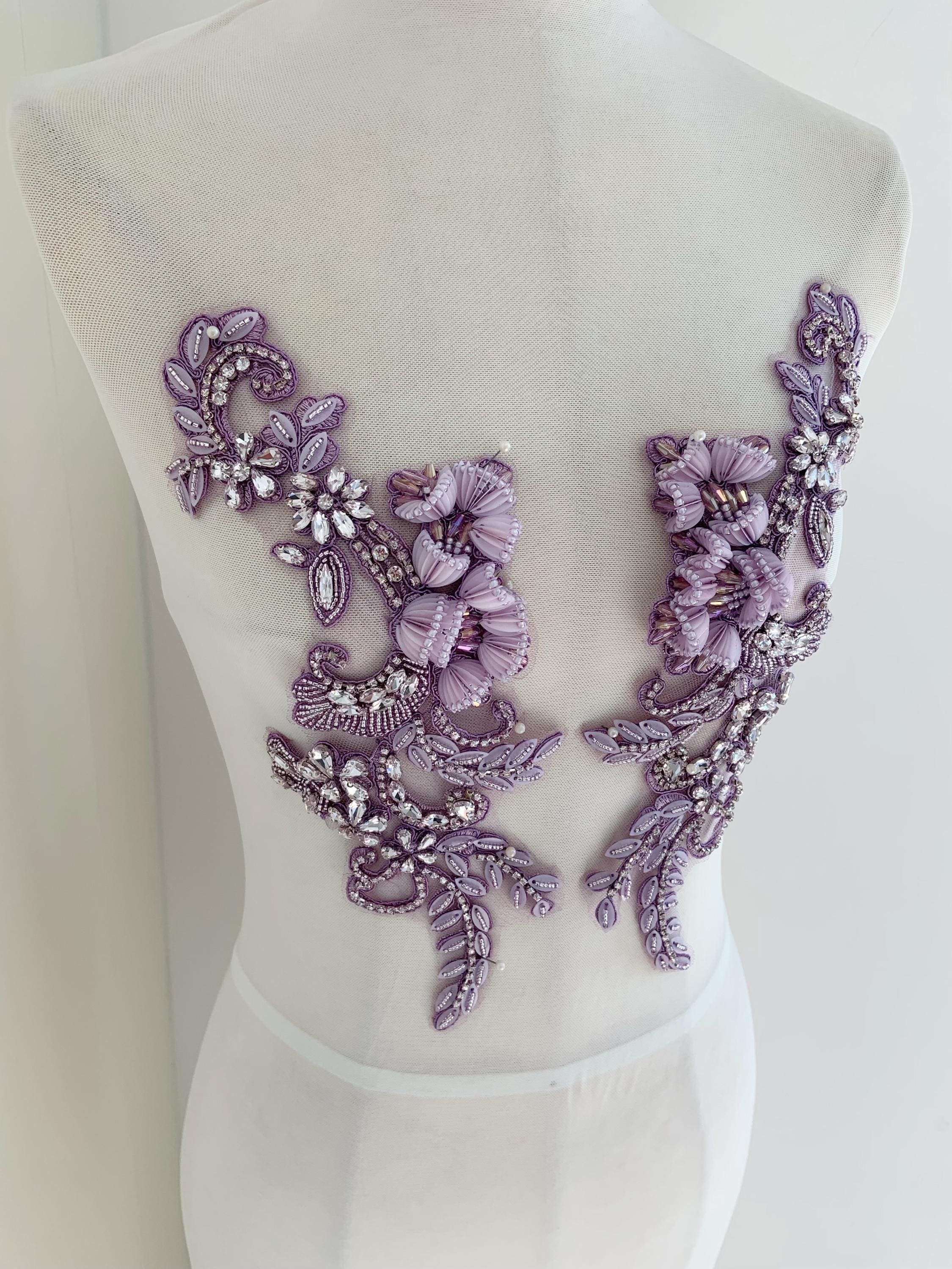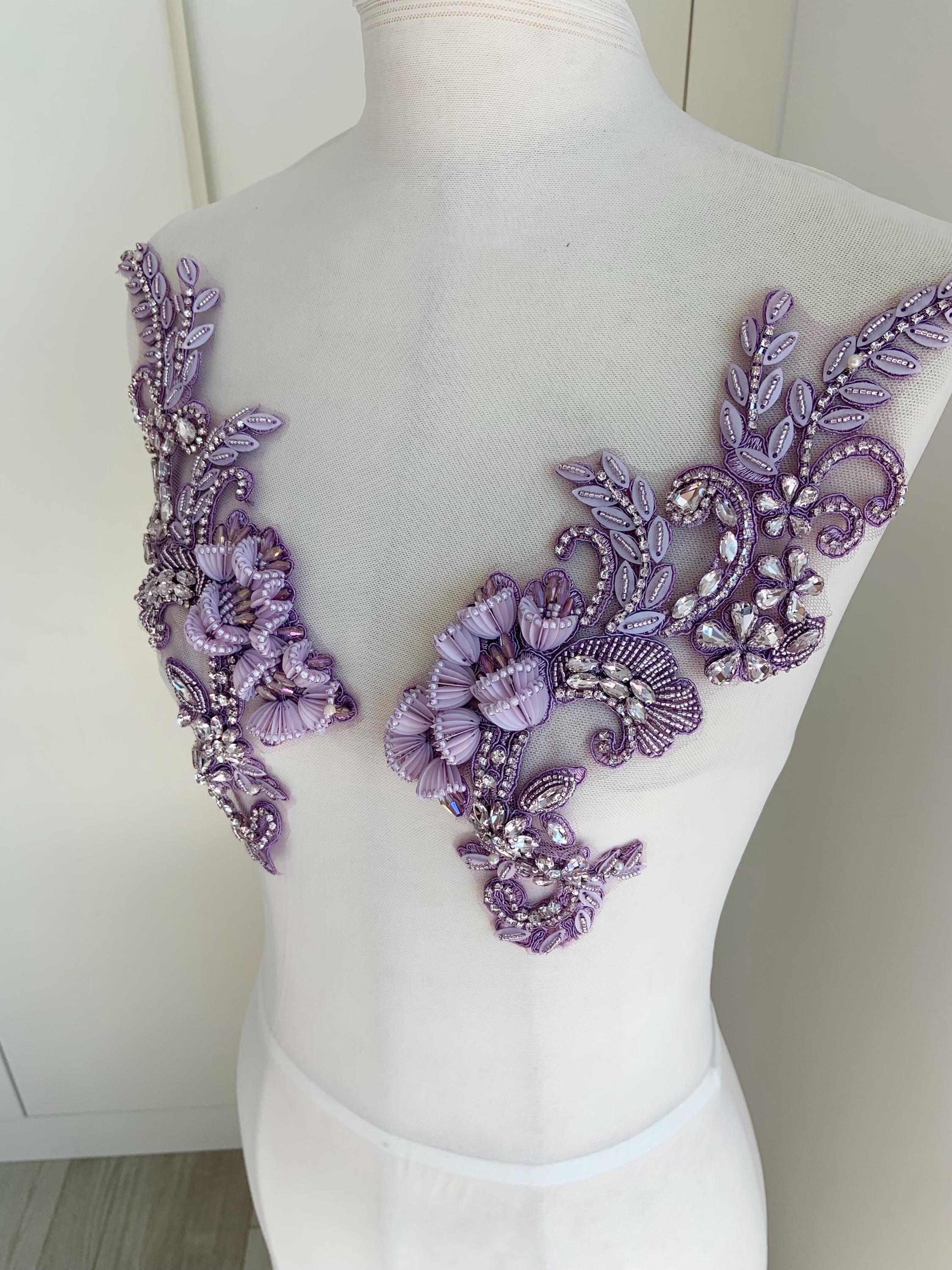 This stunning rhinestone applique is hand crafted, design with elegant florals. There is a layer of iron on glue on the back, sew it to your dress or iron it on will both work. Suitable for bridal dress, evening dress and haute couture for special events, highly recommended for bridals and designers.