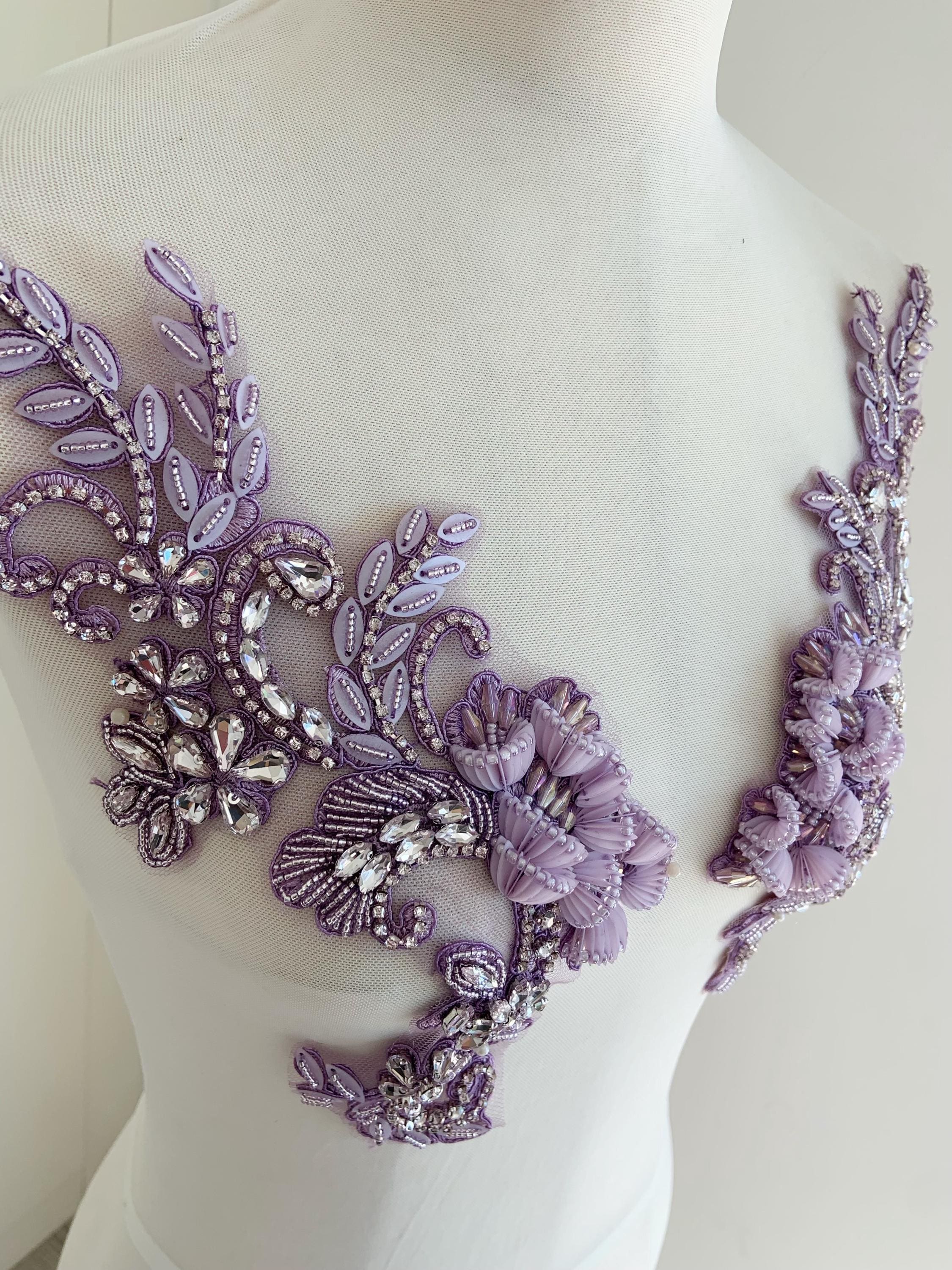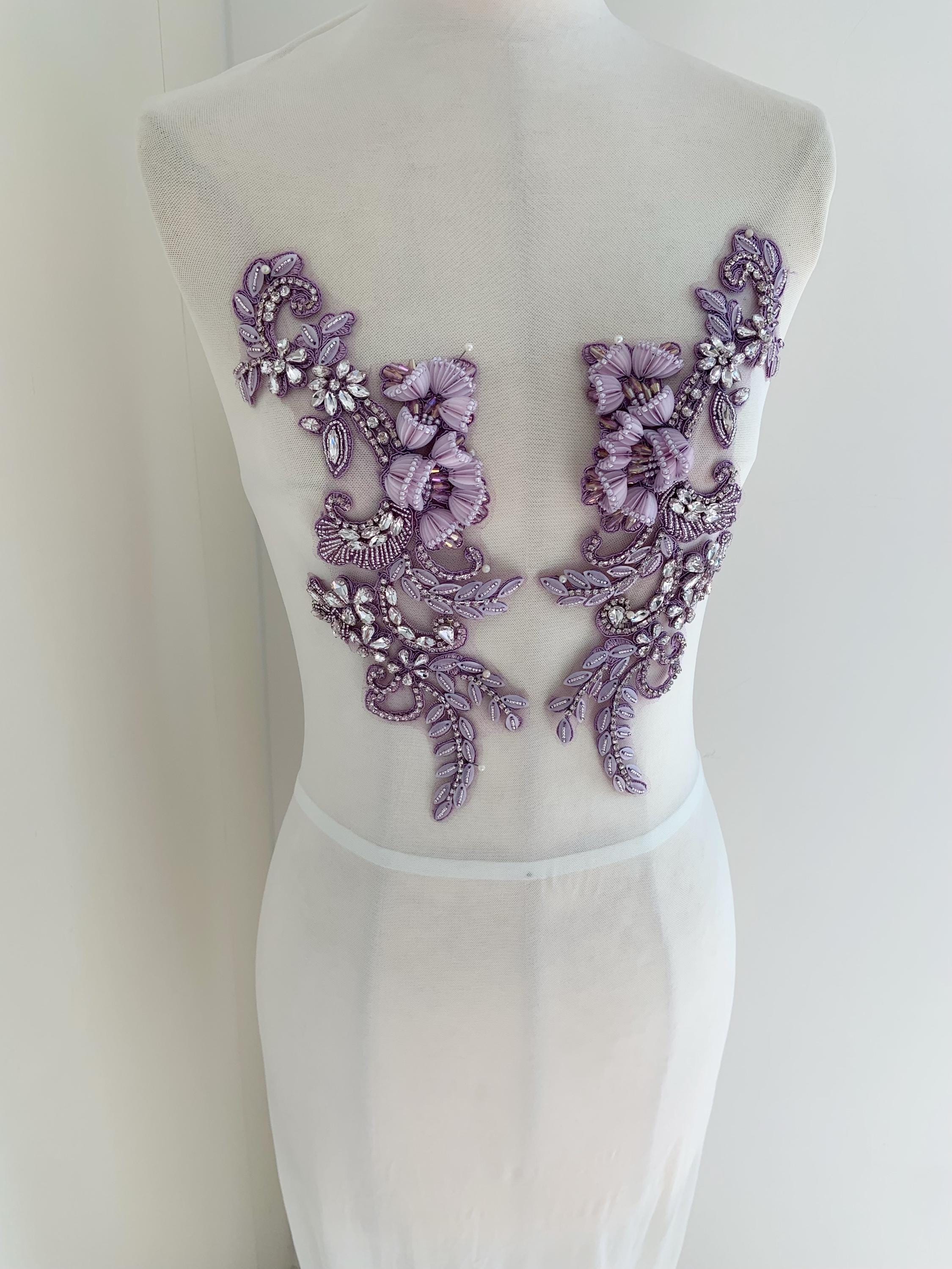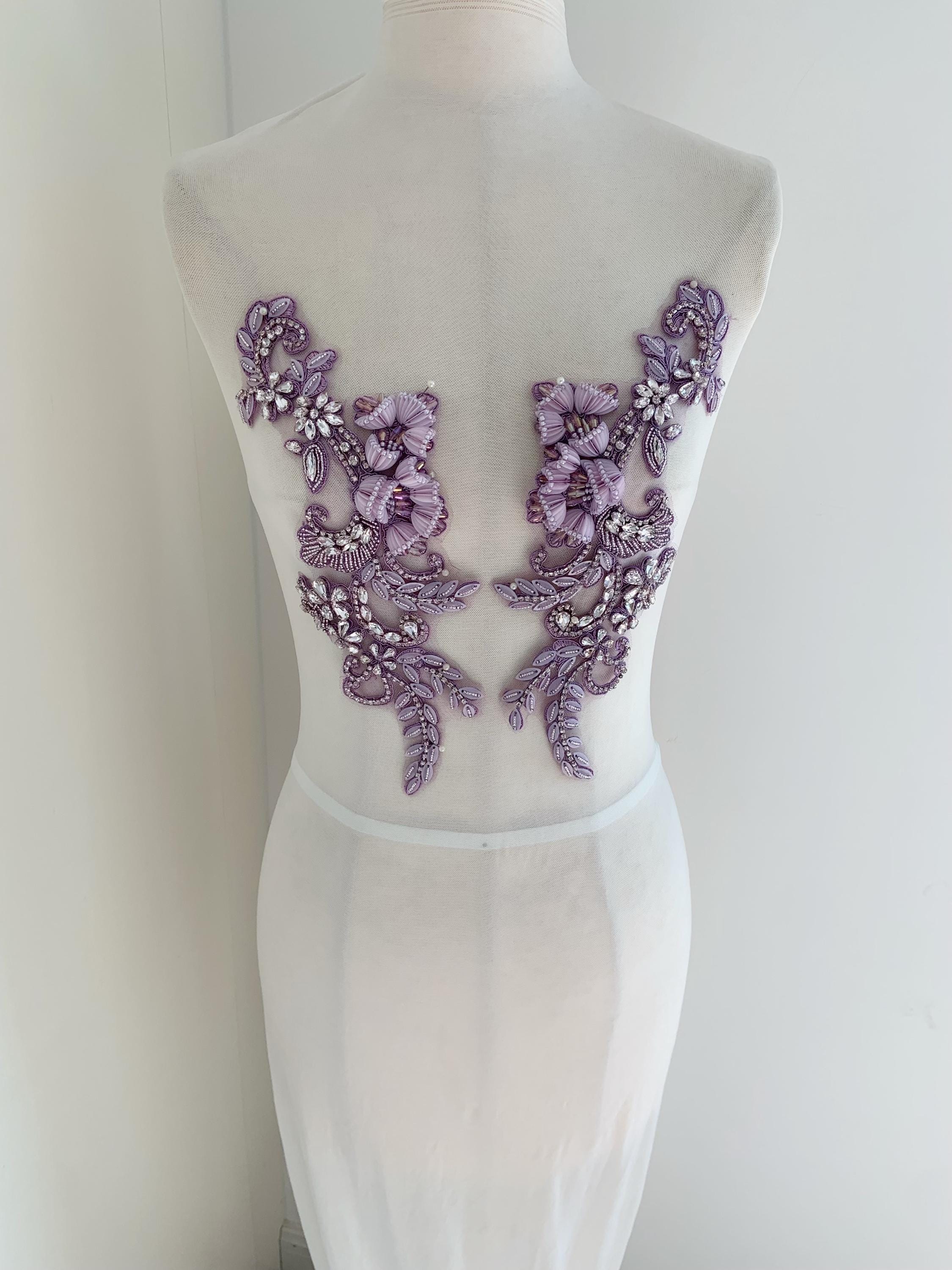 This stunning rhinestone applique is hand crafted, design with elegant florals. There is a layer of iron on glue on the back, sew it to your dress or iron it on will both work. Suitable for bridal dress, evening dress and haute couture for special events, highly recommended for bridals and designers.