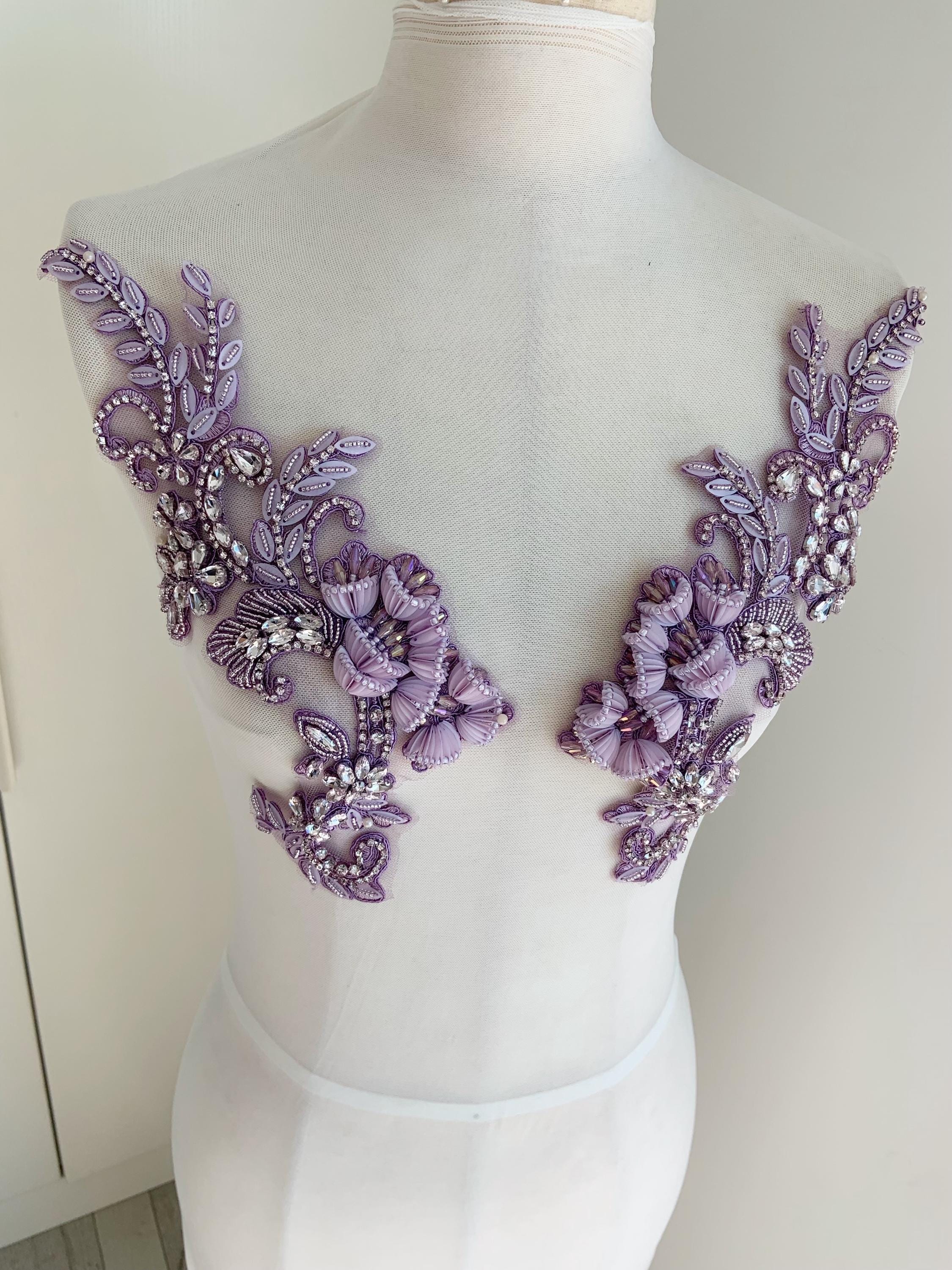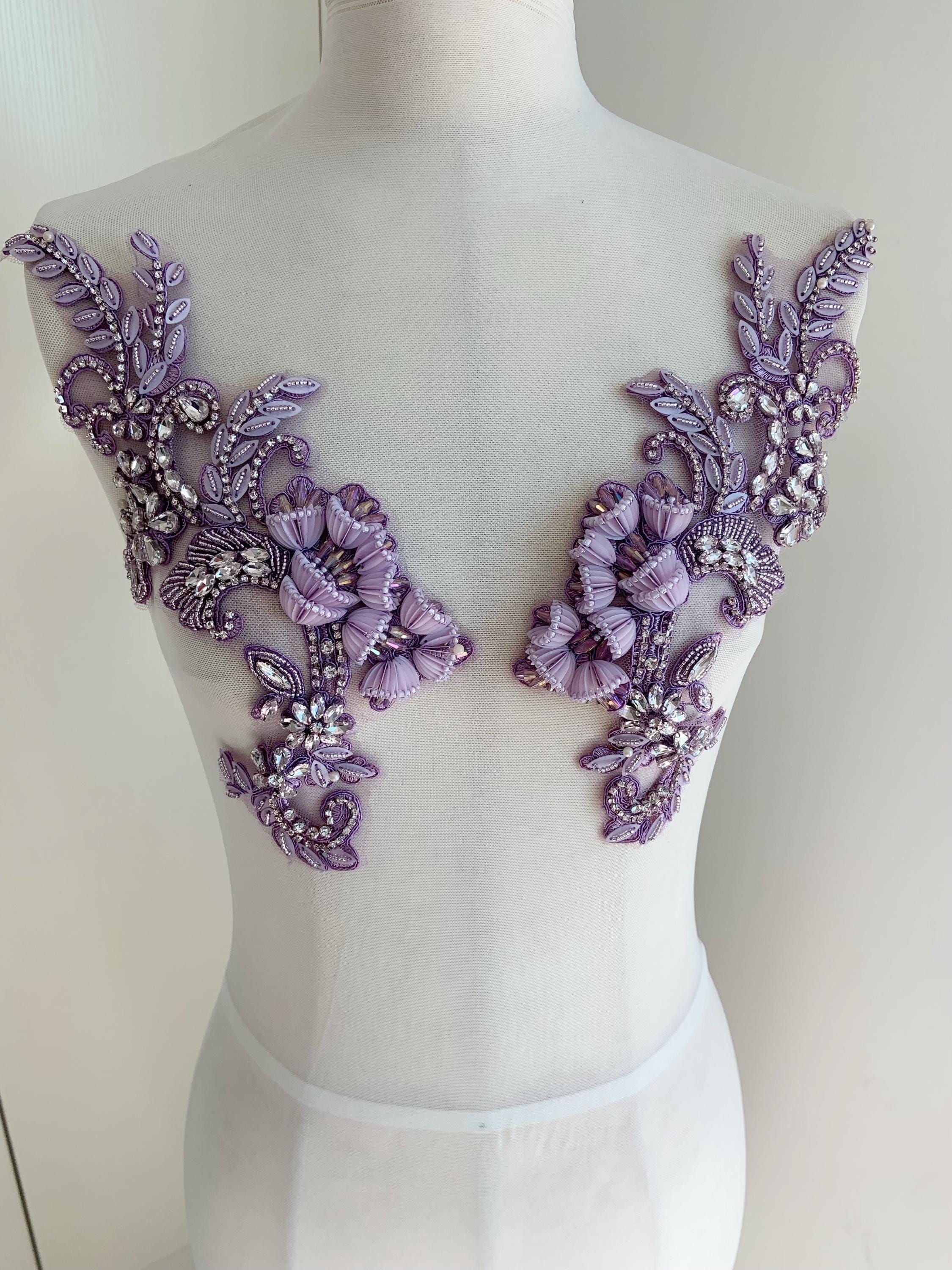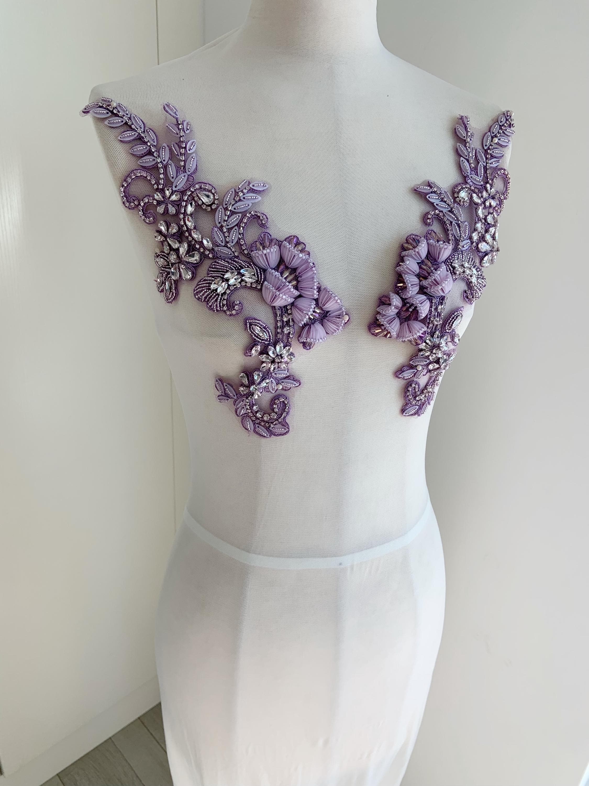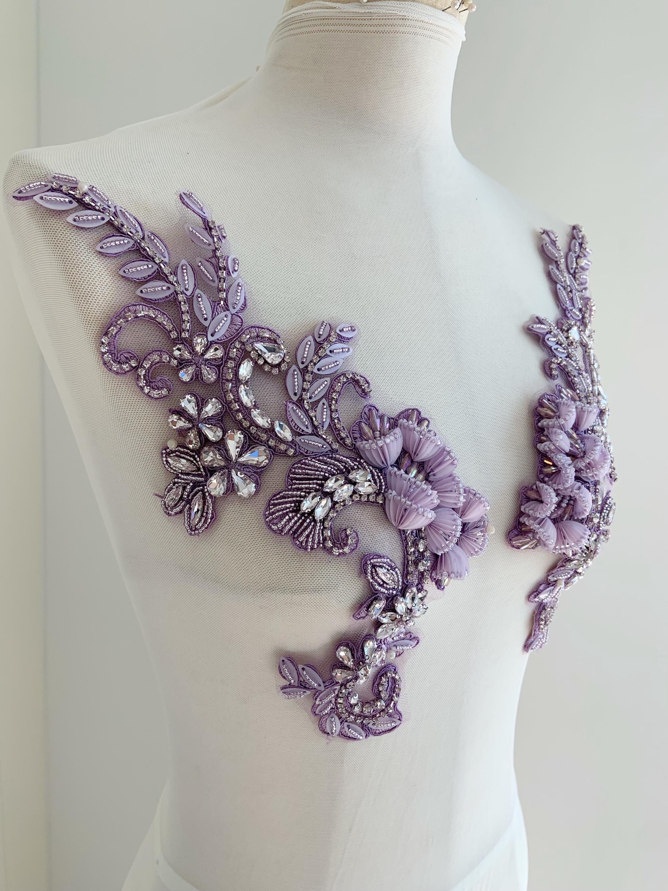 This stunning rhinestone applique is hand crafted, design with elegant florals. There is a layer of iron on glue on the back, sew it to your dress or iron it on will both work. Suitable for bridal dress, evening dress and haute couture for special events, highly recommended for bridals and designers.