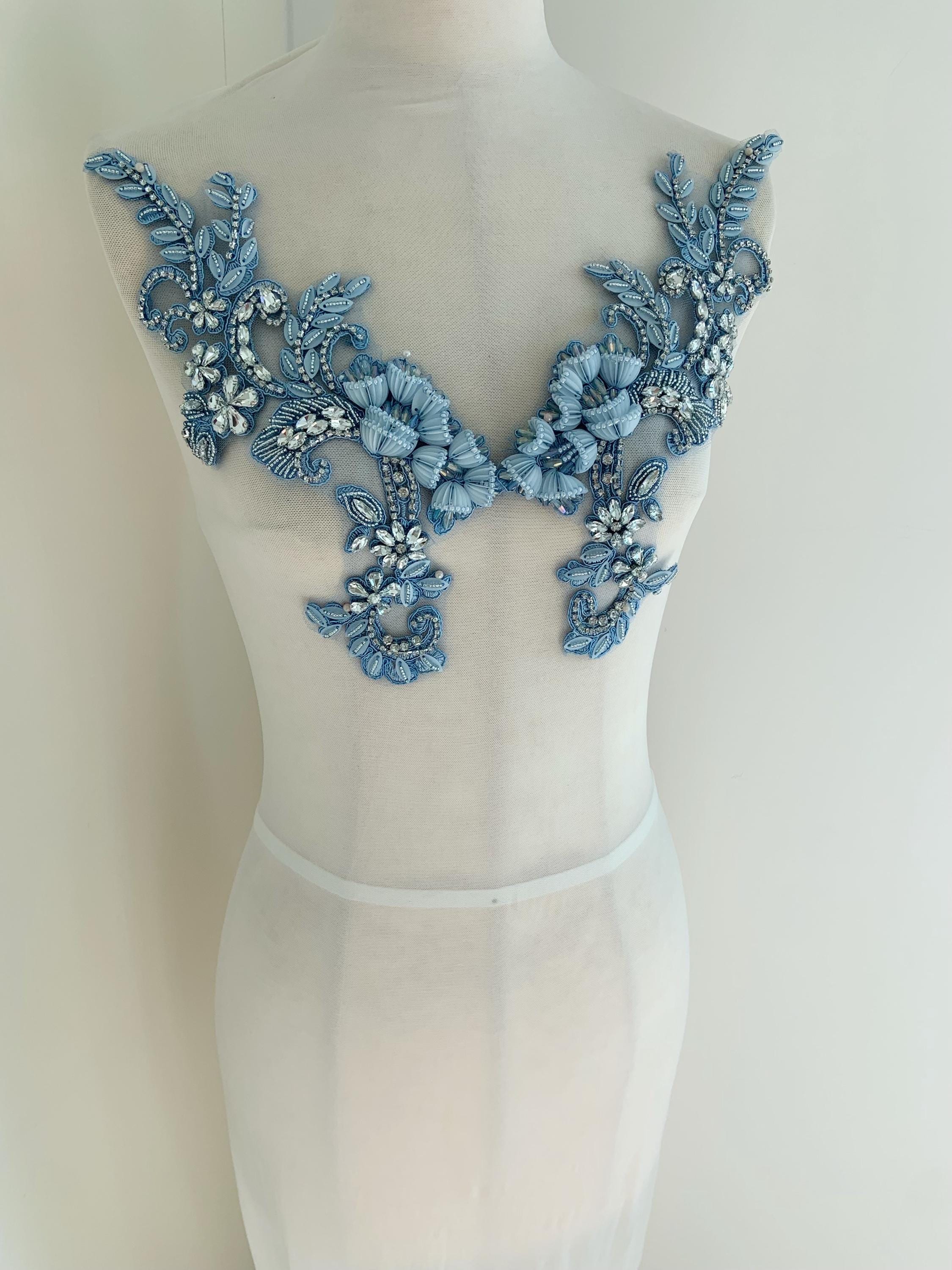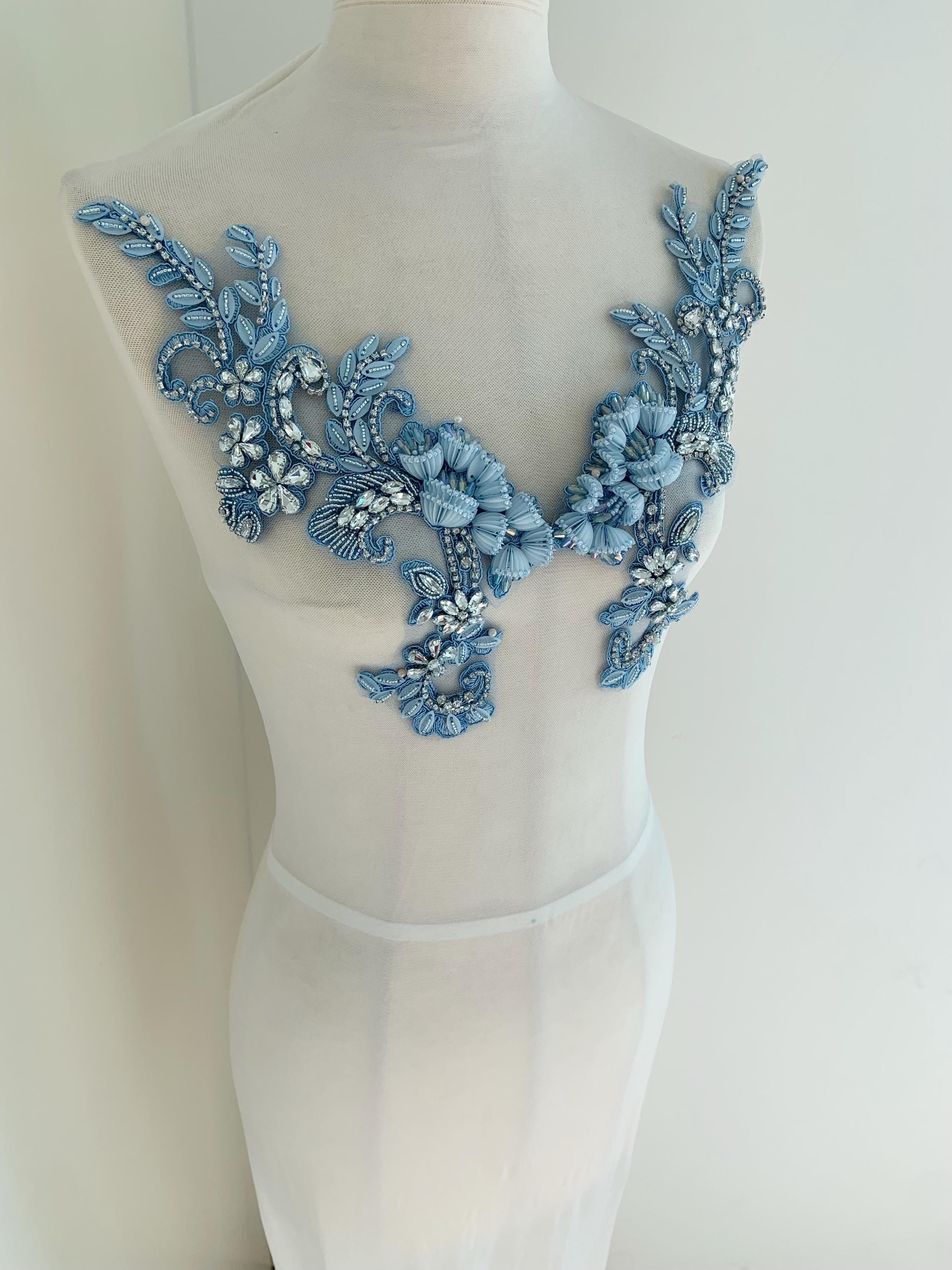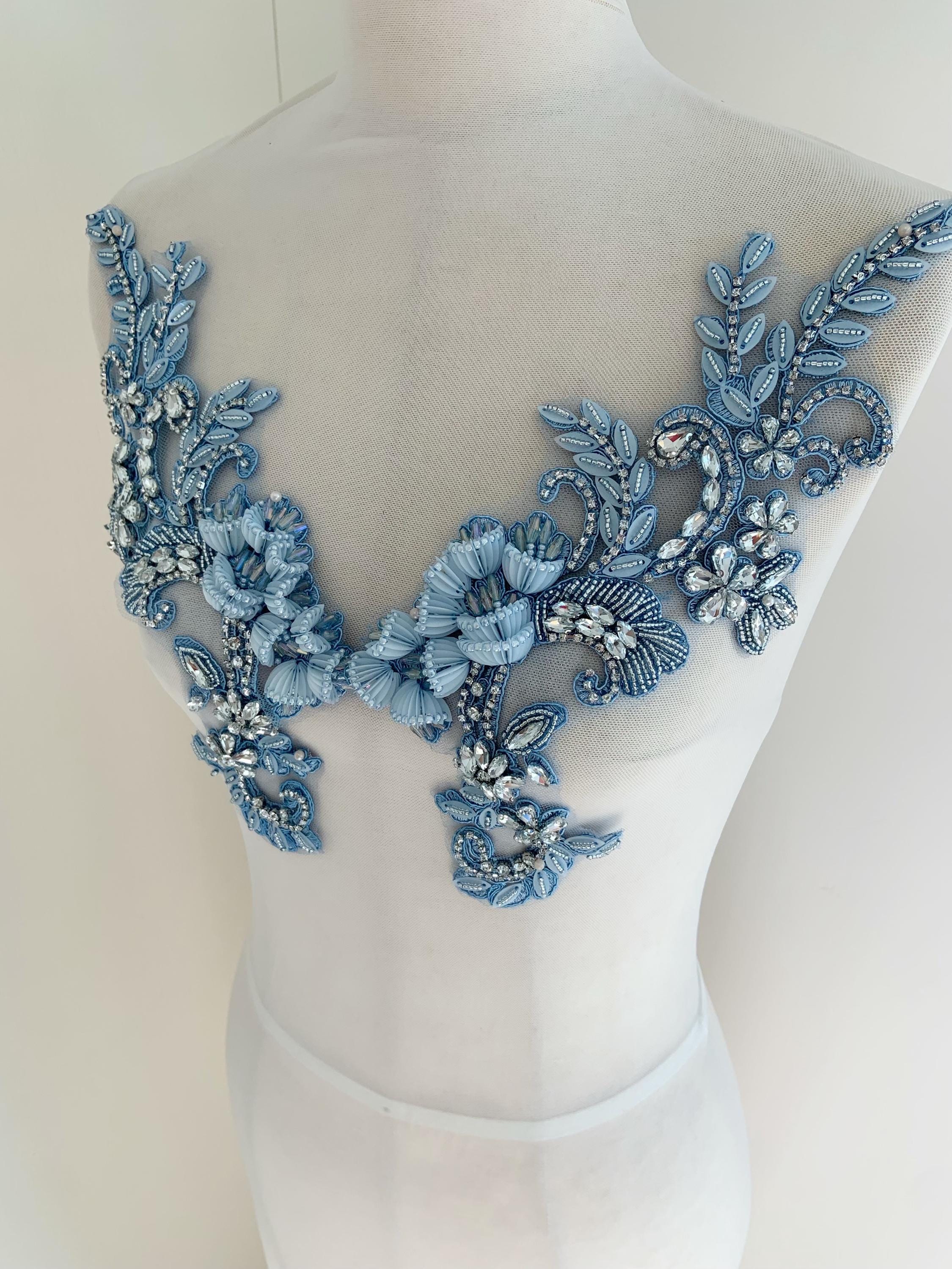 This stunning rhinestone applique is hand crafted, design with elegant florals. There is a layer of iron on glue on the back, sew it to your dress or iron it on will both work. Suitable for bridal dress, evening dress and haute couture for special events, highly recommended for bridals and designers.