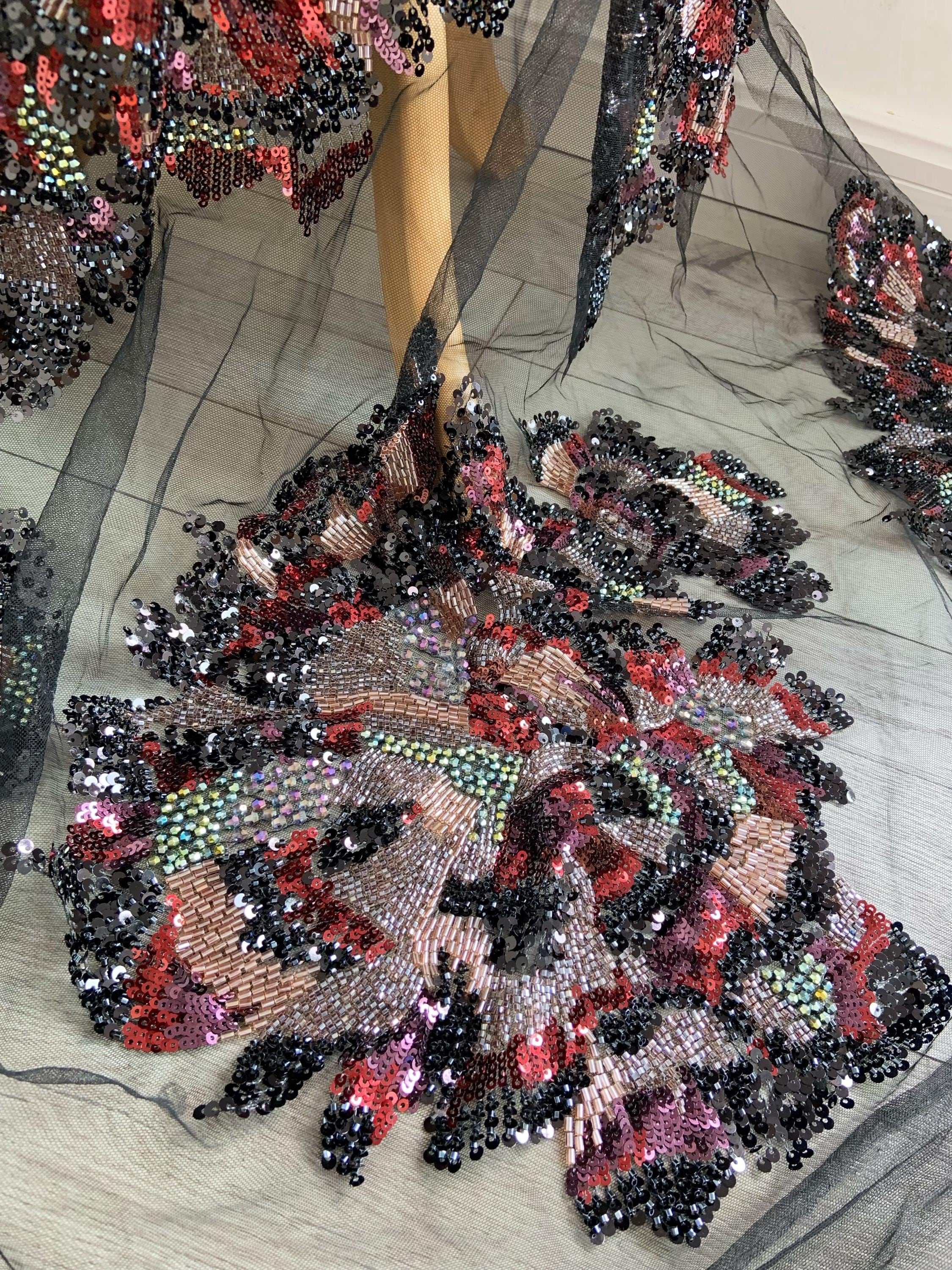 This dazzling bead fabric is with delicate embroidery and soft tulle lace base, shining in elegant way. more color choices, rosy/mauve , green, navy , purple, black ........ all with quality beads and workmanship ~~~