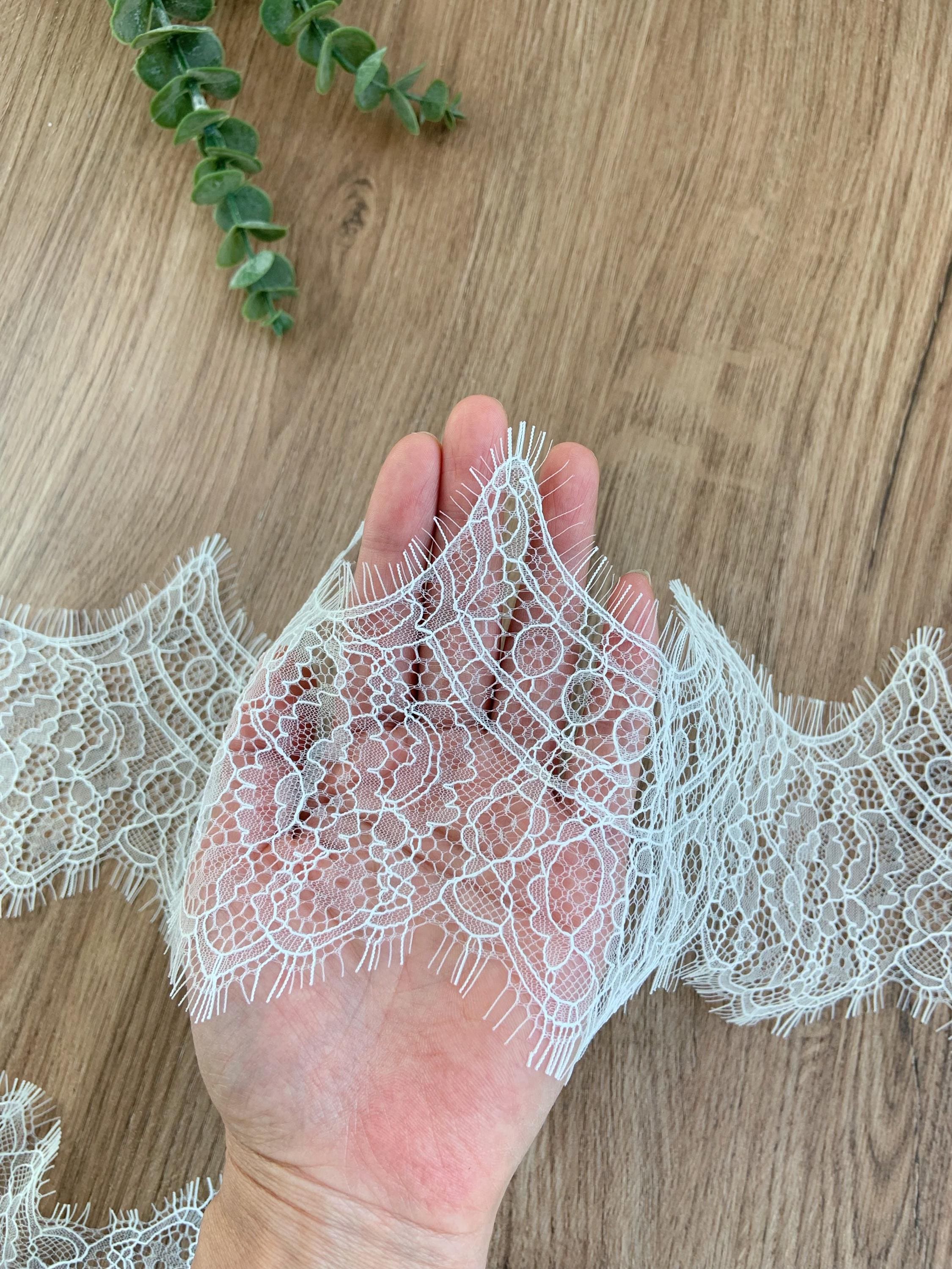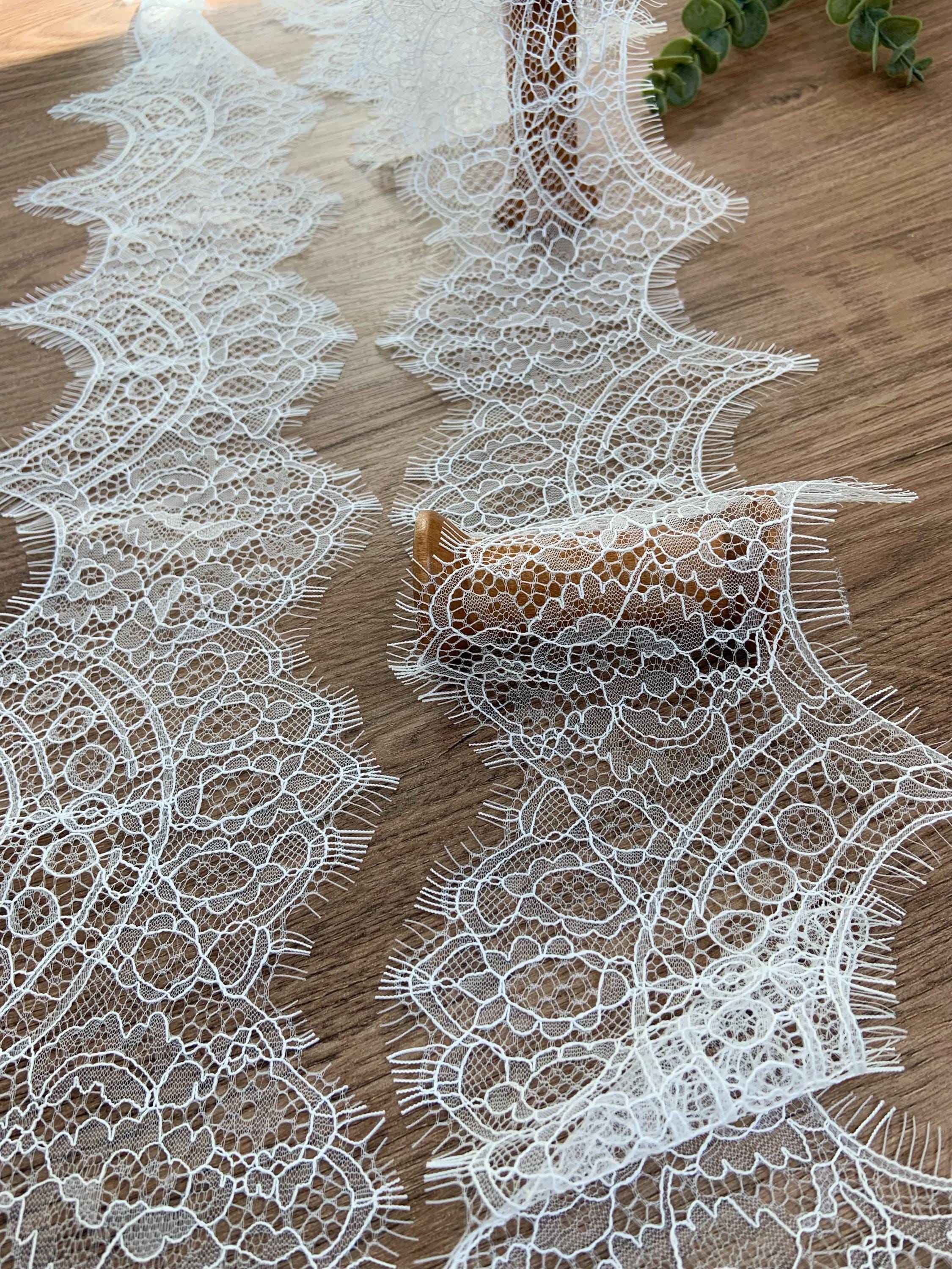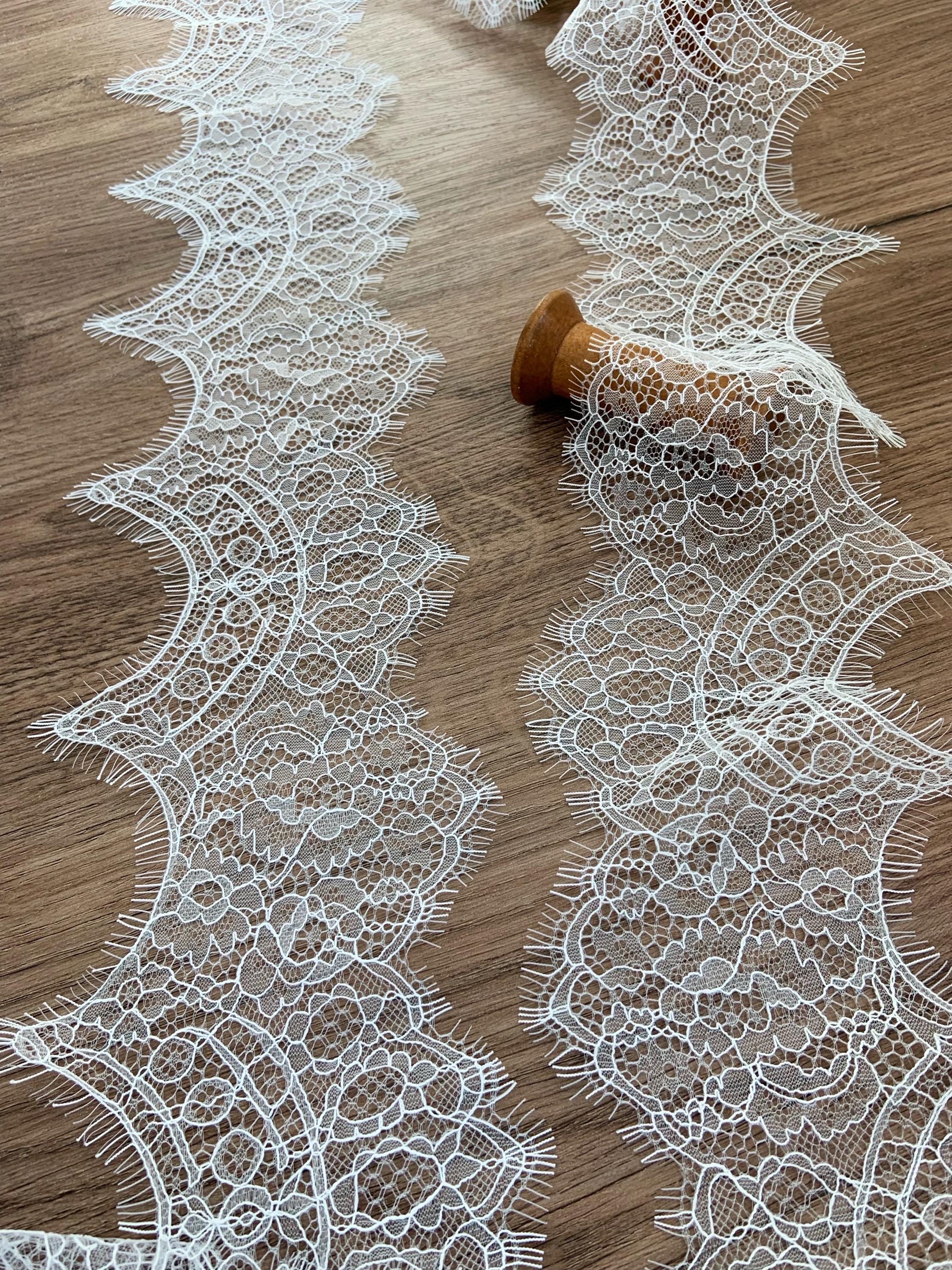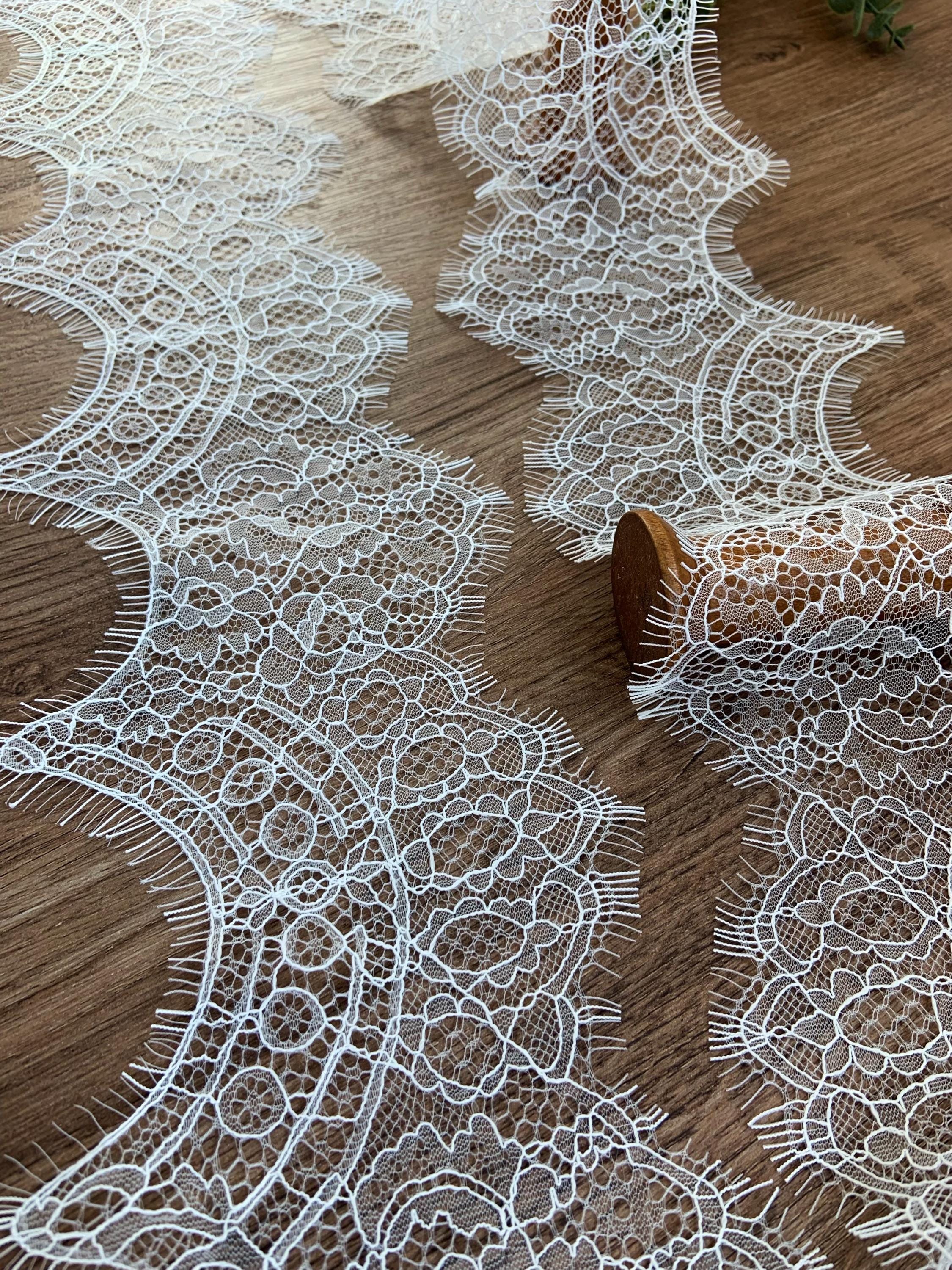 2026 white Chantilly lace trim, lace trim with fringes for wedding dress, veil, lingerie, bridal robe